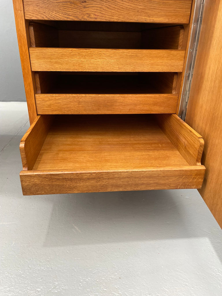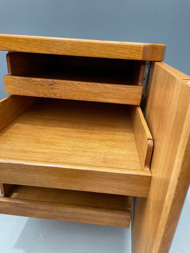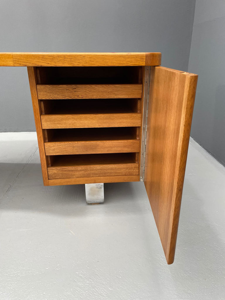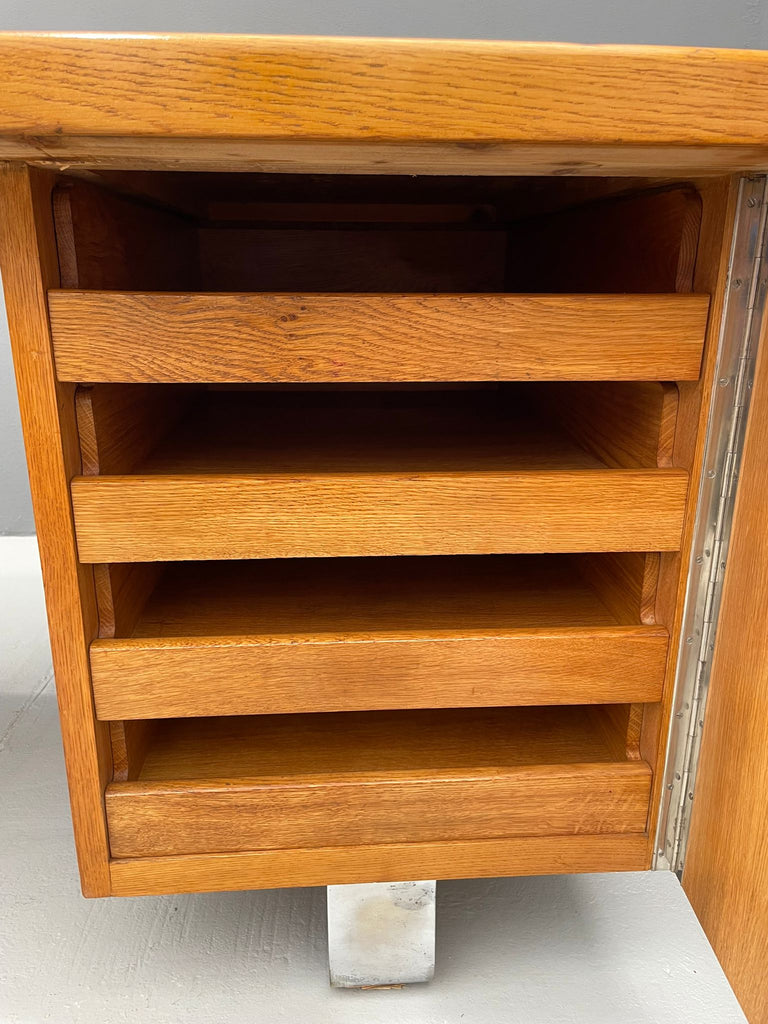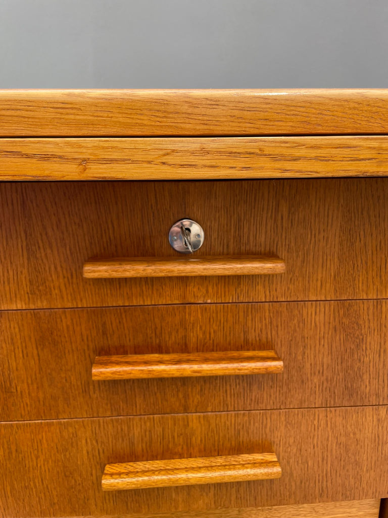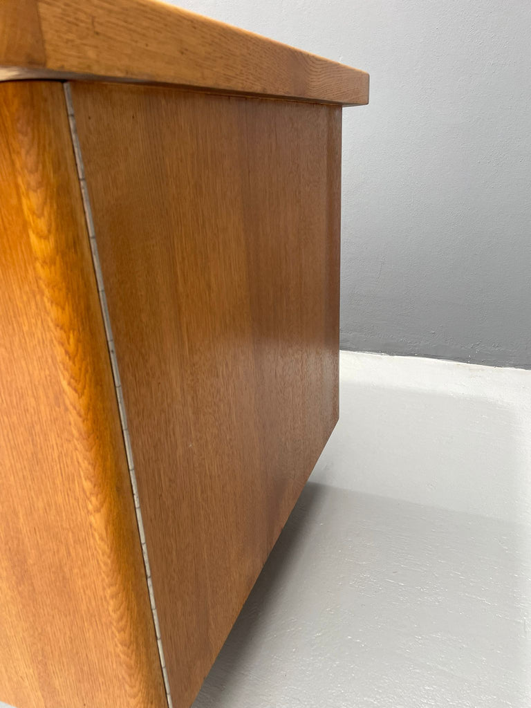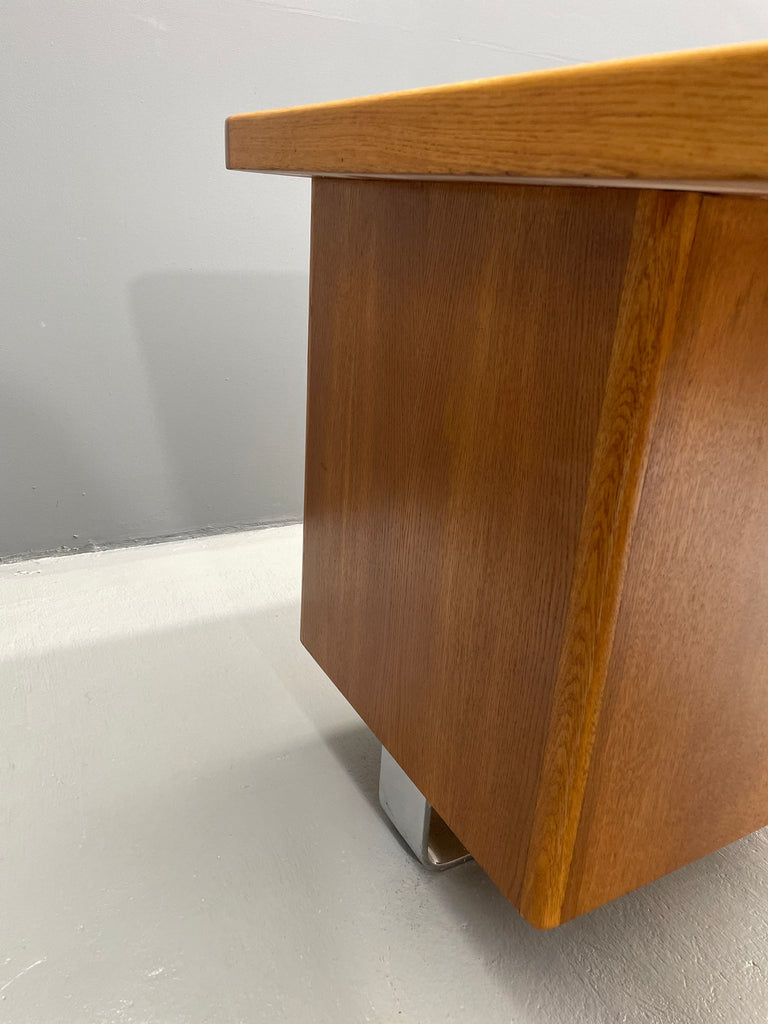 Bauhaus Walnut Writing Desk with Red Top – Vintage Mid-Century Design