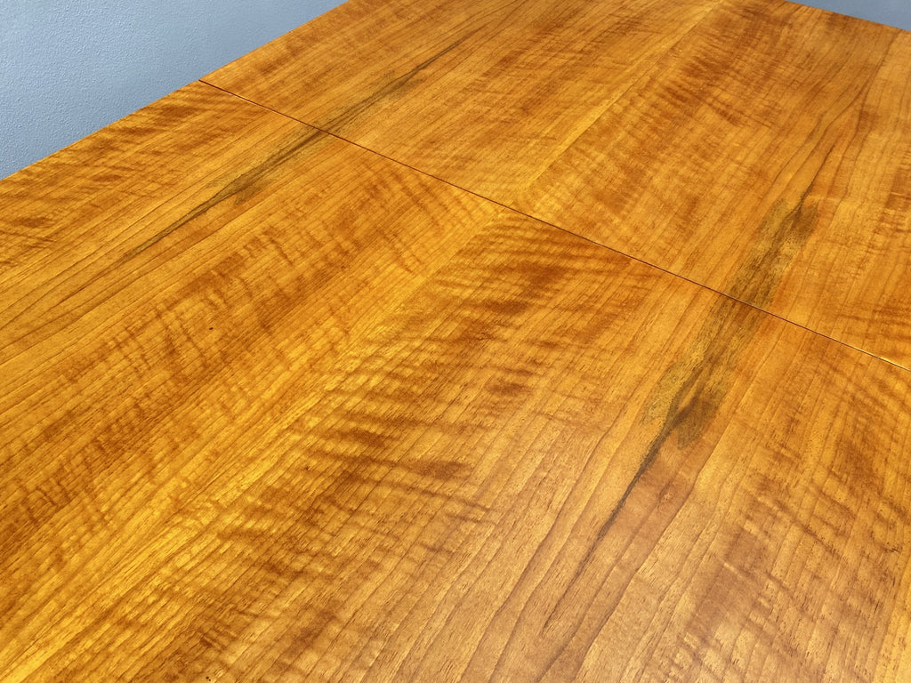 Recently fully renovated and repainted, it is in excellent condition. The rich walnut finish and subtle Art Deco influence give it an elegant appearance, while the sturdy construction ensures long-lasting use. A rare piece that will bring character and refinement to any dining room.