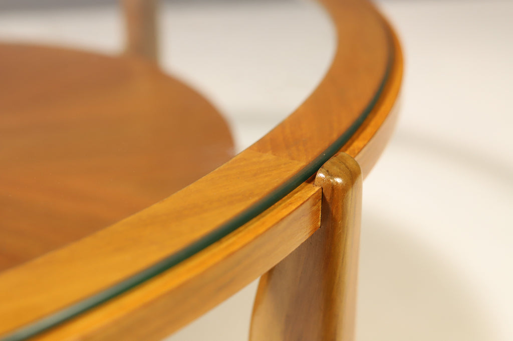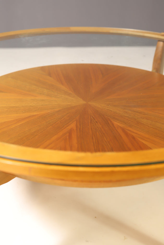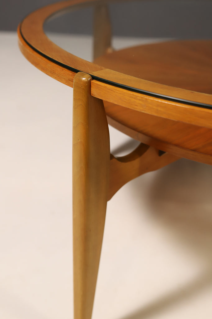 Coffee Table with beech wood veneer and Glass Top, Wilhelm Renz, 1960's, Germany