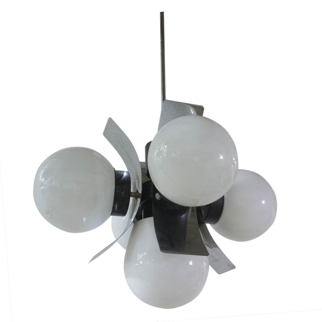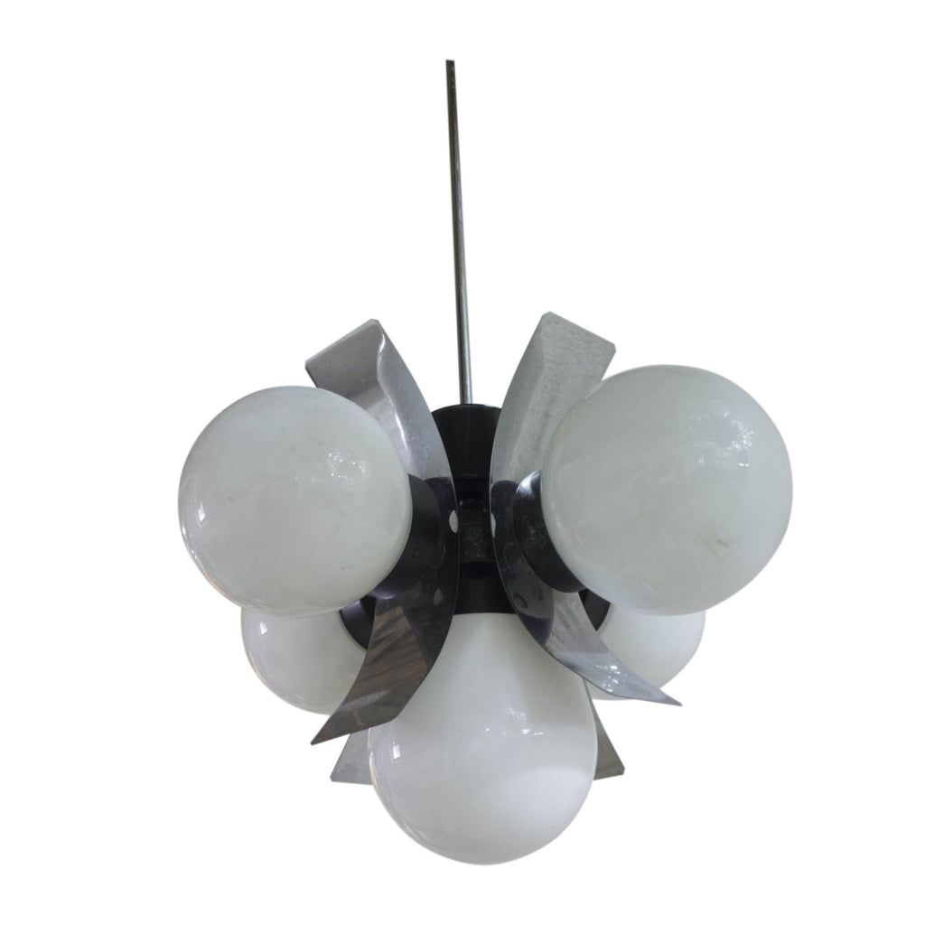 Mid century chromed steel pendant lamp, Czechoslovakia