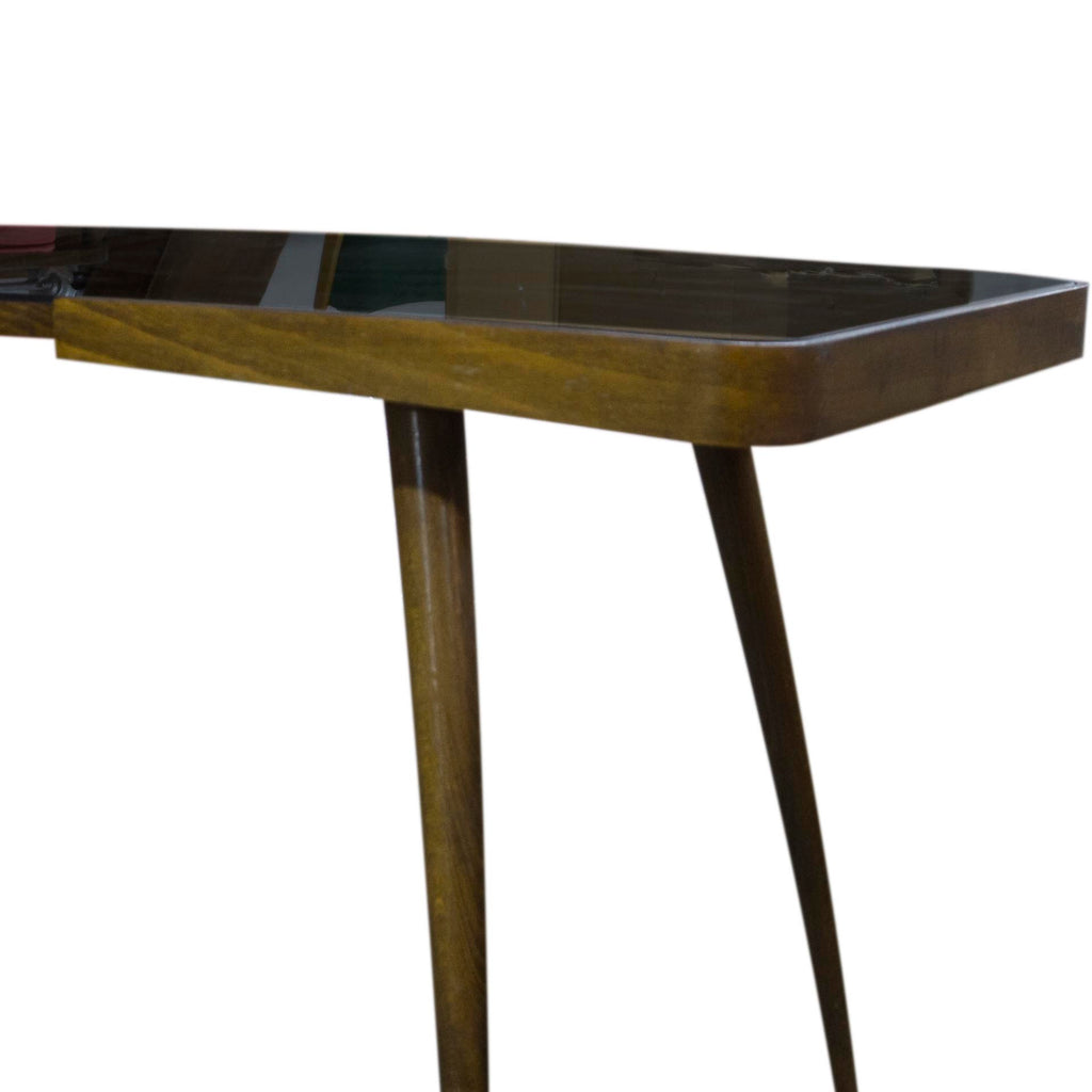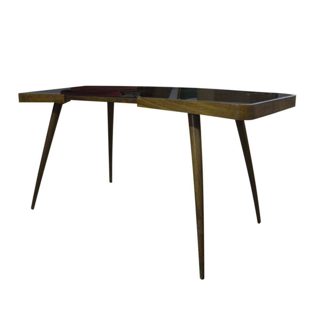Long coffee table, 1960´s. Associated with world-renowned exhibition EXPO 58 in Brussels. A design by uknown author. Beechwood. Black glass tabletop. In very well preserved condition. Height 62 cm, length 120 cm, width 55 cm.