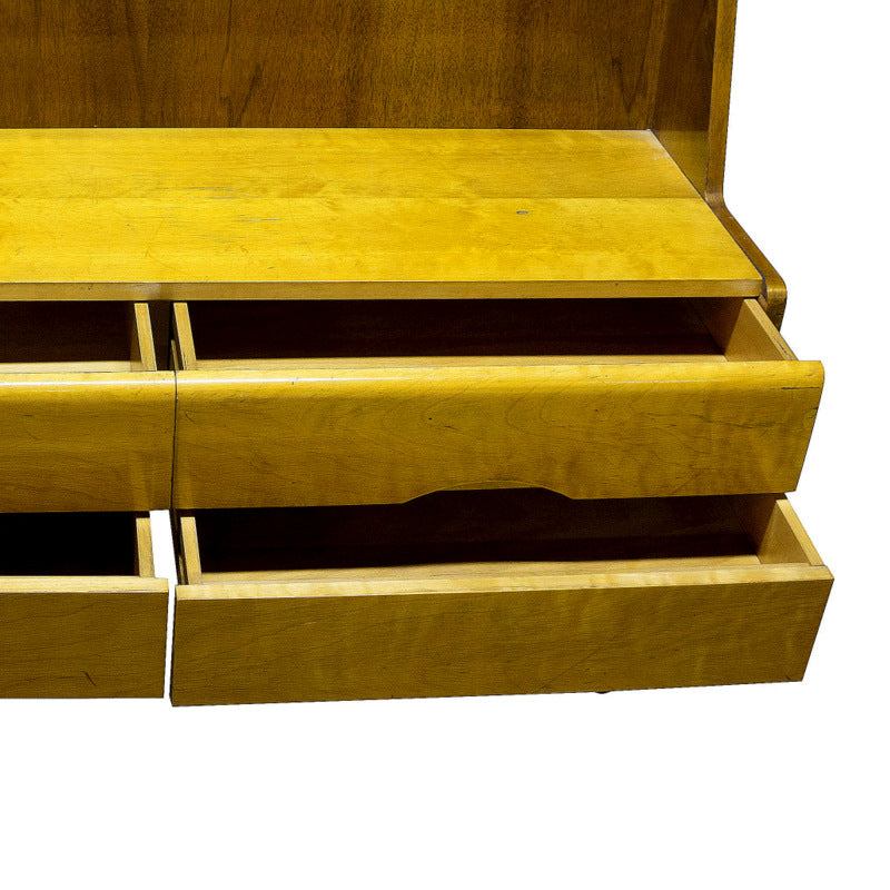 A typical example of "Brussels period" asocciated with world-renowned EXPO 58. Mid century dressing table with wall mirror. Beech wood, elm wood, in good vintage condition.