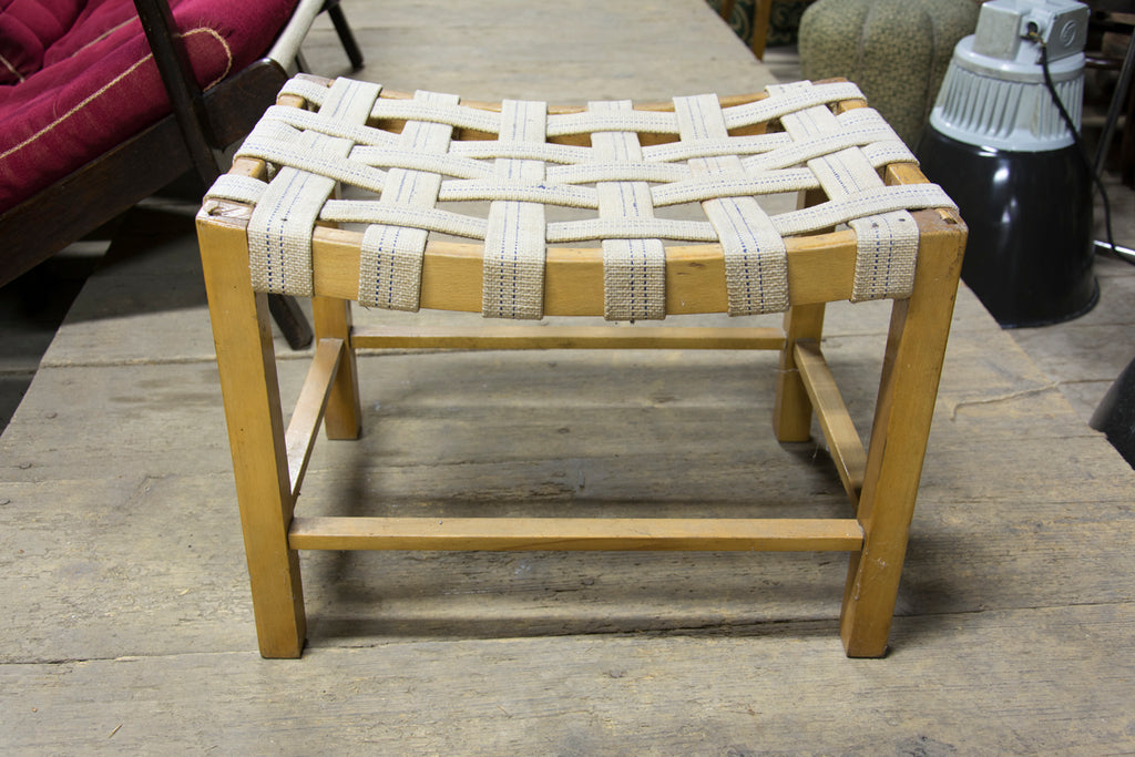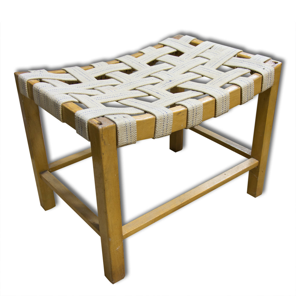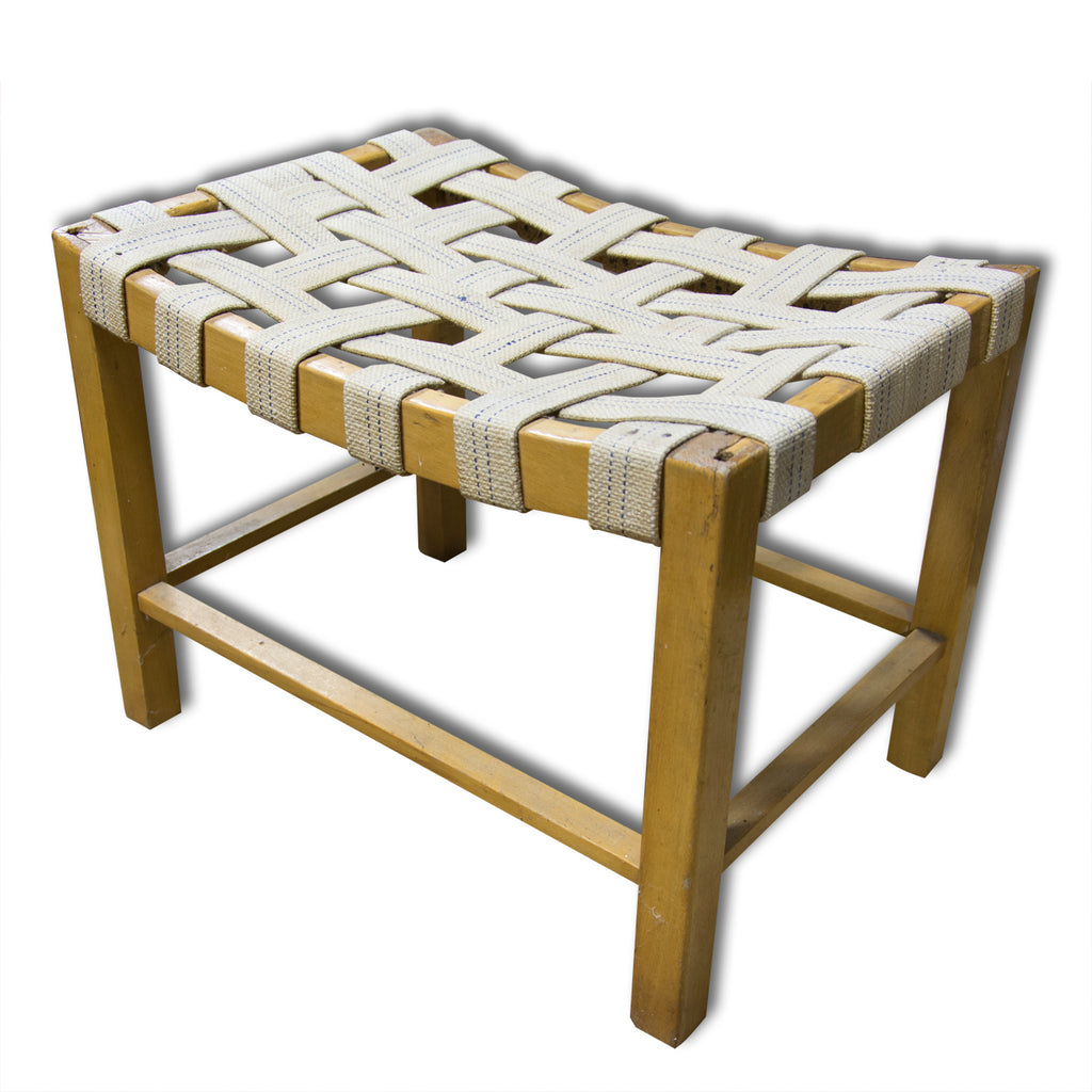 Czech Vintage stool,made in the 1960´s, foot rests, a rectangular shape with four wood feet. Probably manufactured by Drevopodnik Holesov. Beechwood. Wood and upholstery in good condition .