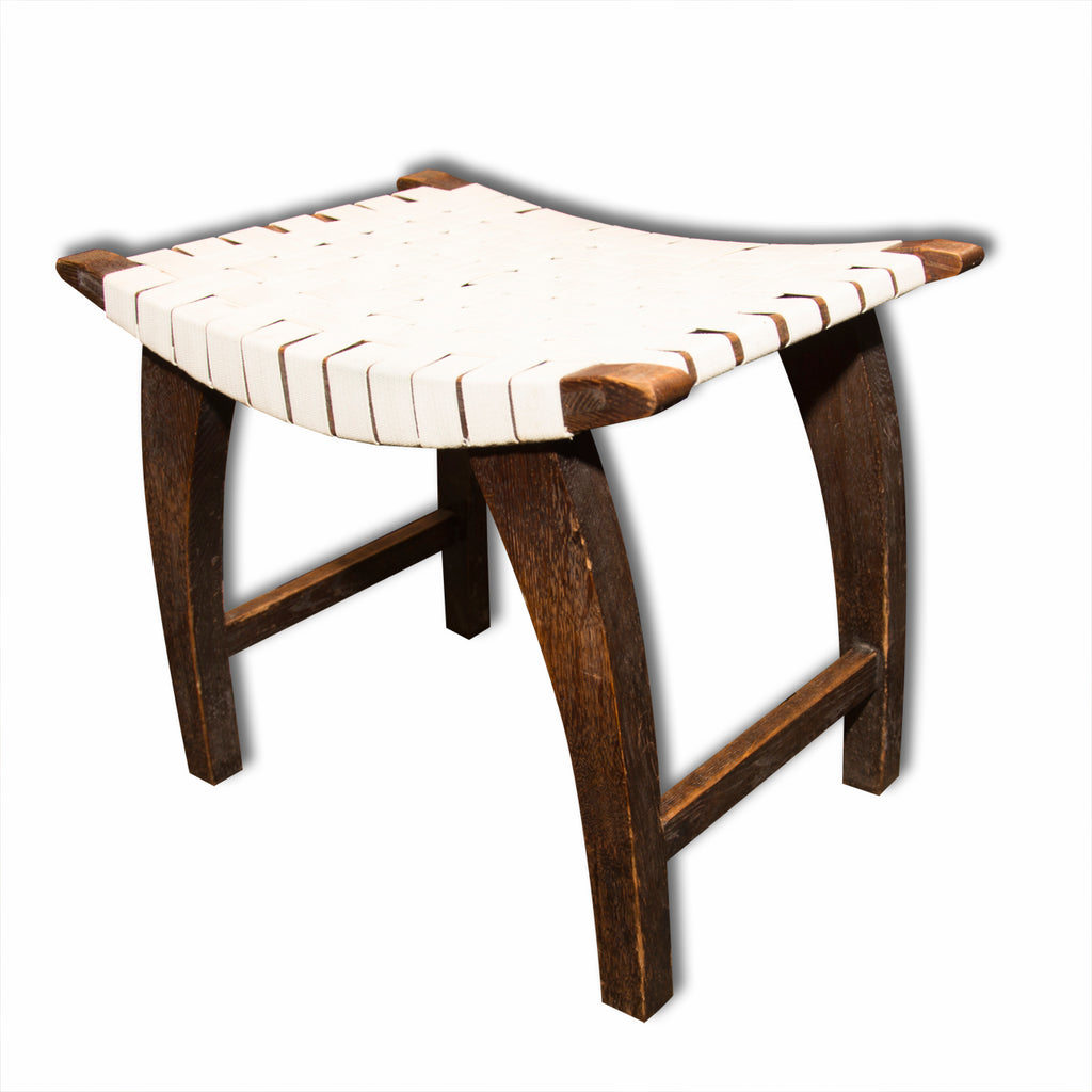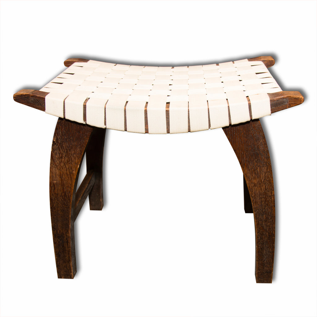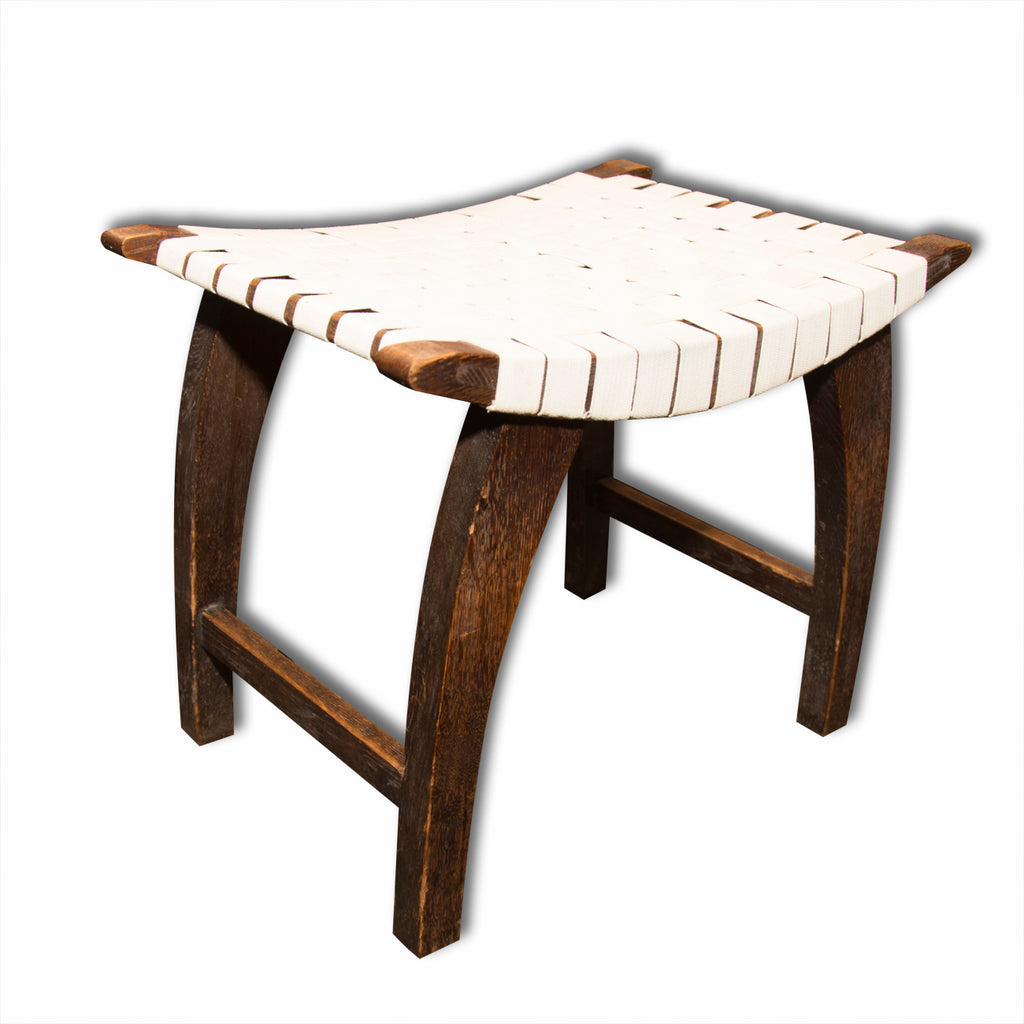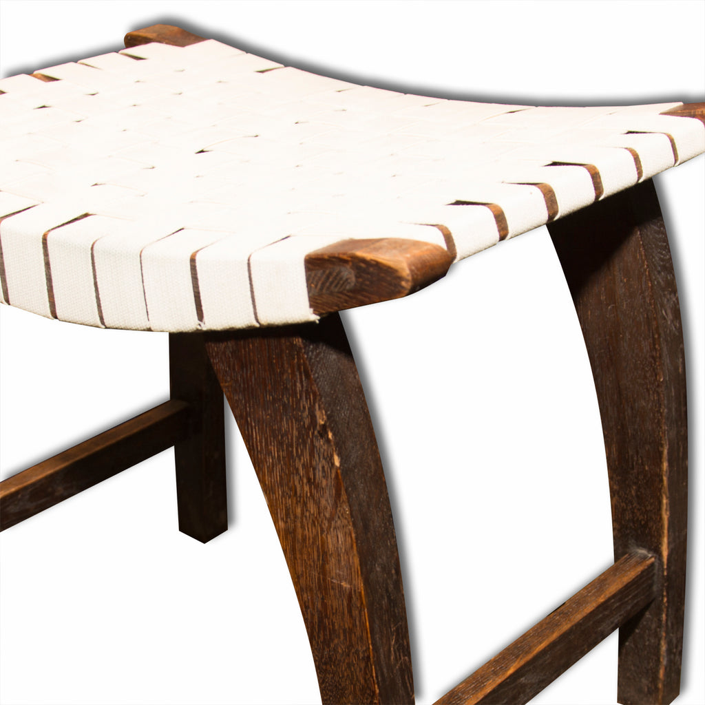 Czechoslovak Vintage stool, attribute to Jan Vaněk, made in the 1950´s. It features an unconventional design, irregular shaping. It was made of dark stained beech wood. Wood and strips are in very good Vintage condition .