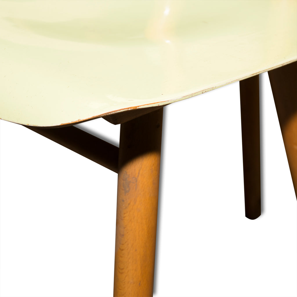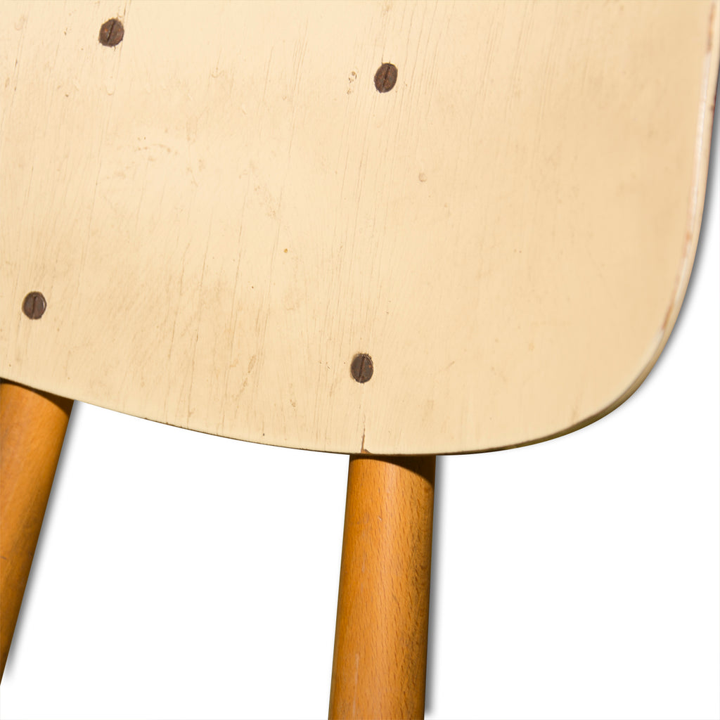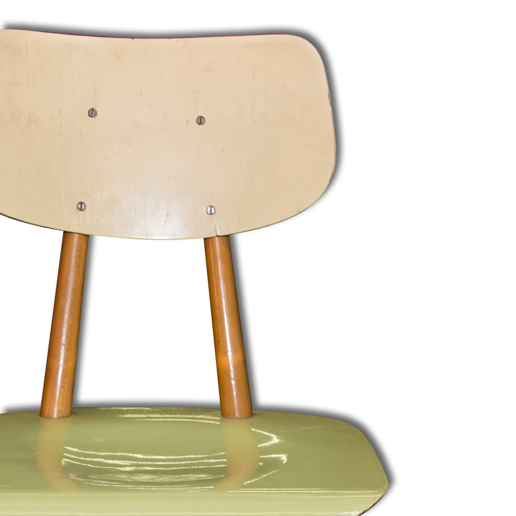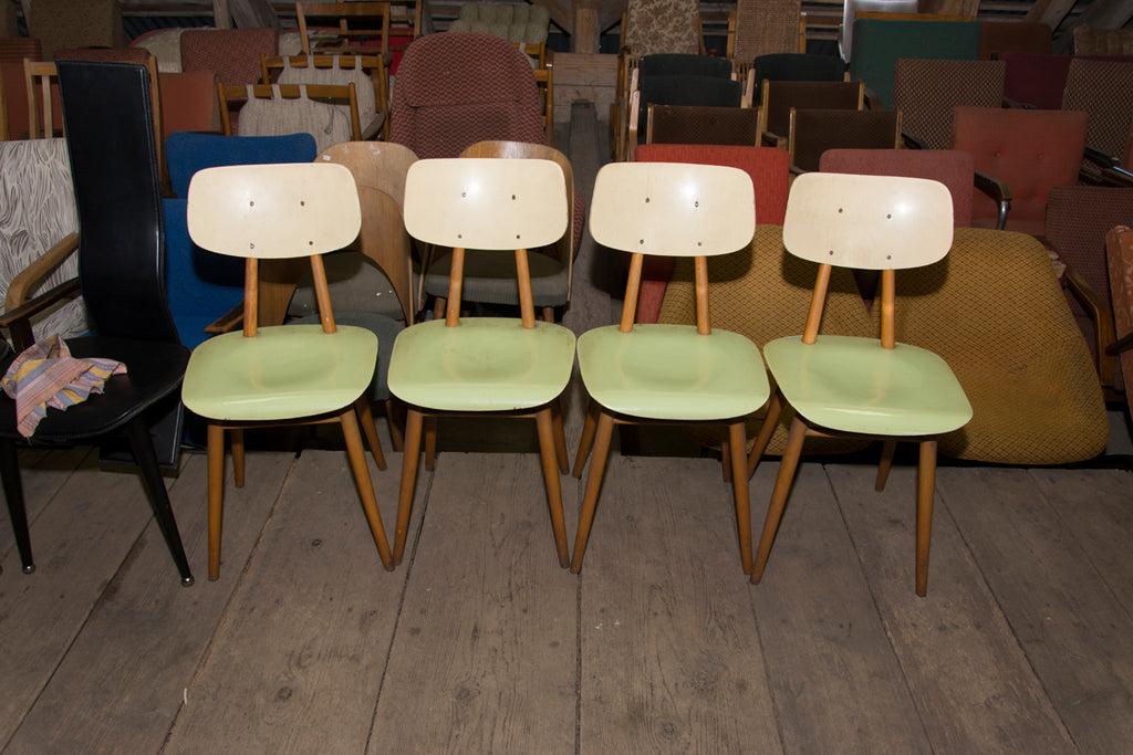 Set of four chairs from the 1960´s. It was produced by TON, Bystřice nad Hostýnem, Czechoslovakia. The TON company was established as successor to the famous Thonet after World War II in Czechoslovakia and continued the production of bentwood furniture. It features a beechwood construction and lacuered seats and backrests. In good condition with some sign of age and use. Price is for the complet of four.
