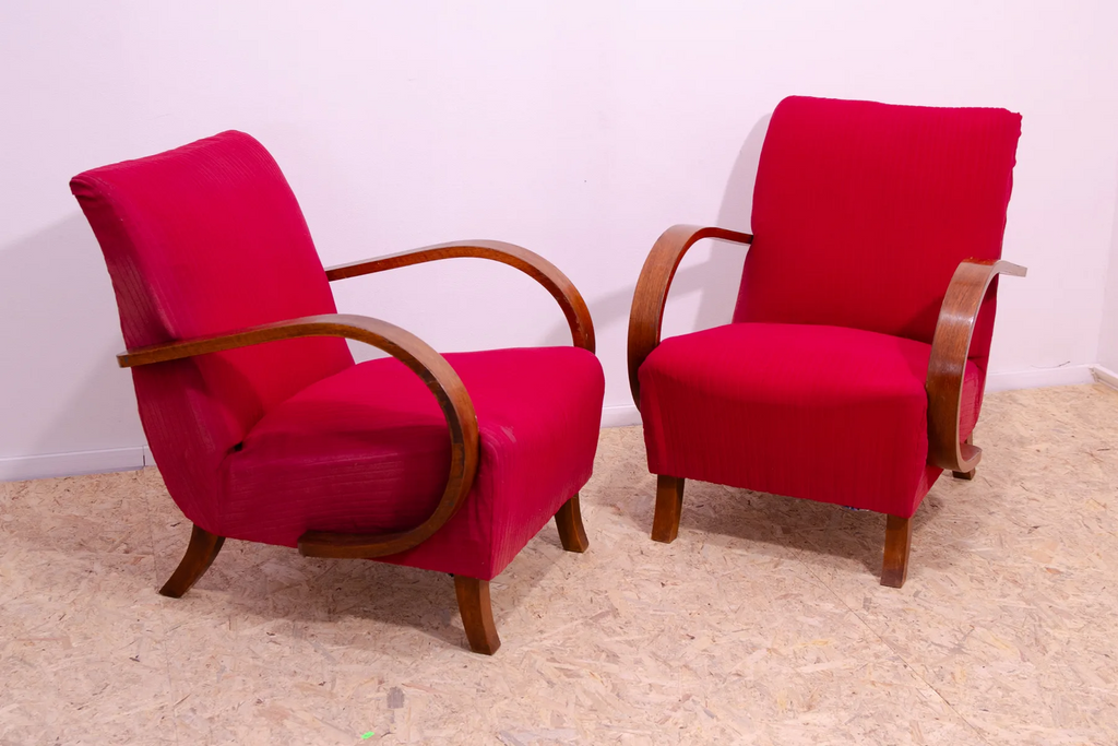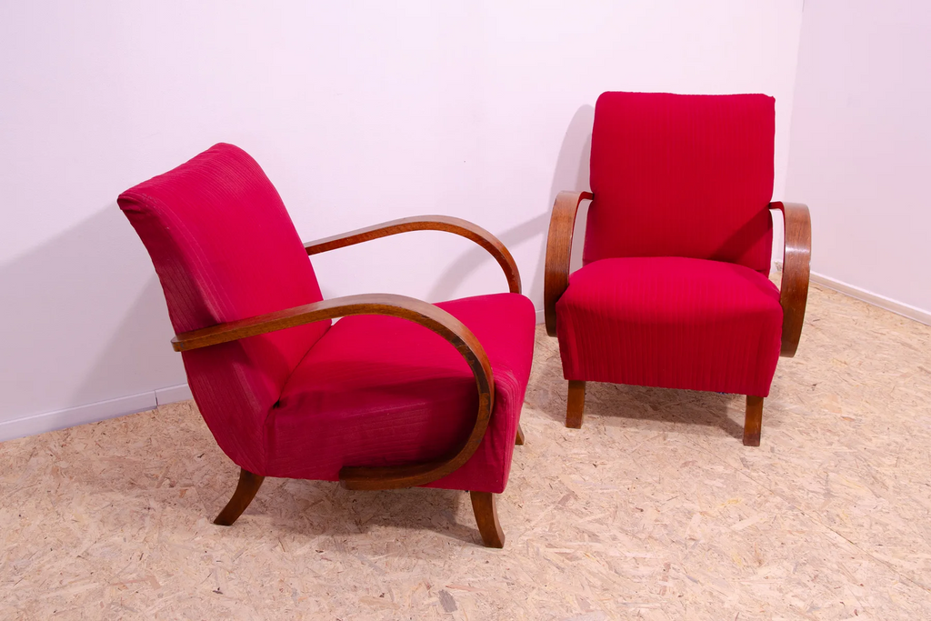 Pair of midcentury bentwood armchairs by Jindrich Halabala for UP Z vody, 1950s