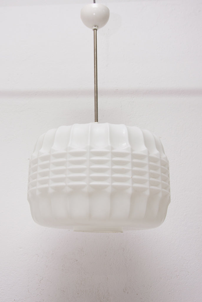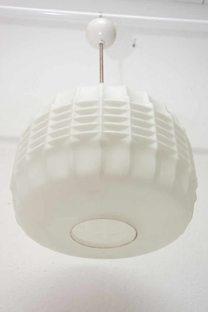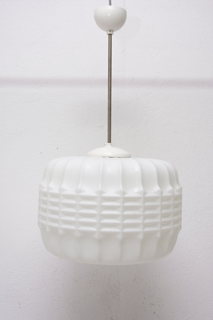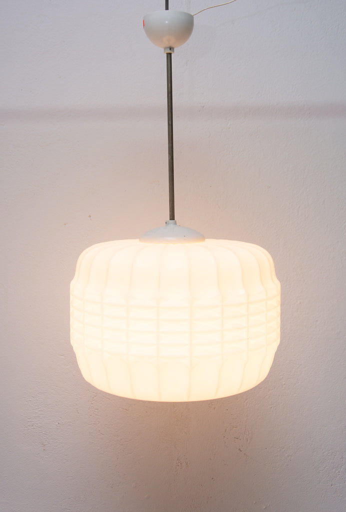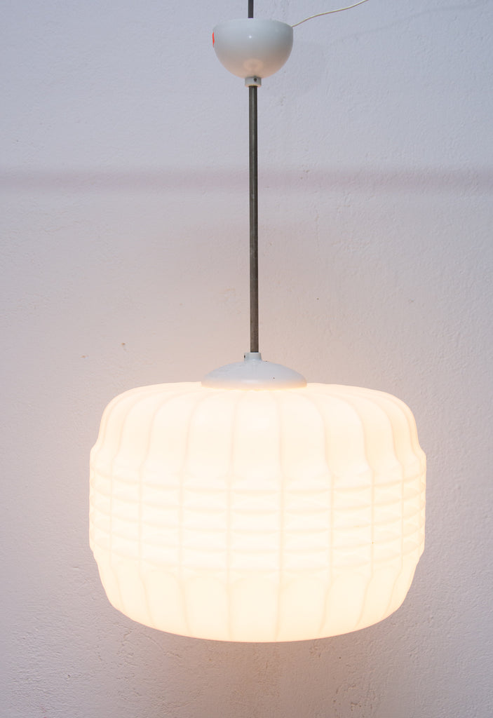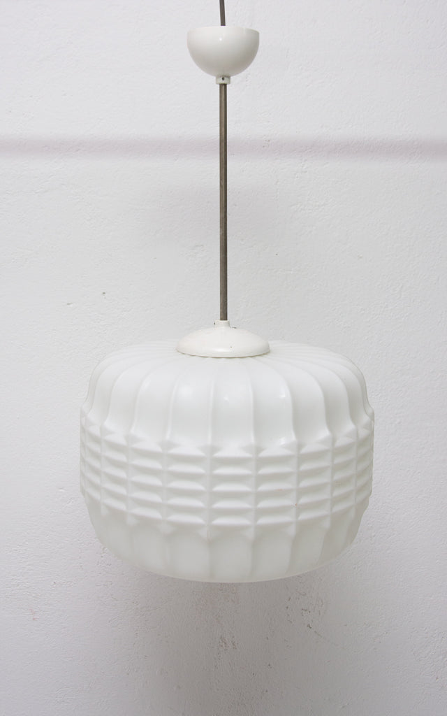 Modernist pendant chandelier made of white opal glass, Czechoslovakia, 1970´s. Suitable for entrance hall, living rooms or office.