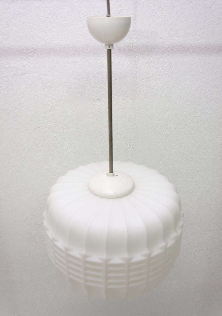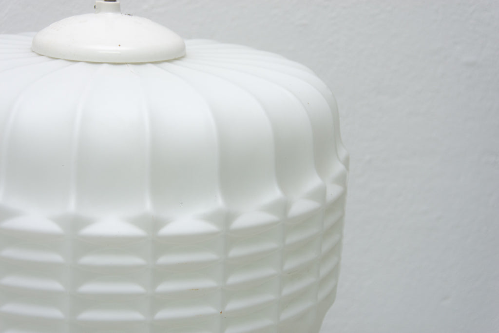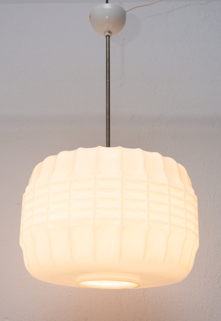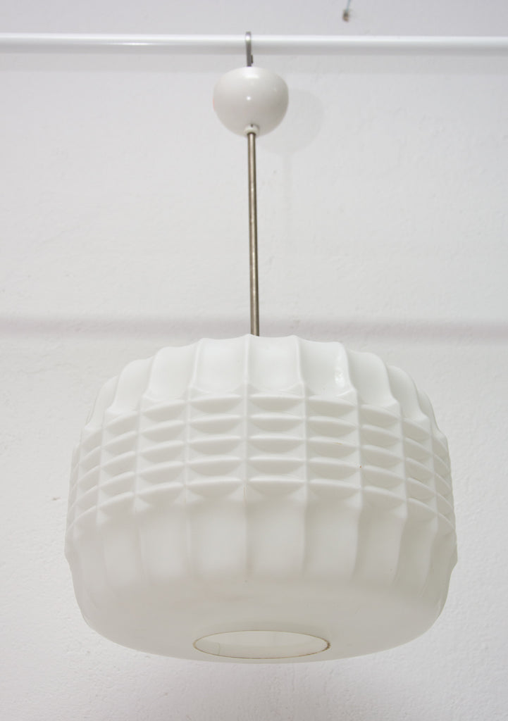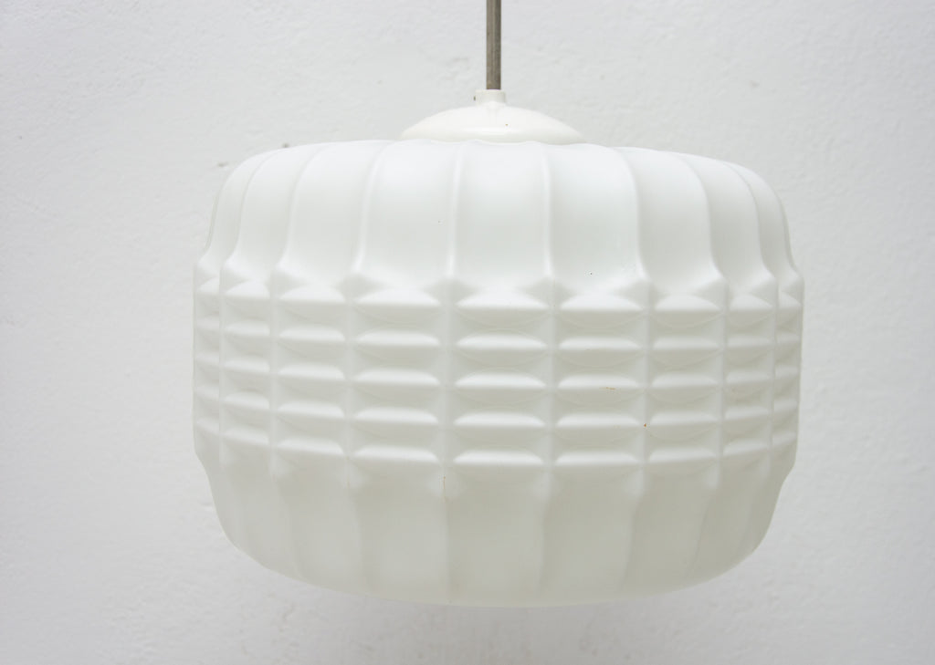 Modernist pendant chandelier made of white opal glass, Czechoslovakia, 1970´s. Suitable for entrance hall, living rooms or office.
