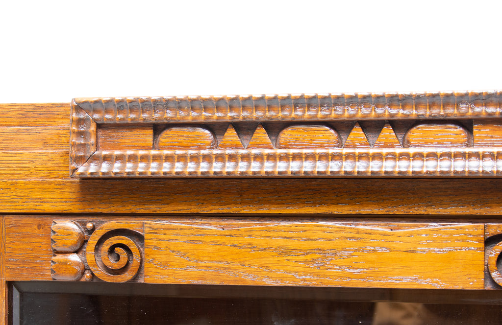 Tato secesní knihovna nebo vitrína byla vyrobena v bývalé rakousko-uherské řísi na počátku 20. století. Knihovna obsahuje charakteristické prvky vídeňské secese. Je ve výborném stavu a byl kompletně zrekonstruován včetně selaku.