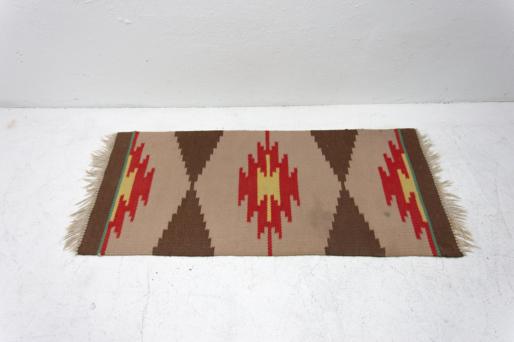 Mid century modern rug Kelim. Made in the 1960´s. It ´s associated with EXPO 58, handmade work, simple design.