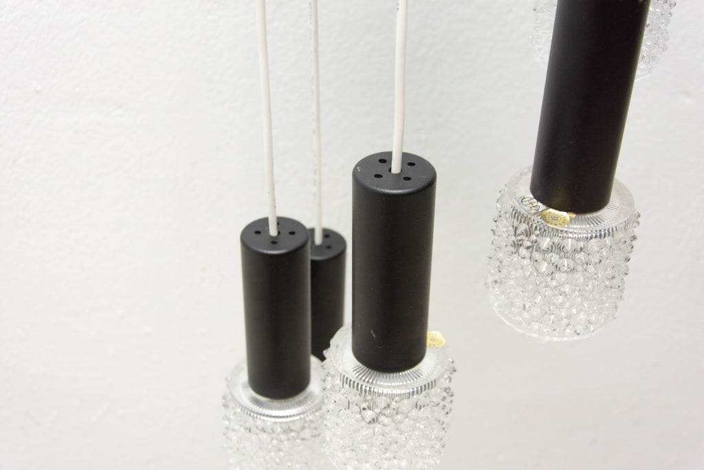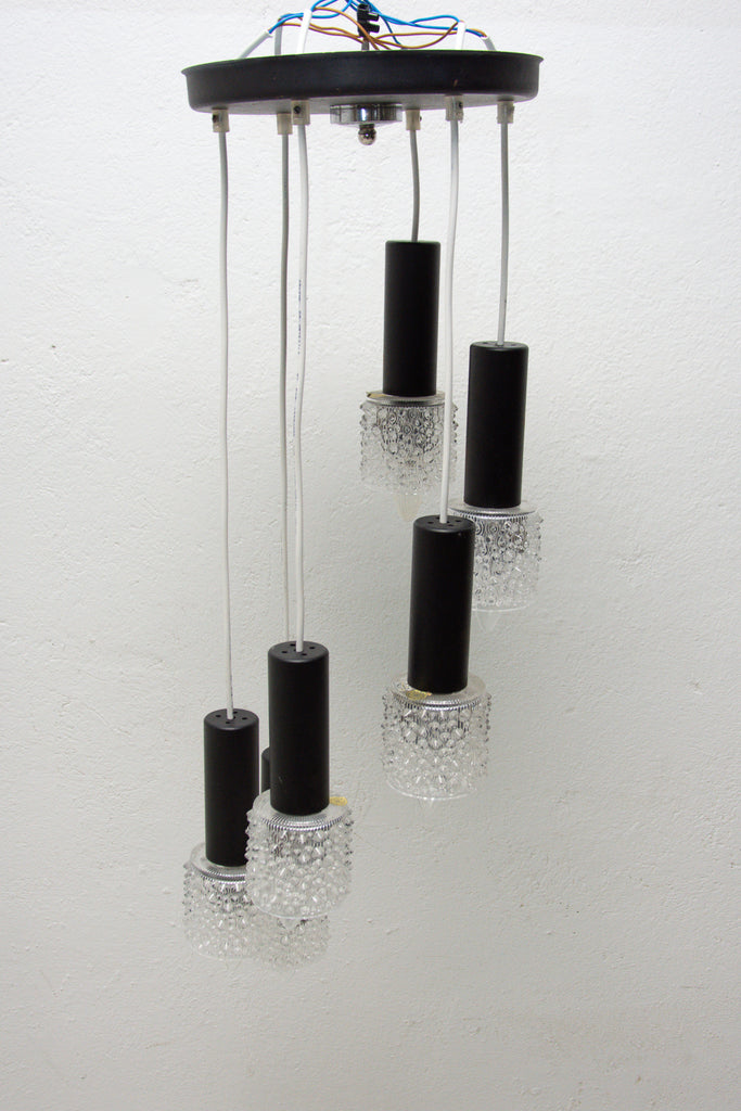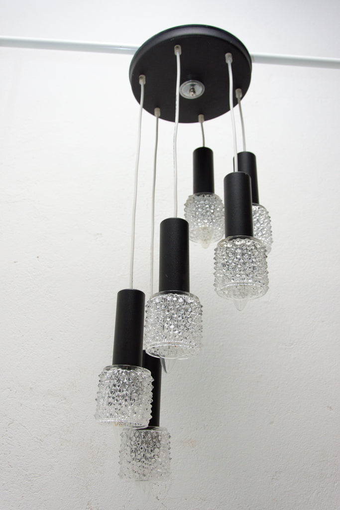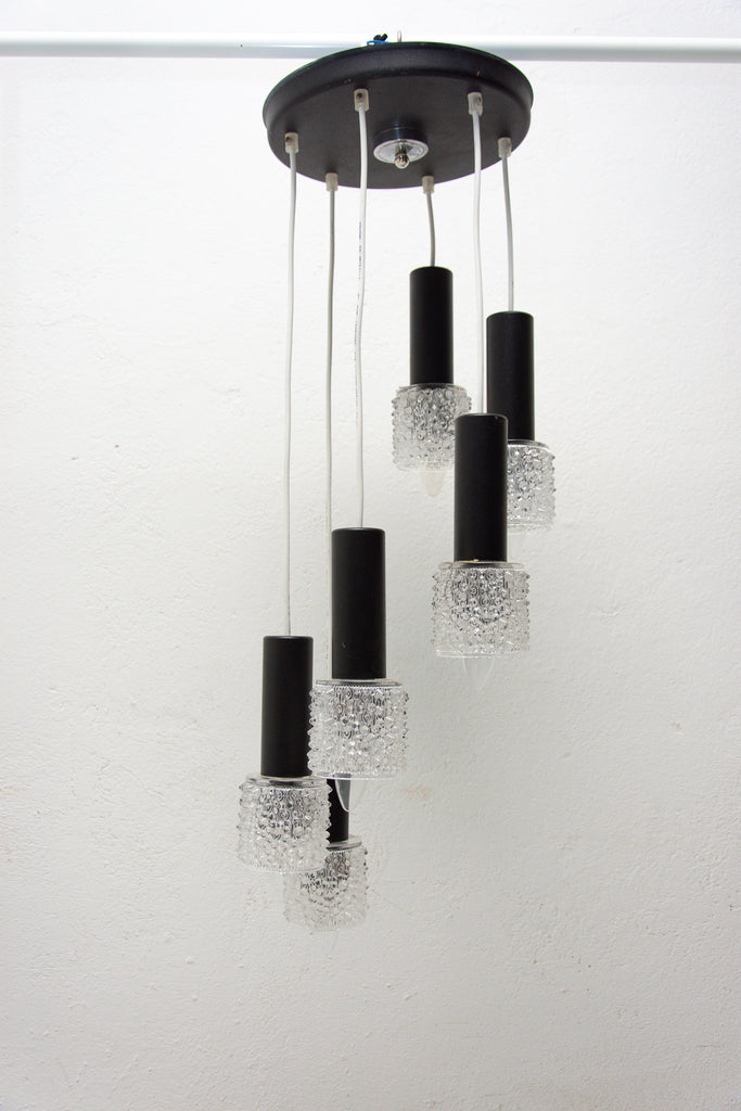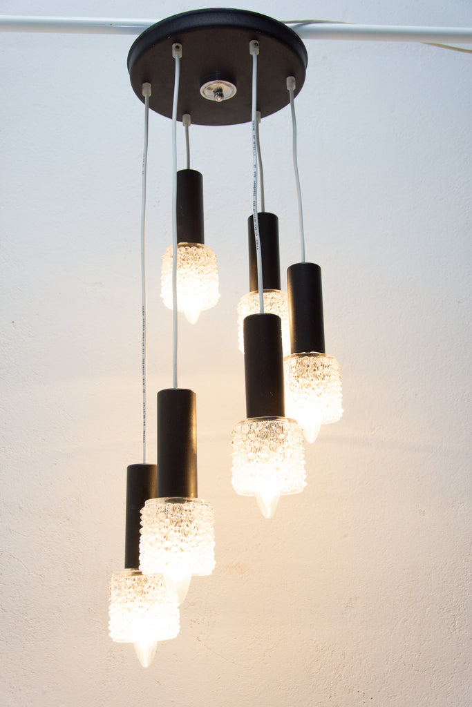 Vintage hanging chandelier with six glass lampshades, Instala DŘźˇn, Czechoslovakia