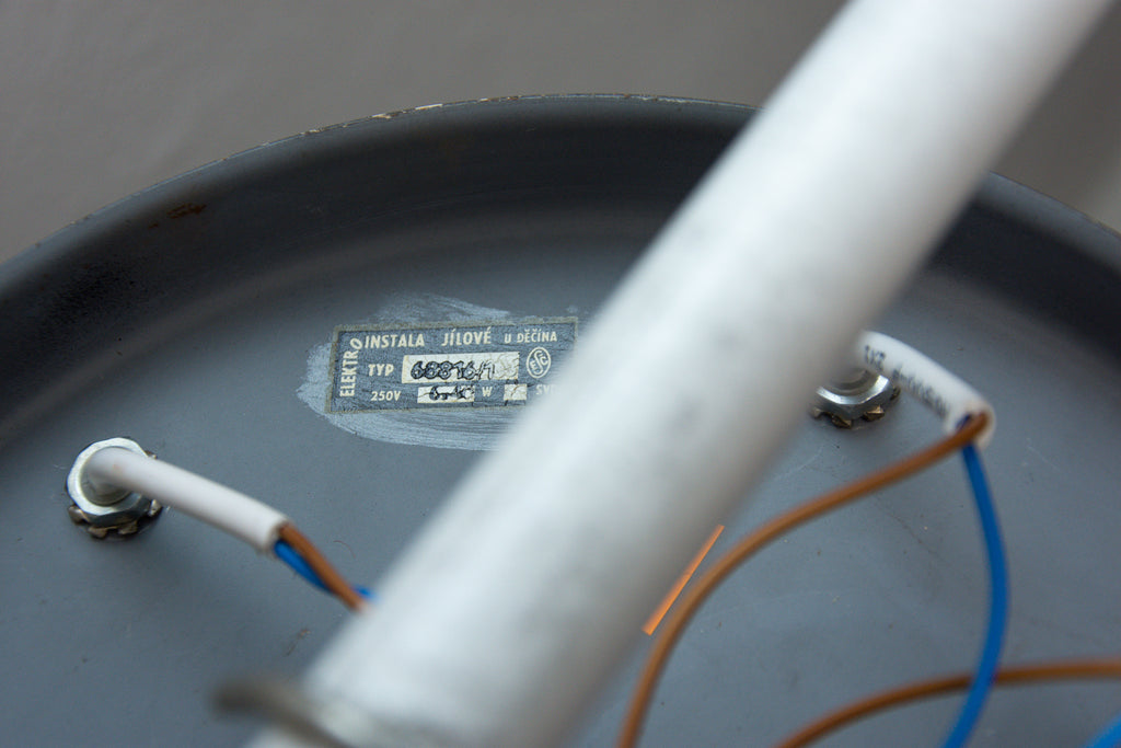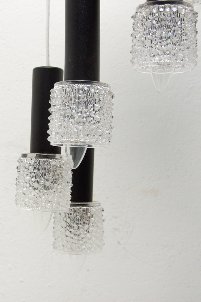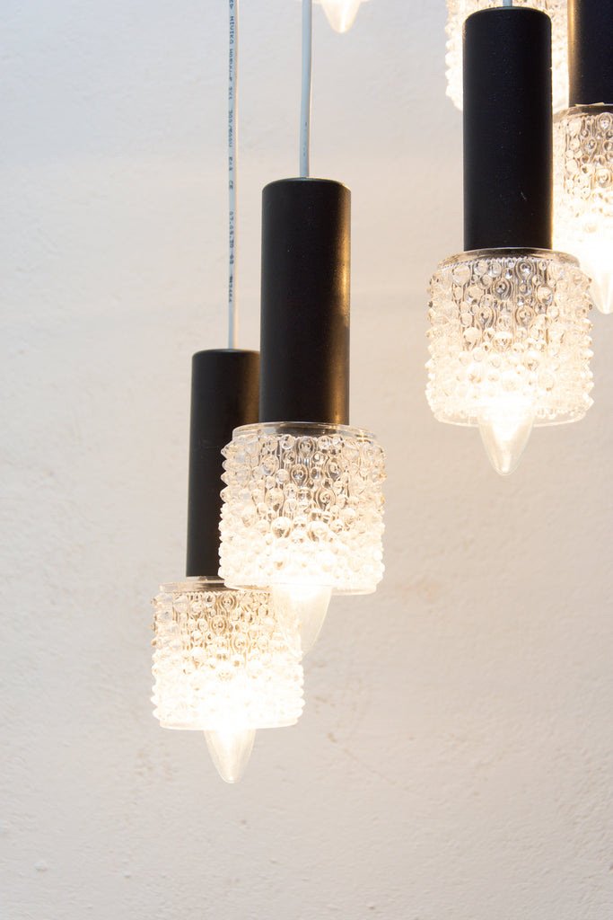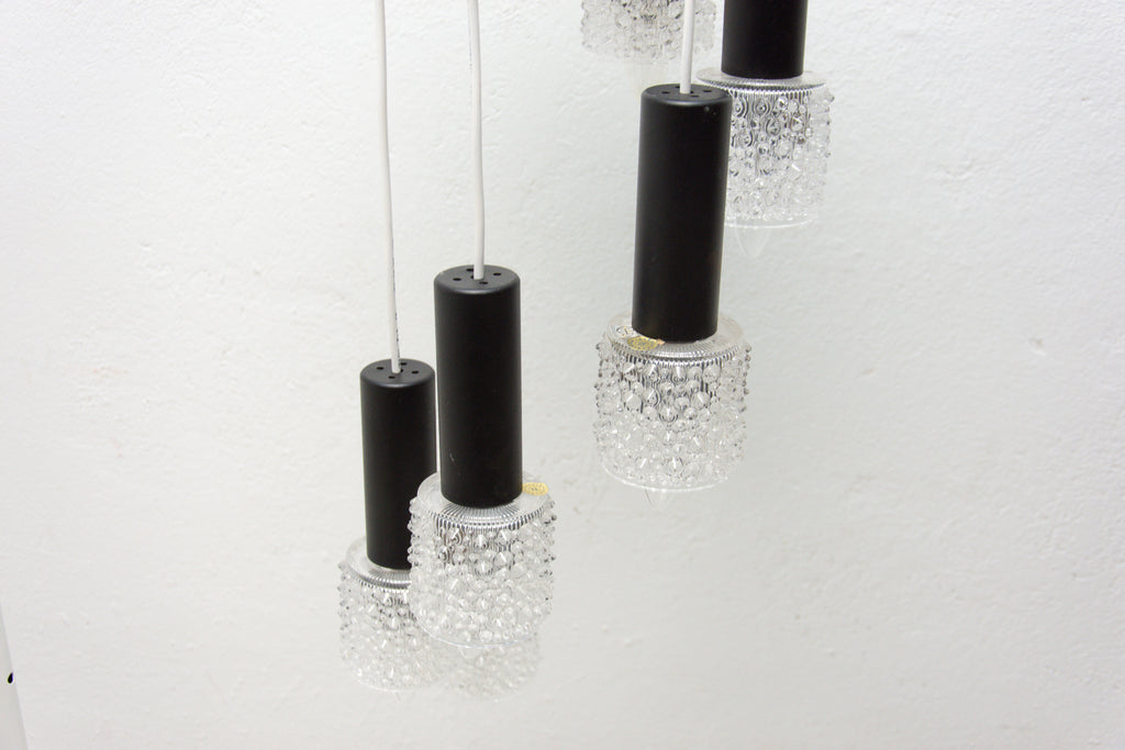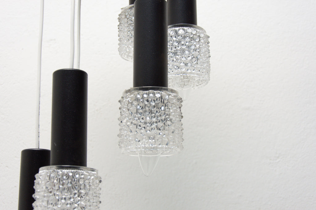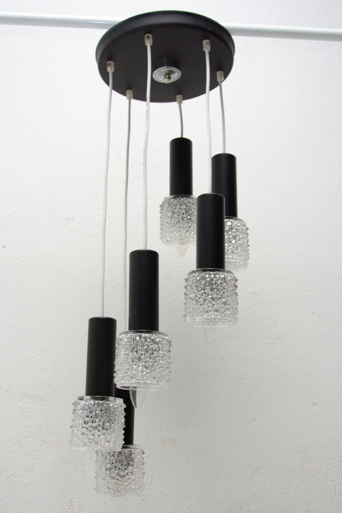 Vintage hanging chandelier with six glass lampshades, Instala DŘźˇn, Czechoslovakia