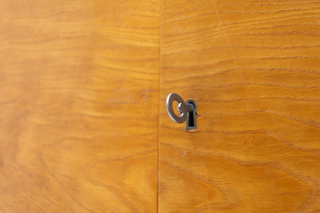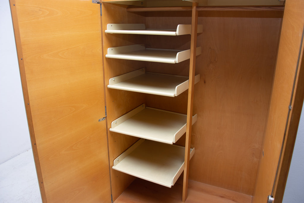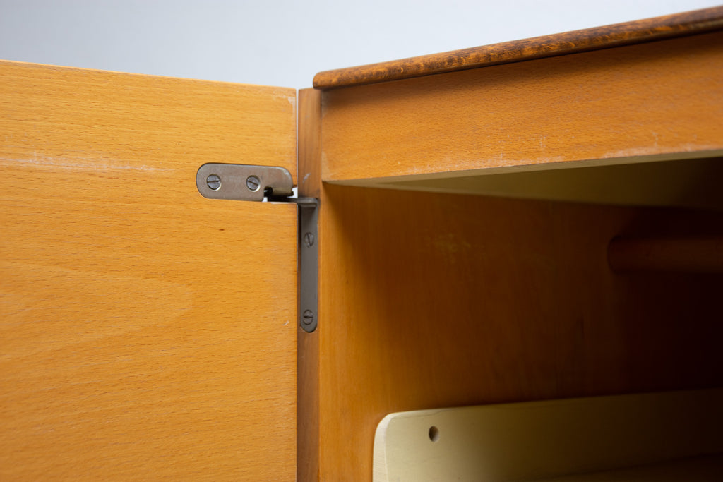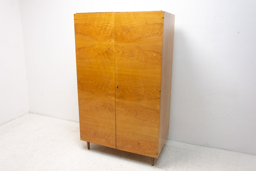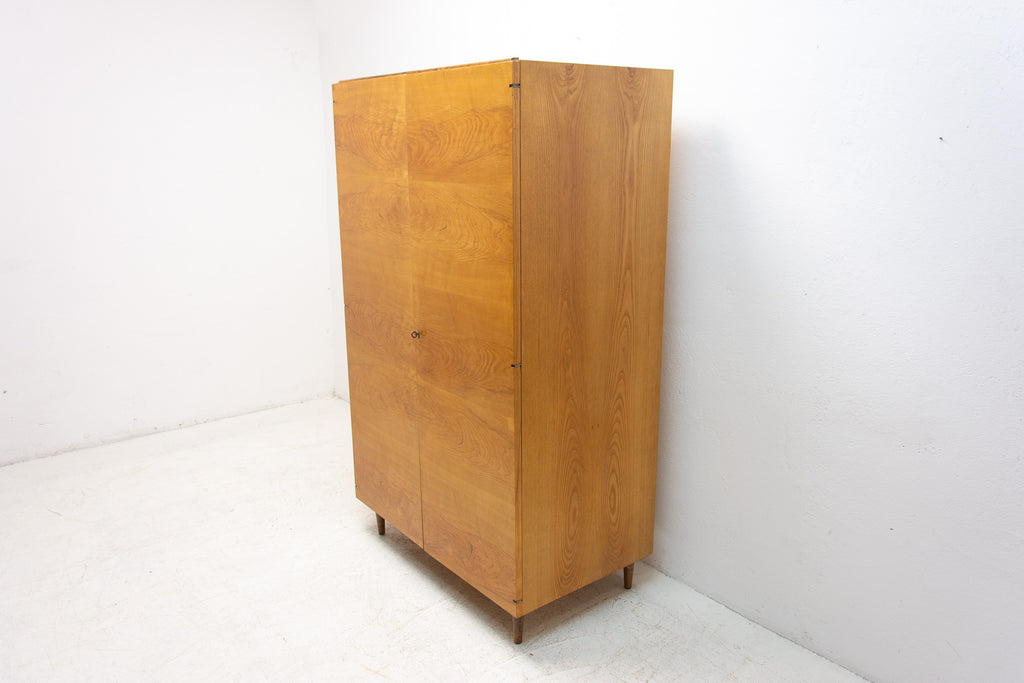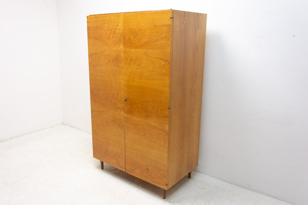This Elegant vintage wardrobe was made by UP Zavody company in the former Czechoslovakia in the 1970´s. There is one clothes rail inside and a storage space next to it. In good Vintage condition, showing slight signs of age and using. It´s made of ash wood.