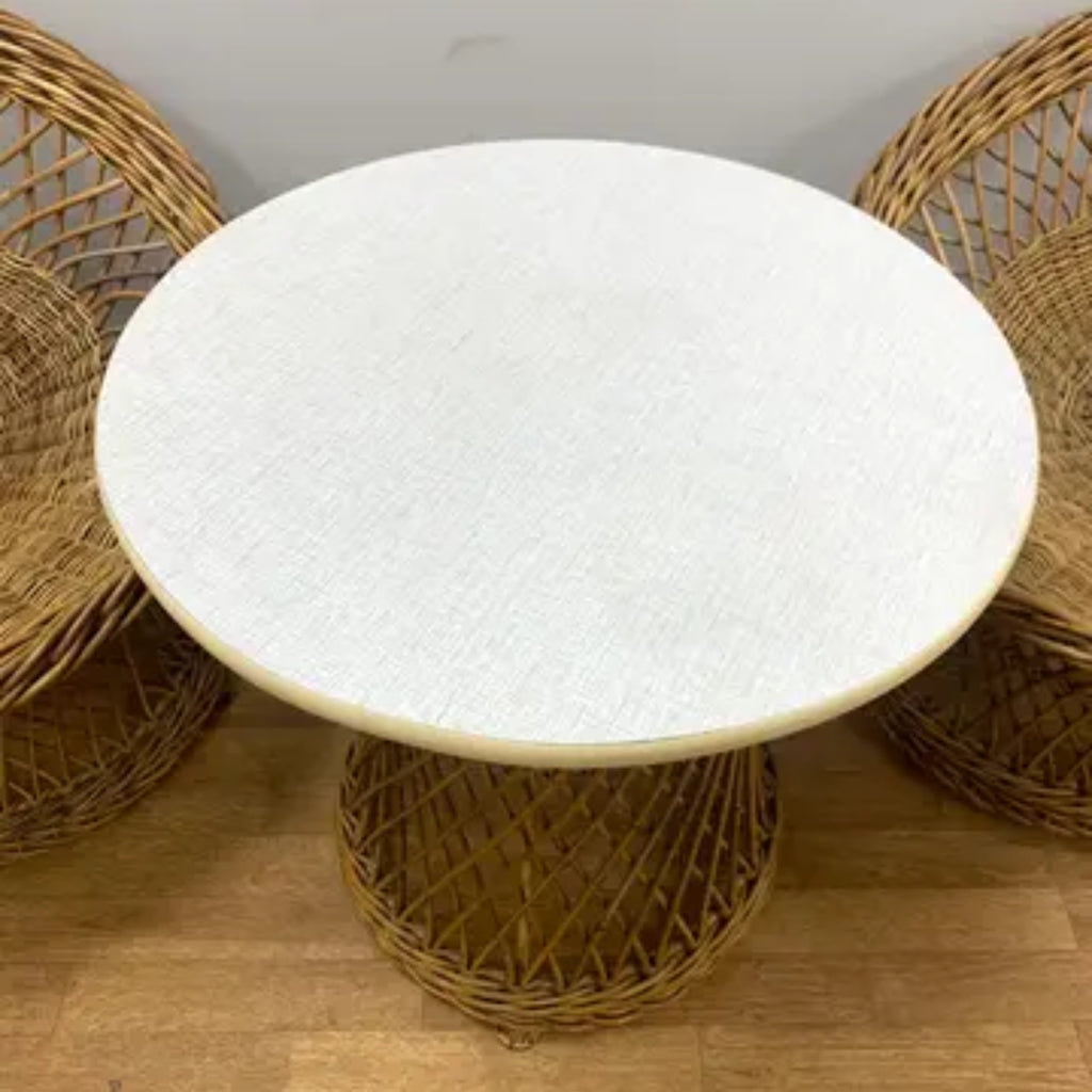 Mid-Century Retro Vintage Rattan Armchairs & Table Set, 1960s