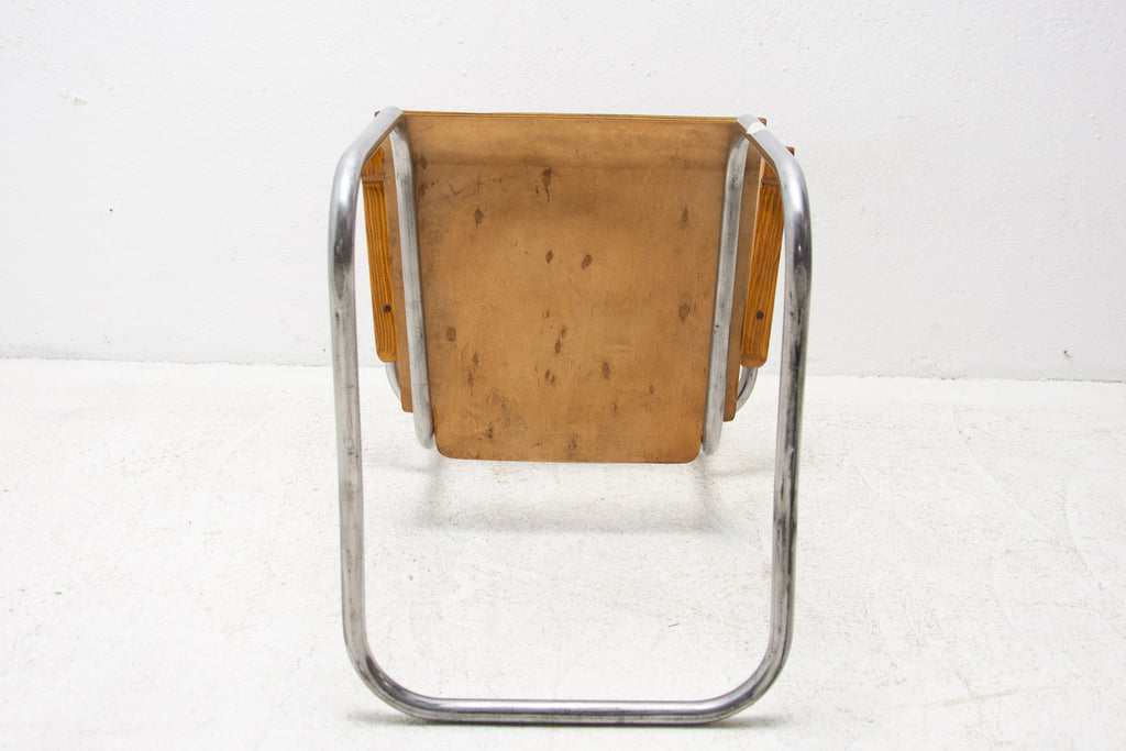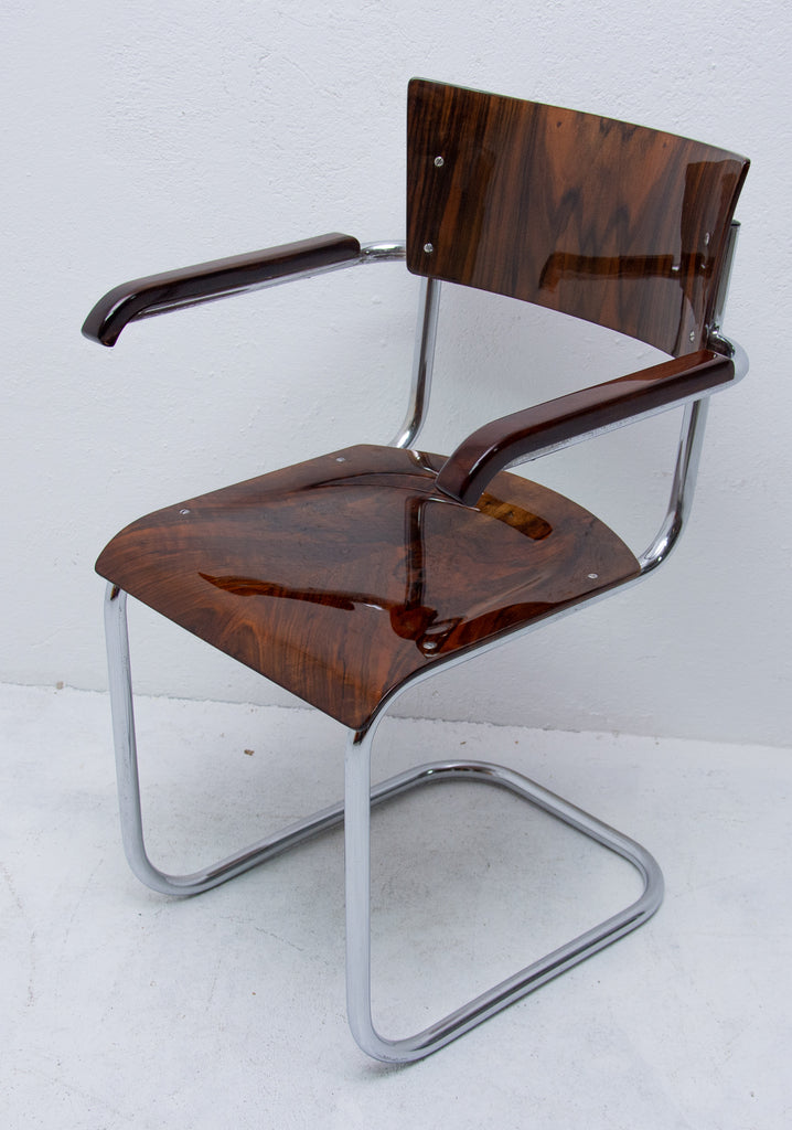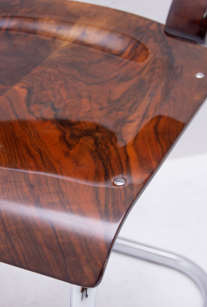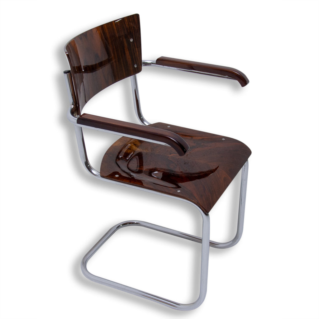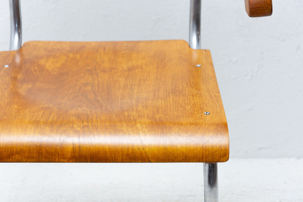 This B43 tubular desk chair was designed in 1931 by the world-renowned designer Mart Stam. It was made in the 1950s by Kovona company. The chair is fully refurbished to a high gloss using polyurethane. In excellent condition.