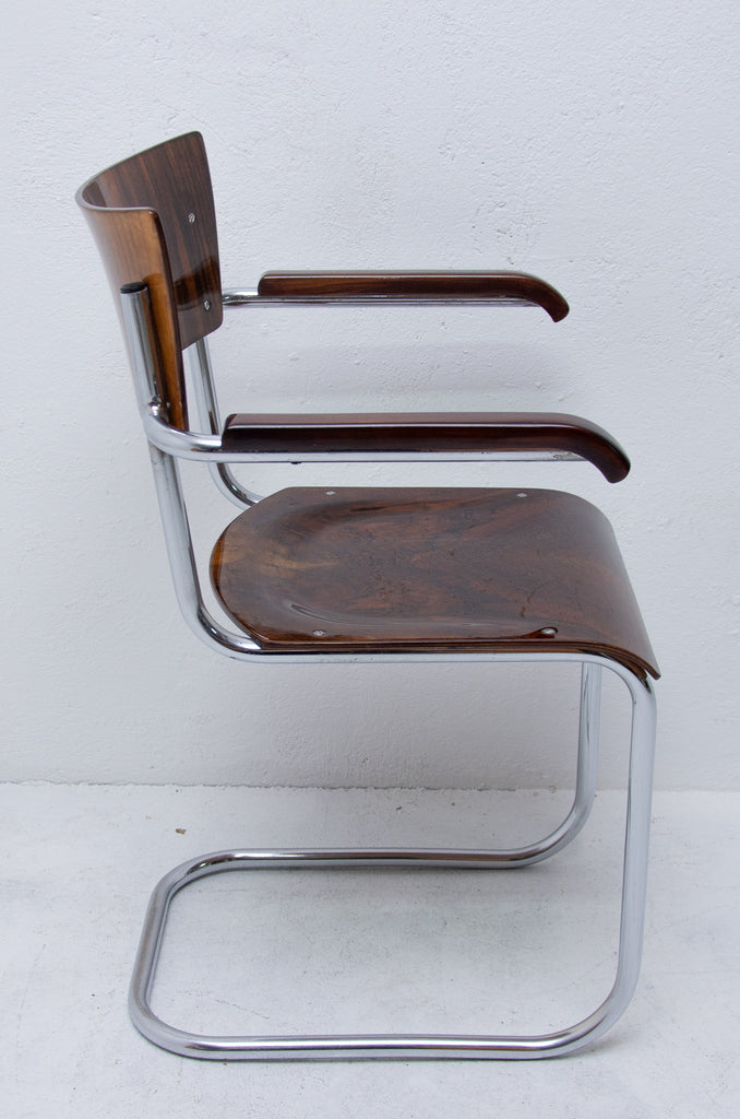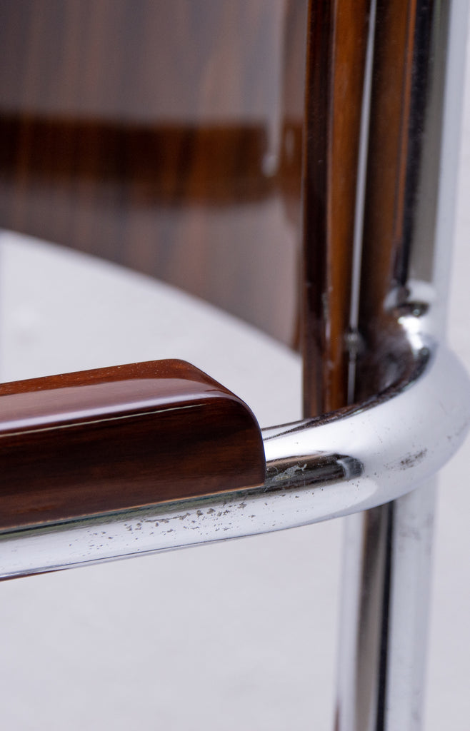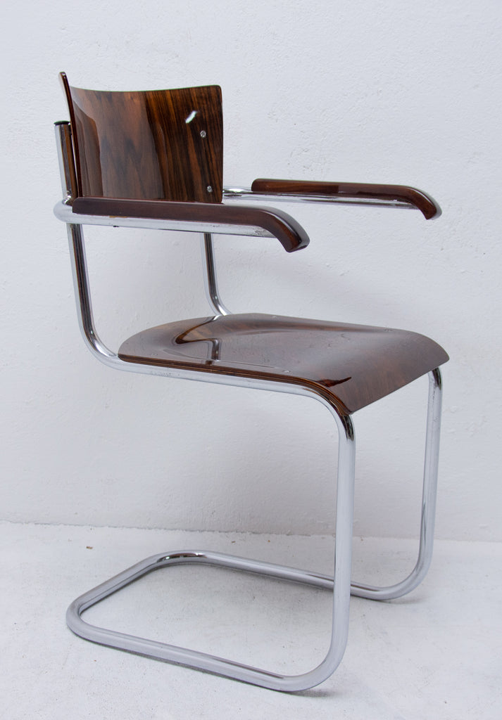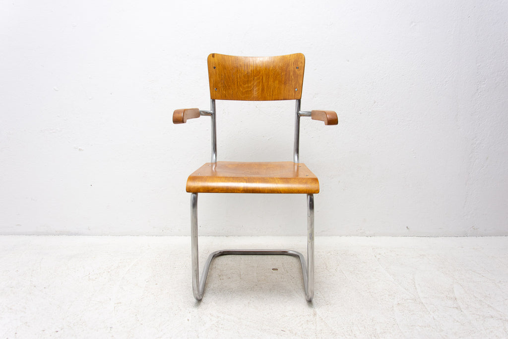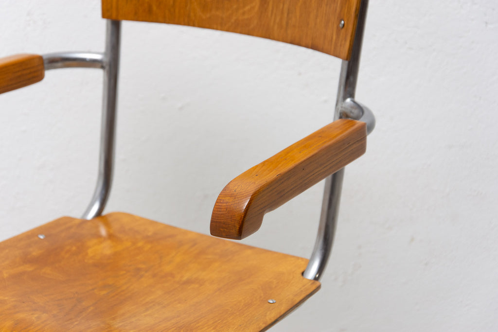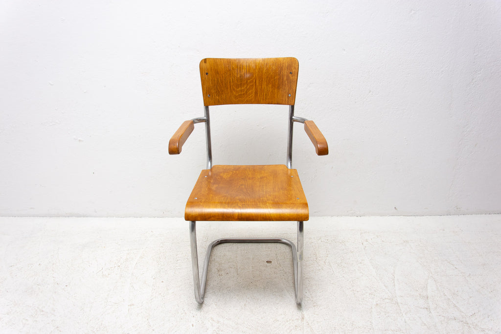 This B43 tubular desk chair was designed in 1931 by the world-renowned designer Mart Stam. It was made in the 1950s by Kovona company. The chair is fully refurbished to a high gloss using polyurethane. In excellent condition.