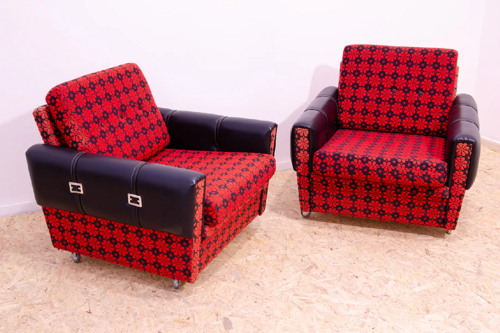 Pair of Eastern bloc Vintage armchairs, 1970s, Czechoslovakia