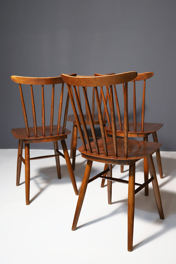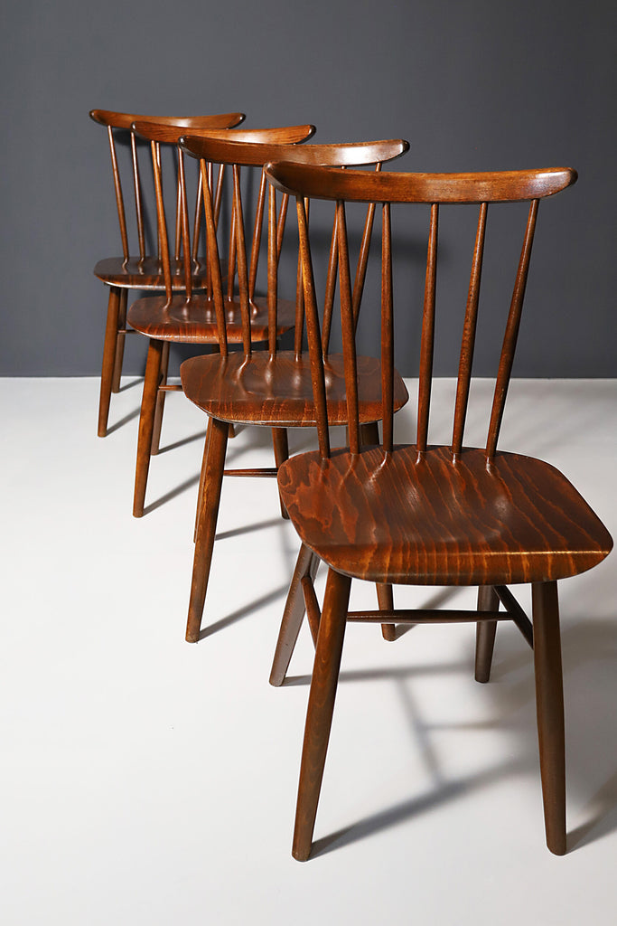 Set of four dining chairs produced by TON in the 1960´s. Made in Czechoslovakia. Marked. Beech construction . In good condition. Price is for the set of four.