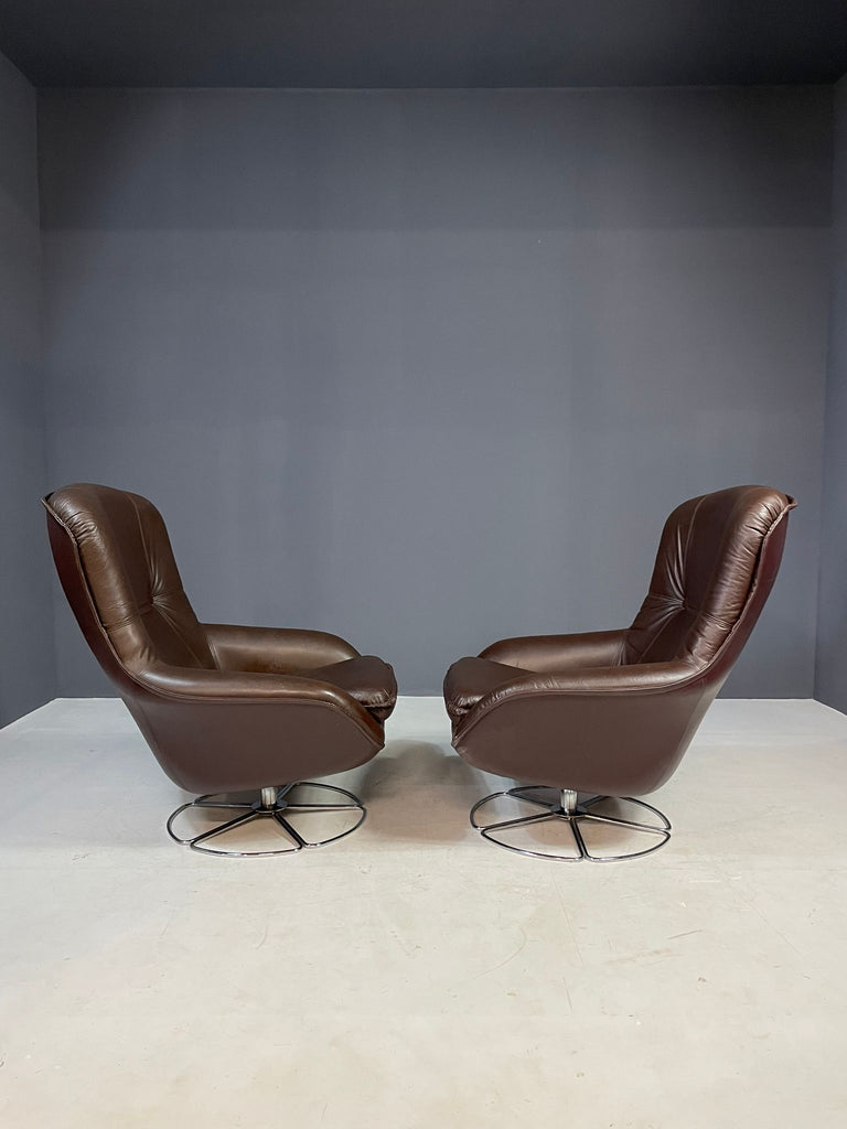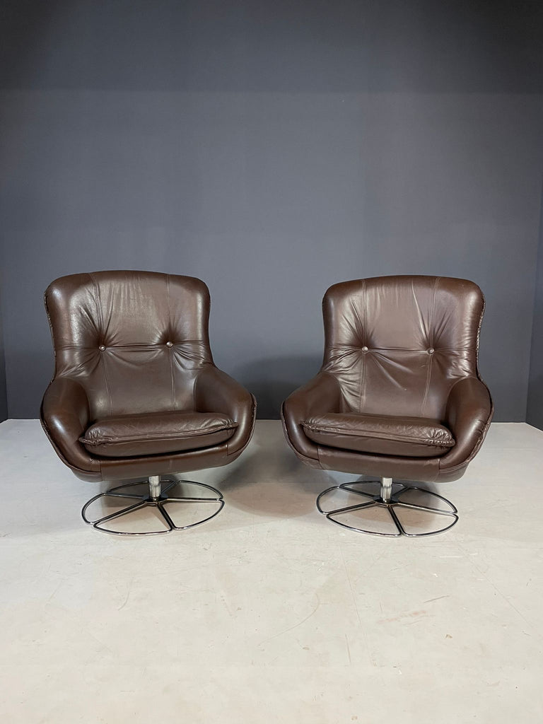 Pair of Leather Swivel Armchairs by PEEM, Finland, 1970s