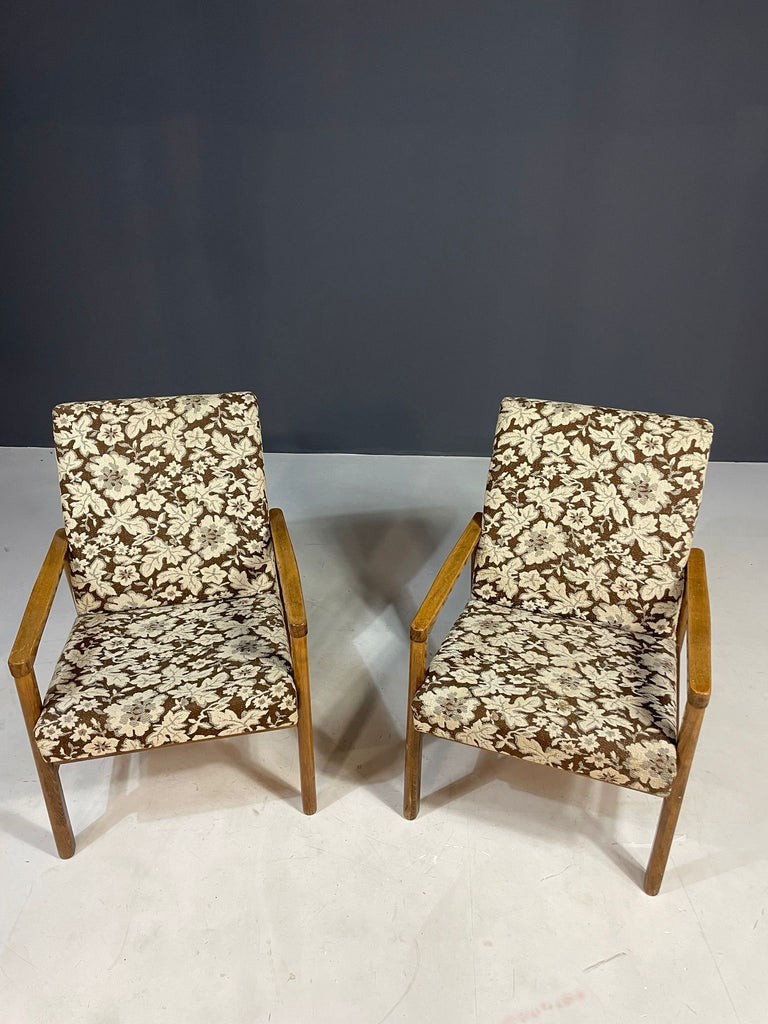 Pair of Retro Armchairs with Floral Upholstery, Czechoslovakia, 1960s