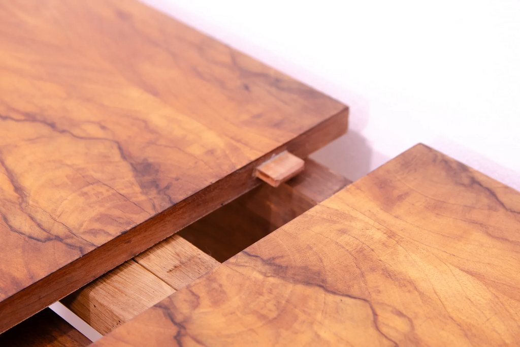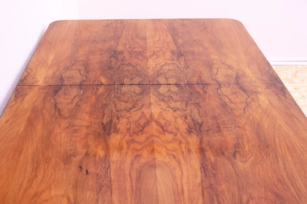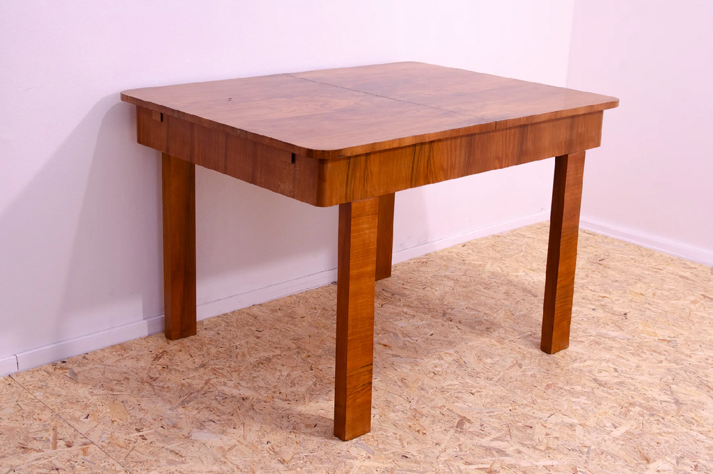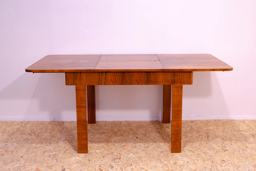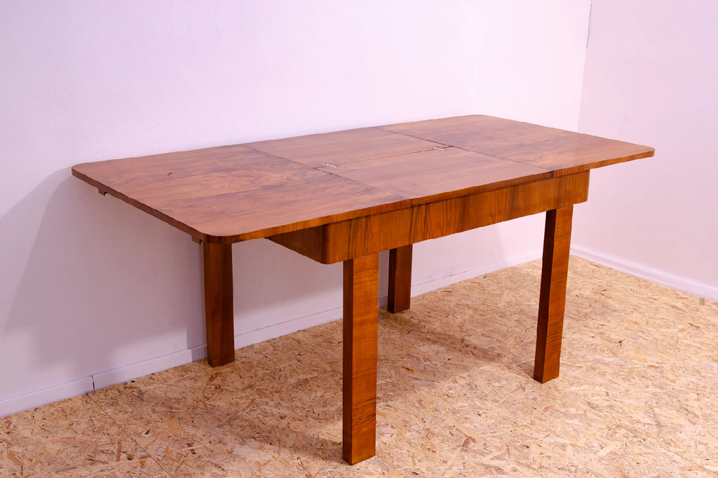 Walnut adjustable dining table, 1930s, Czechoslovakia