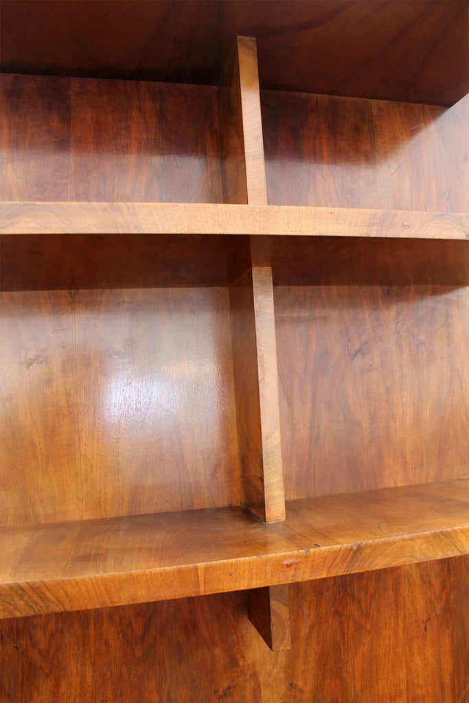 Midcentury Functionalist Wall shelf or bookcase in walnut, 1930s, Bohemia