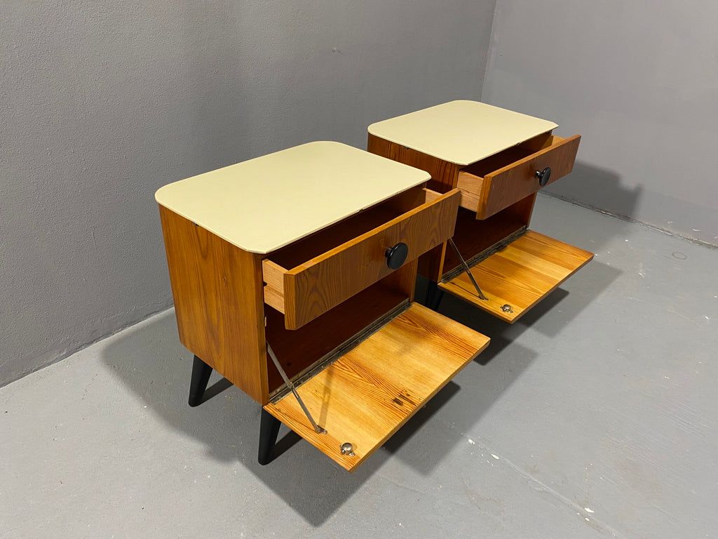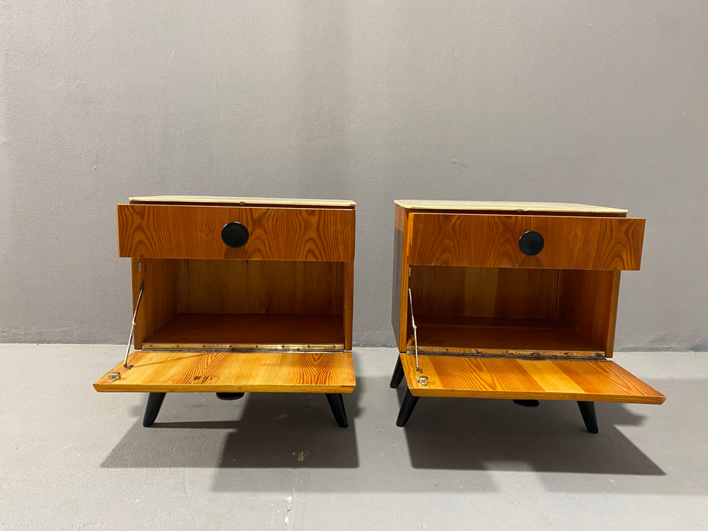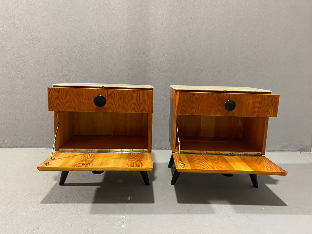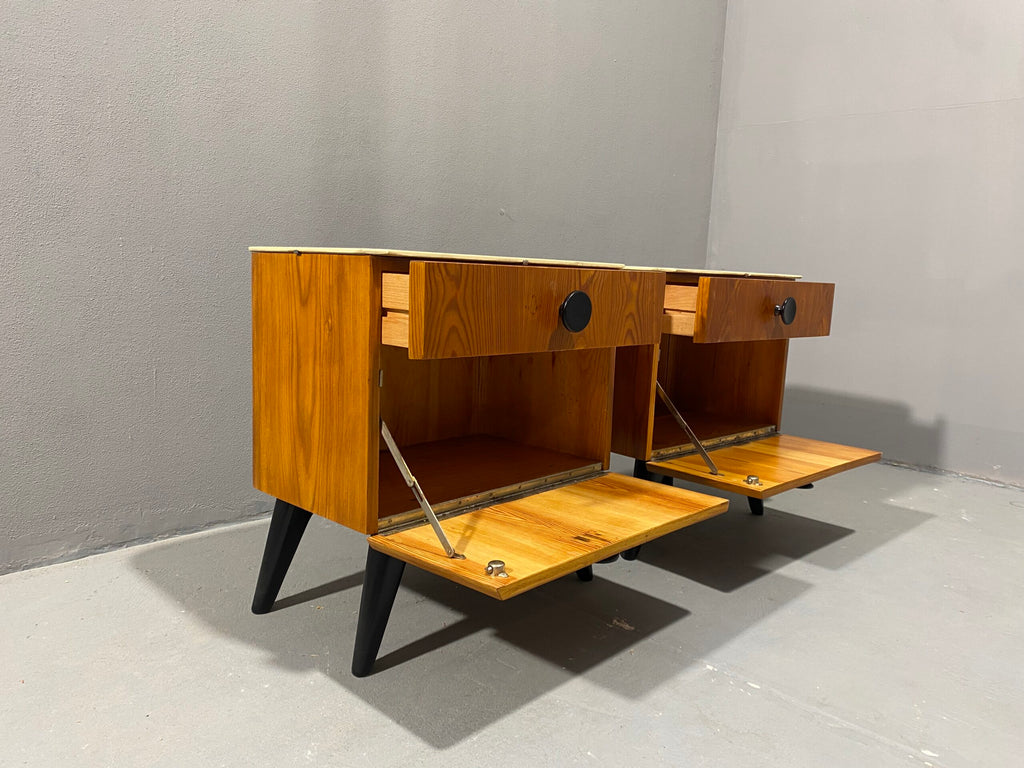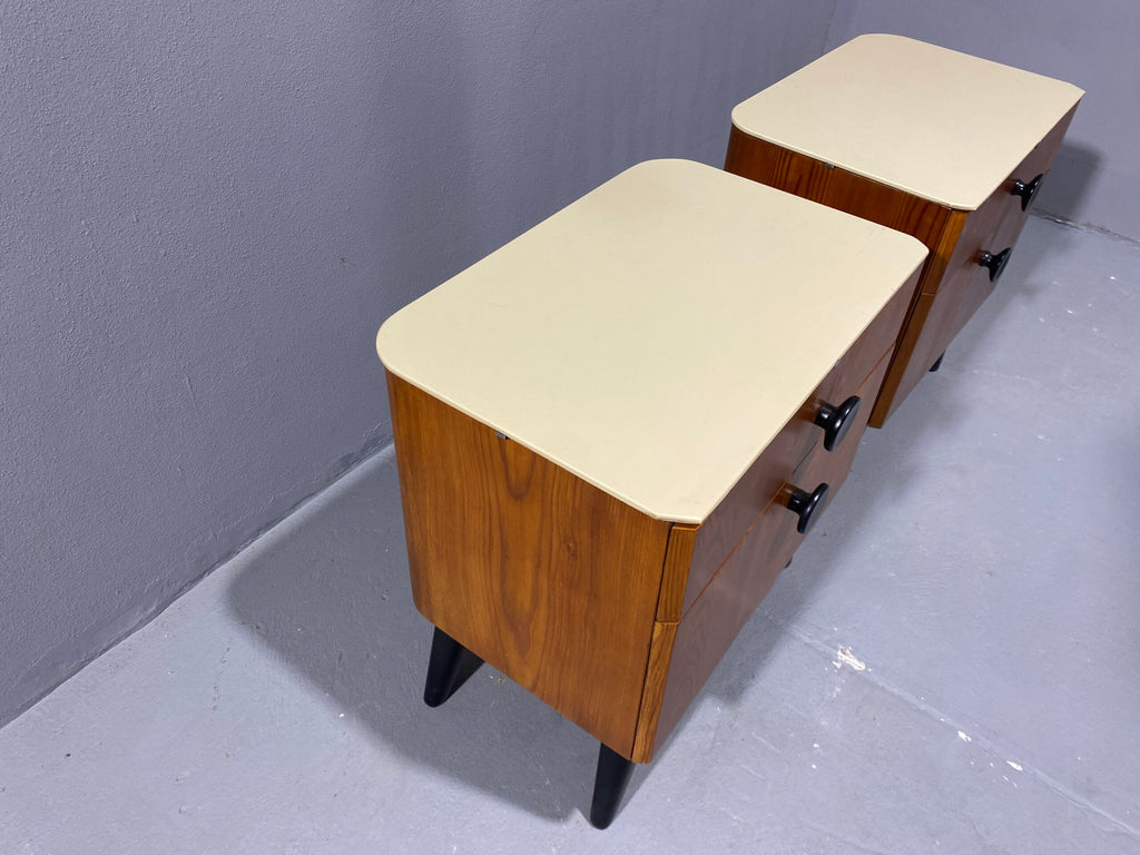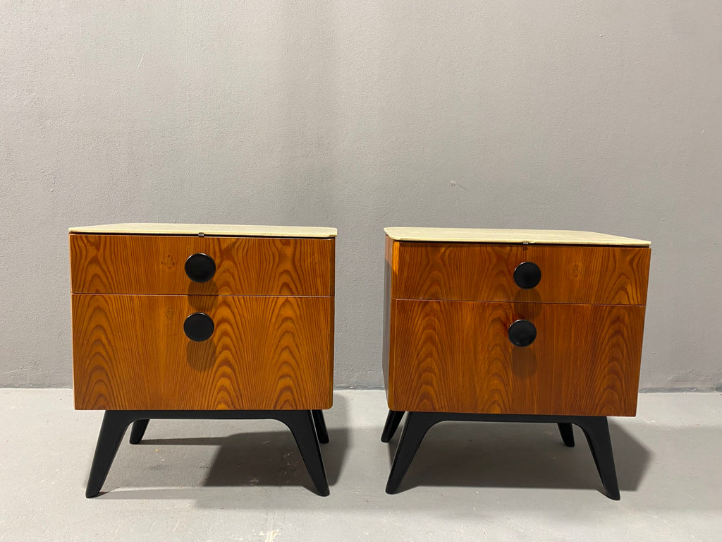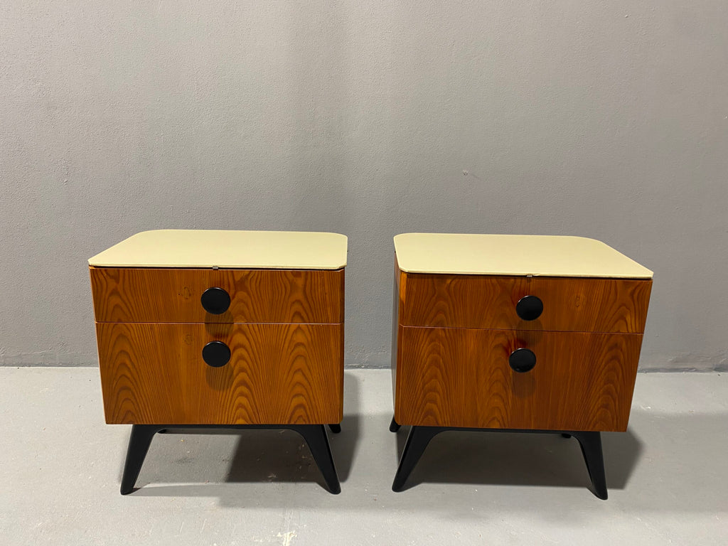 Fully restored night stands by Jindřich Halabala for UP Závody, 1950-s, Czechoslovakia