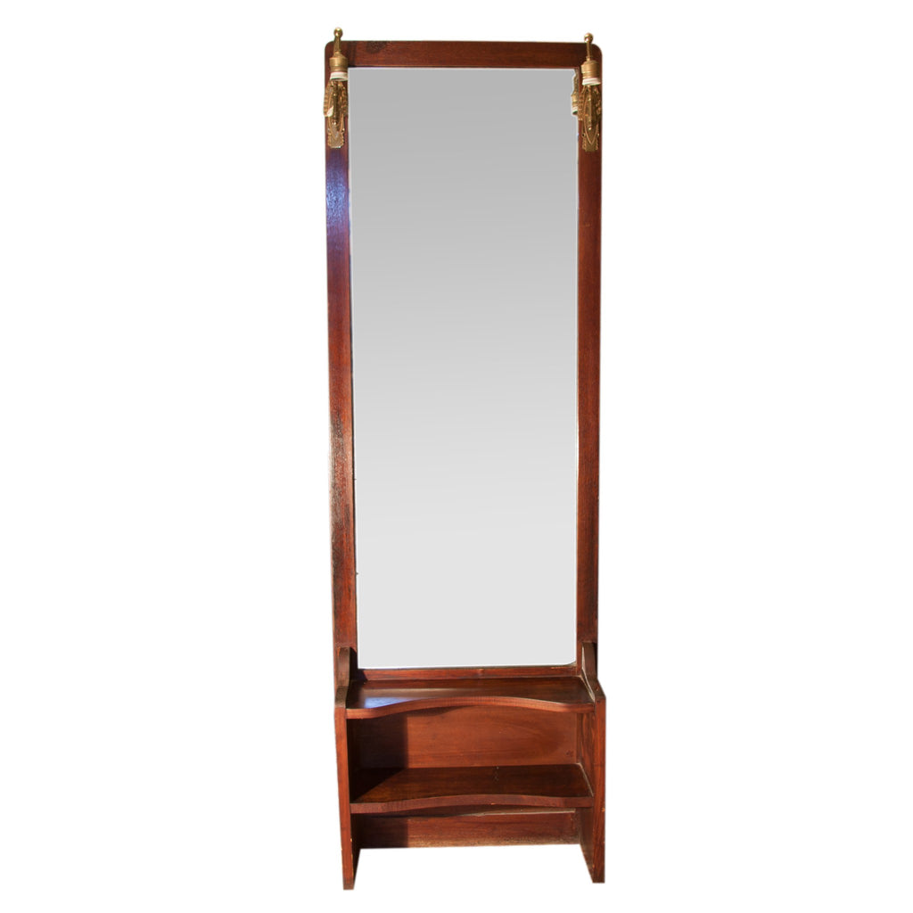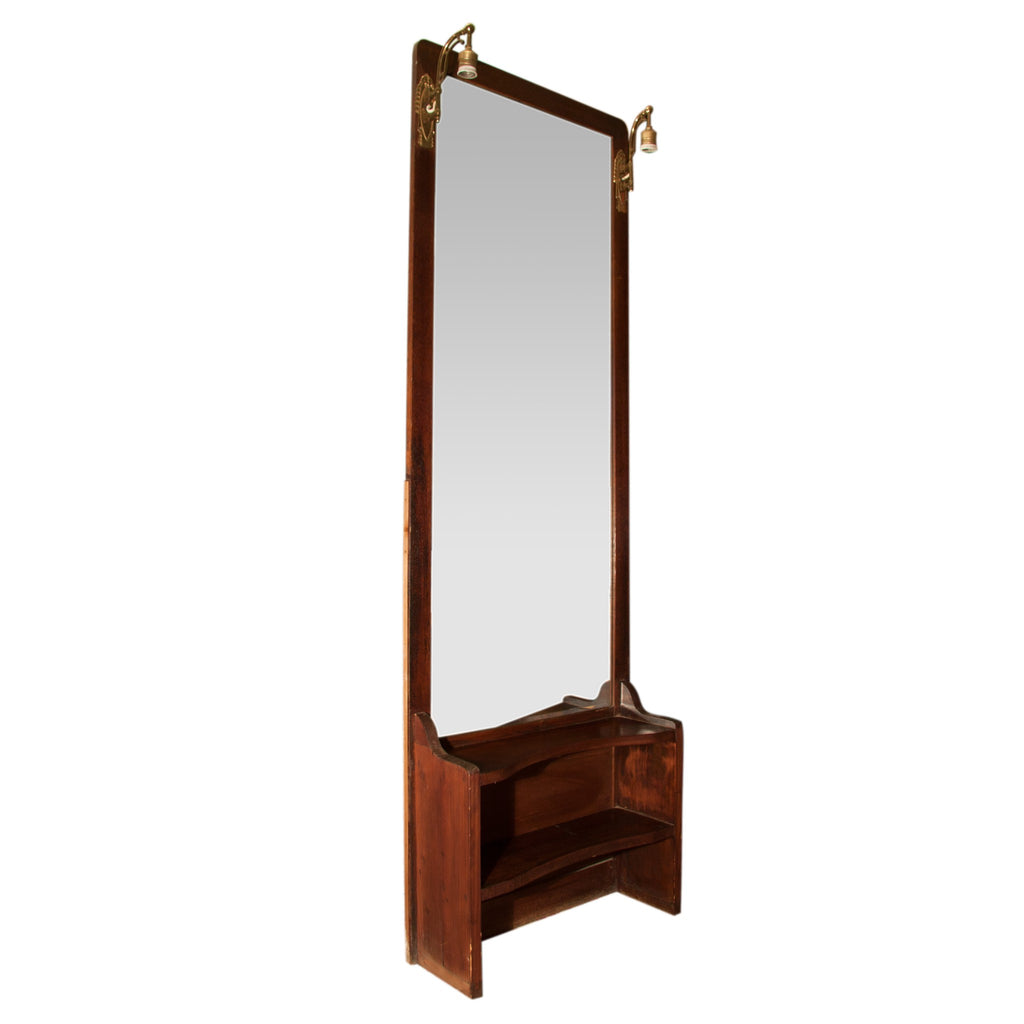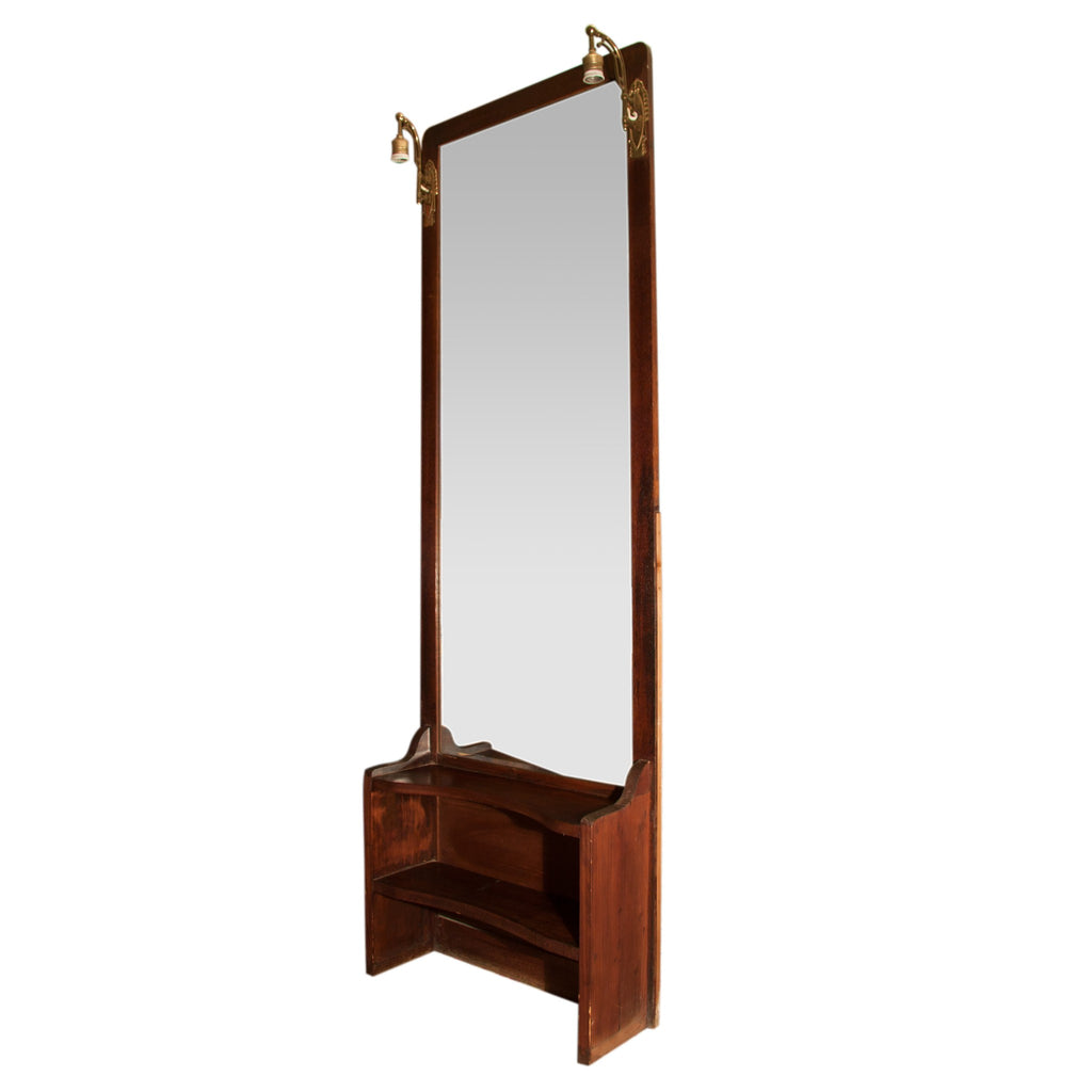 Floor mirror with hanging lamps from the period of the Vienna Secession. Circa 1910. Mahogany. Very well preserved condition. Electrics are fully functional. Height 188 cm, width 61 cm.