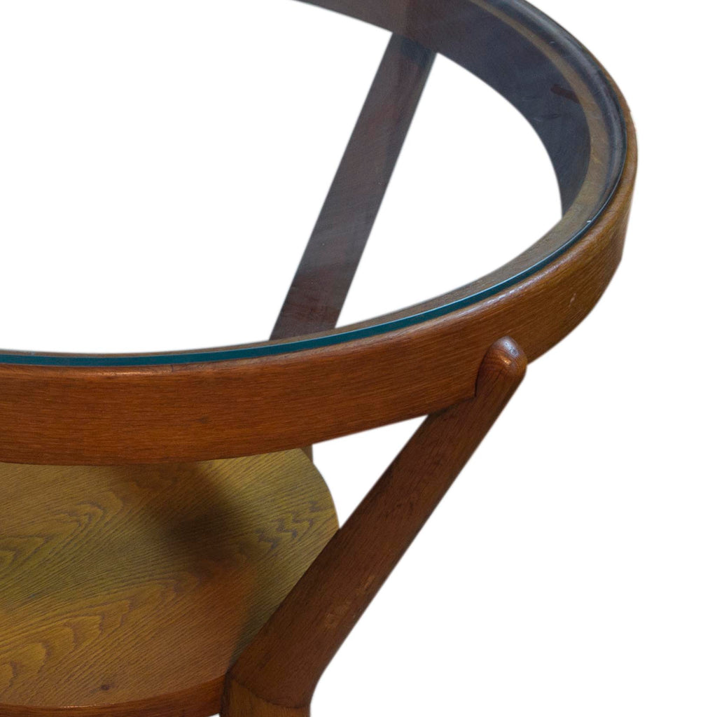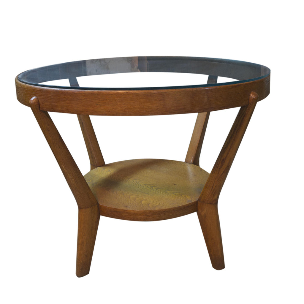 Glazed round table designed by famous architects Kropacek & Kozelka in 1944. Czechoslovakia. It can use as a coffee or side table. Good condition. Solid oak. Light colour. In excellent Vintage condition.
