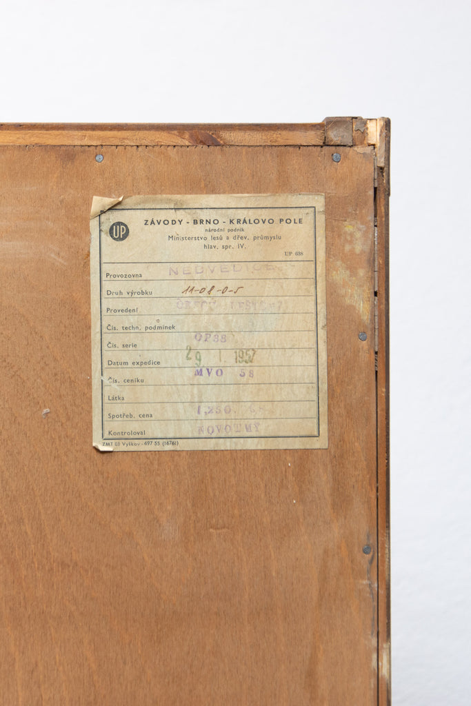 This midcentury wardrobe was part of a complete bedroom suite by UP Závody. It was made in the former Czechoslovakia in 1952.