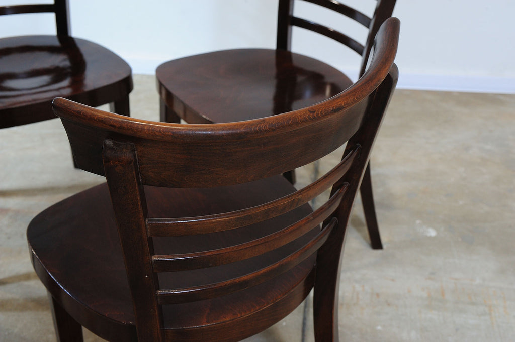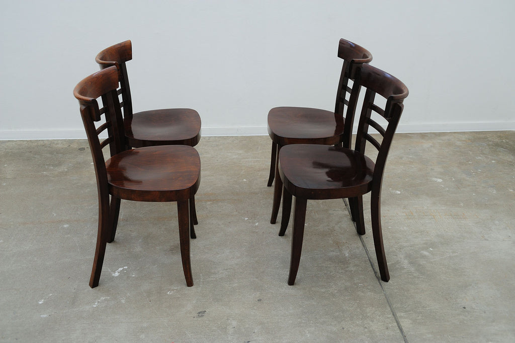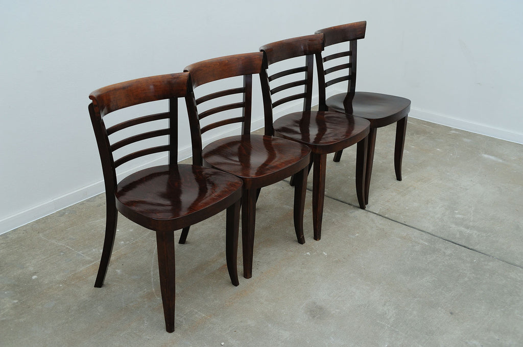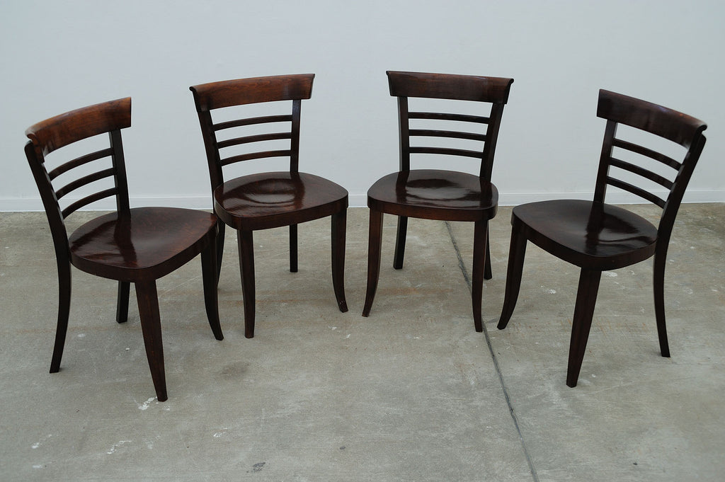 Mid century Thonet walnut dining chairs, Czechoslovakia, 1950s, set of 4