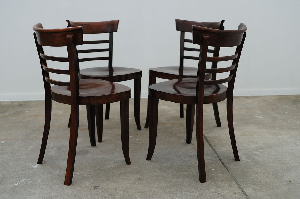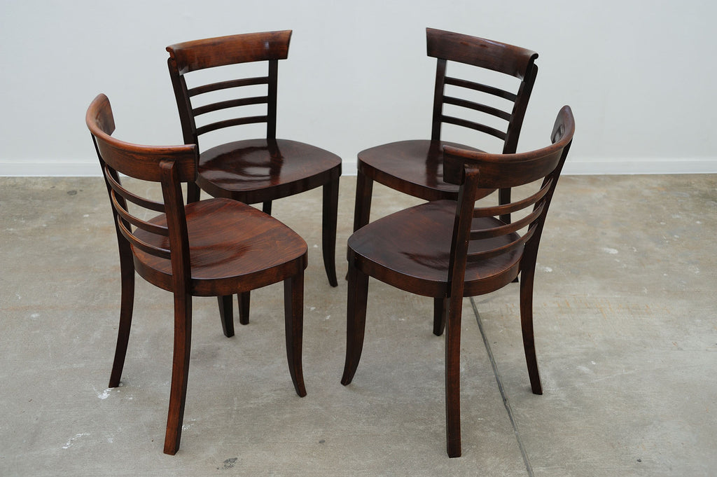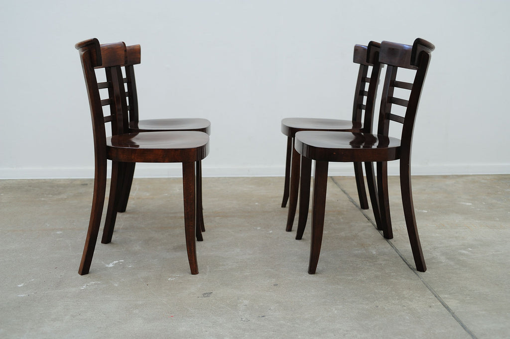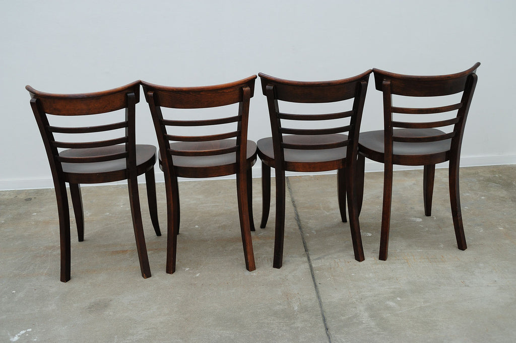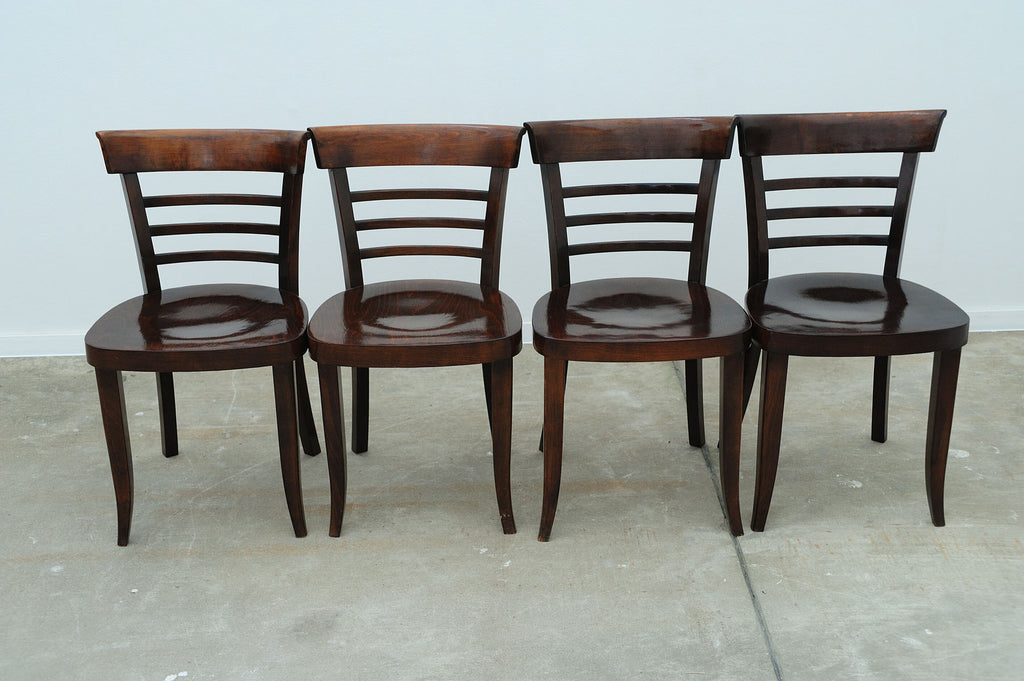 Mid century Thonet walnut dining chairs, Czechoslovakia, 1950s, set of 4