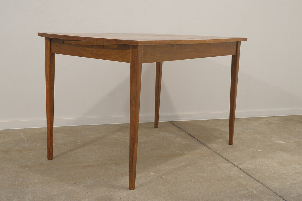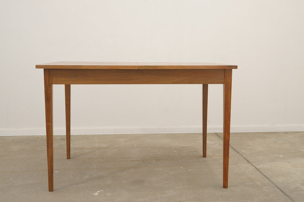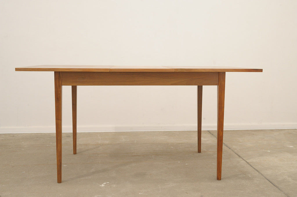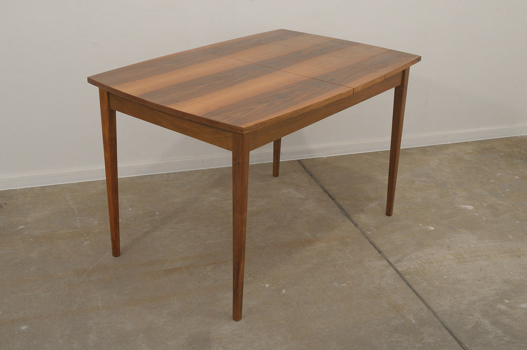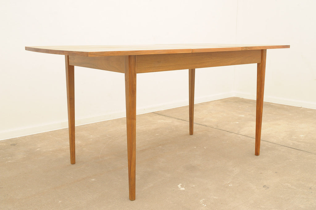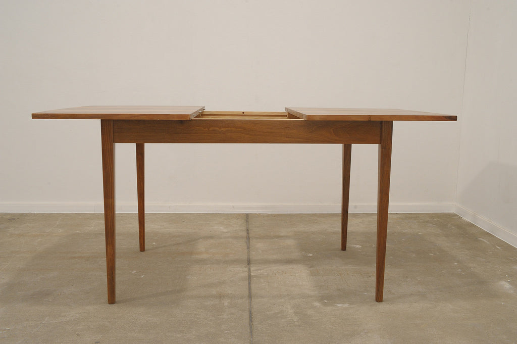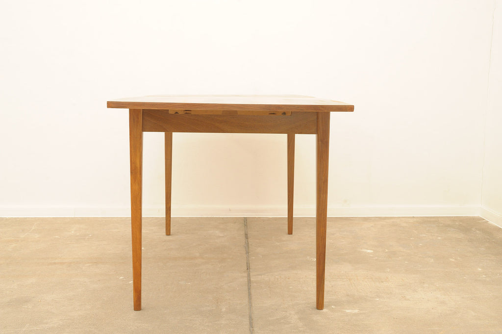 This adjustable dining table was made in the former Czechoslovakia in the 1970´s. It ´s made of beech wood and walnut wood. The lenght is adjustable from 120 cm to 162 cm. The table is in excellent condition, fully renovated.