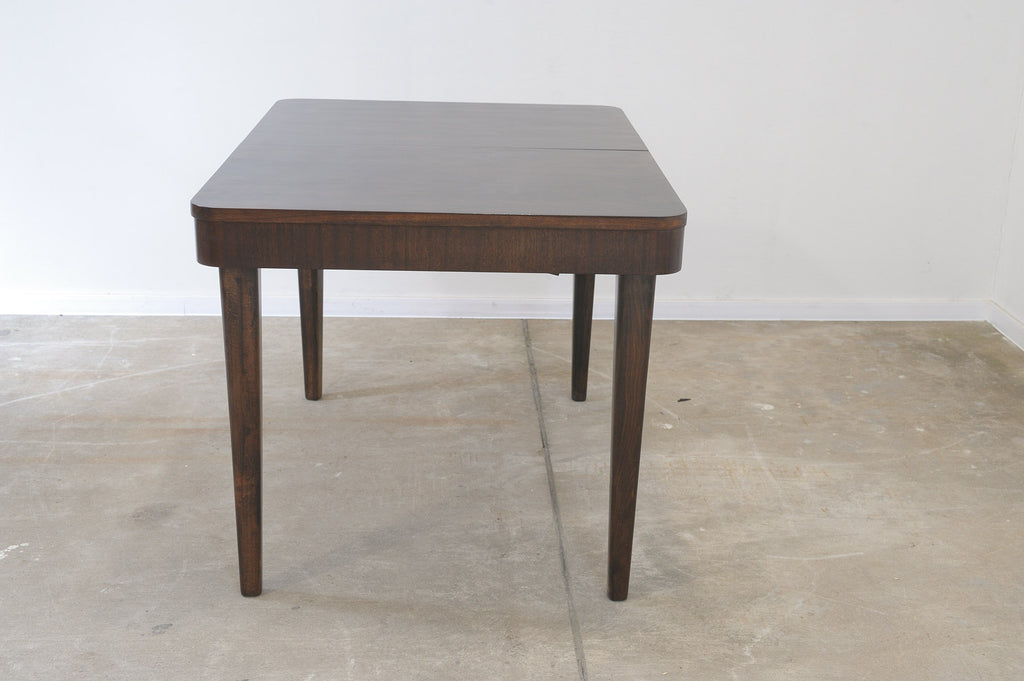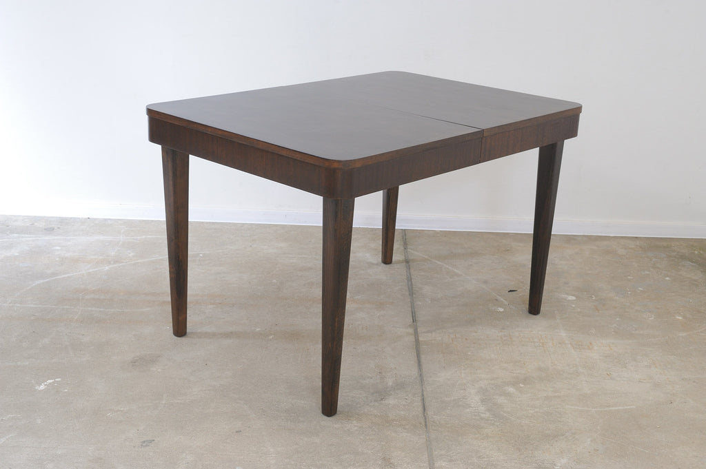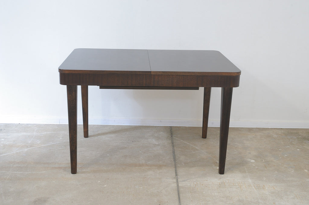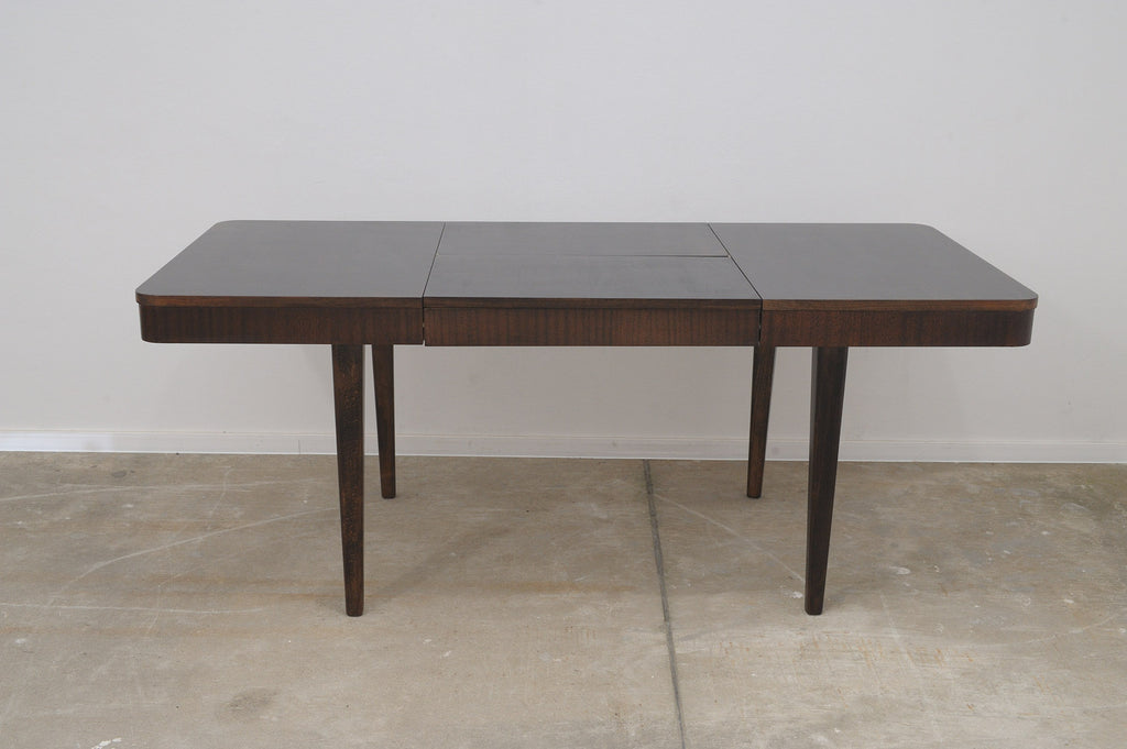 This adjustable dining table was designed and made by Setona company in the 1950s in the former Czechoslovakia. It´s made of walnut. The table is in excellent condition, fully renovated.
