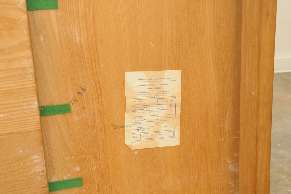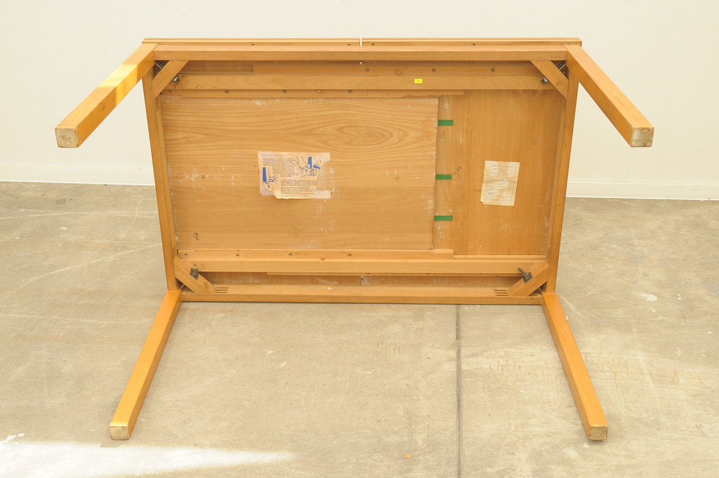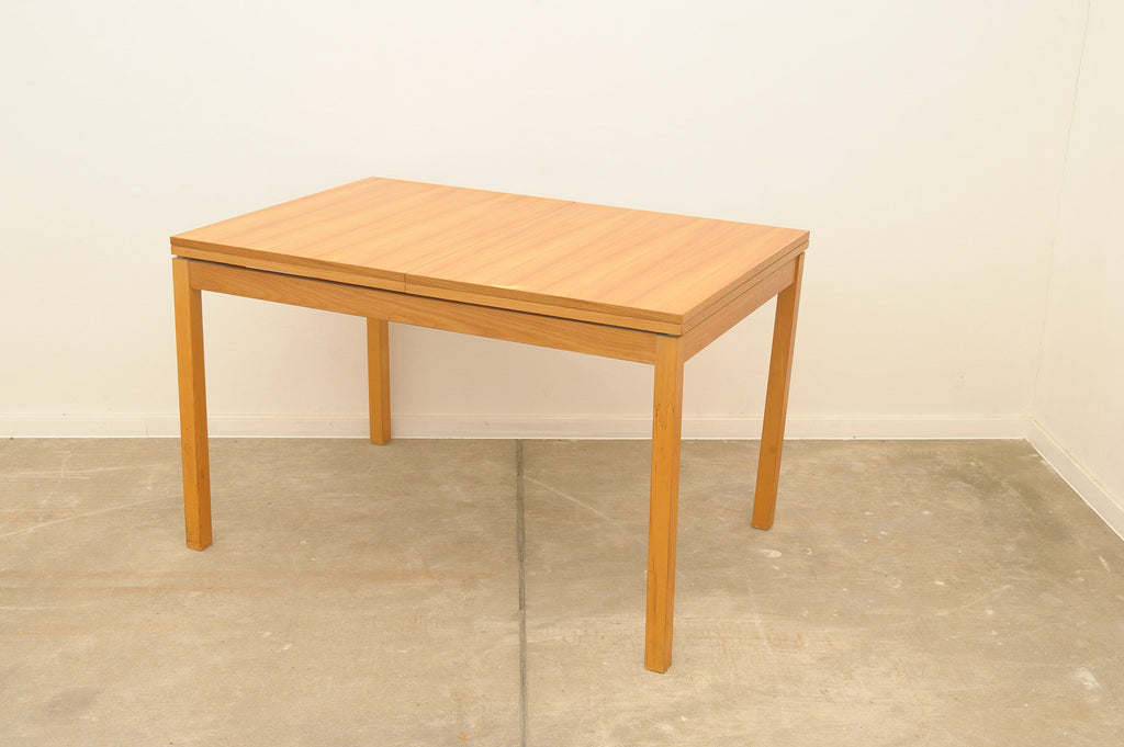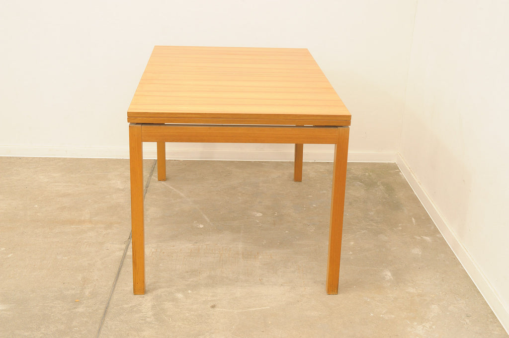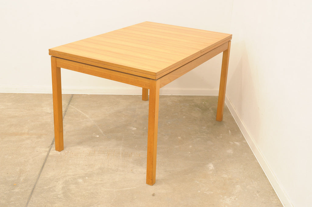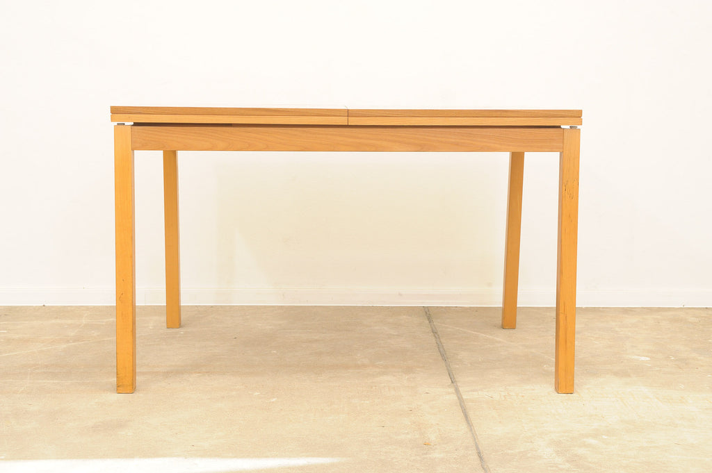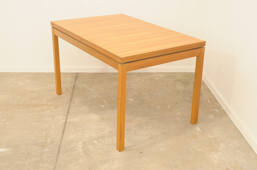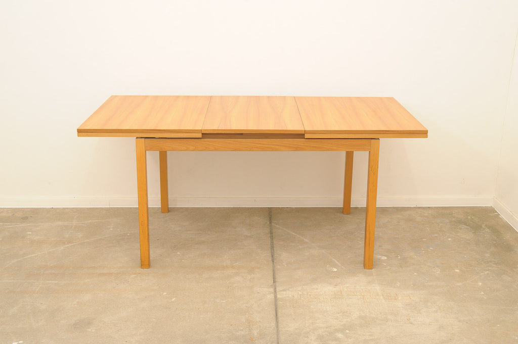 This adjustable dining table was made by JITONA company in the former Czechoslovakia in the 1970´s. It ´s made of elm wood. The lenght is adjustable from 120 cm to 170 cm. The table is in very good condition, showing slight signs of age and using.