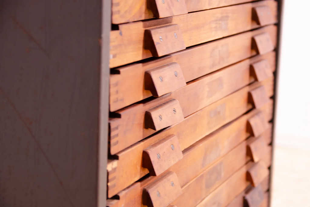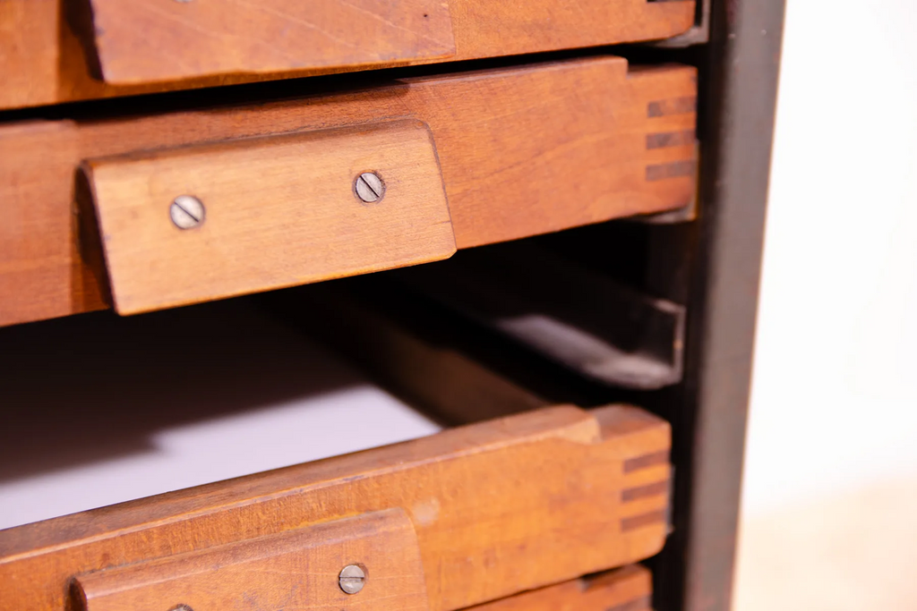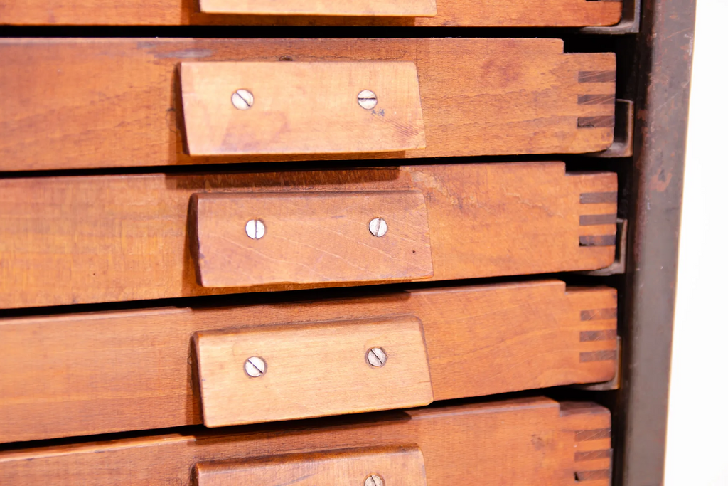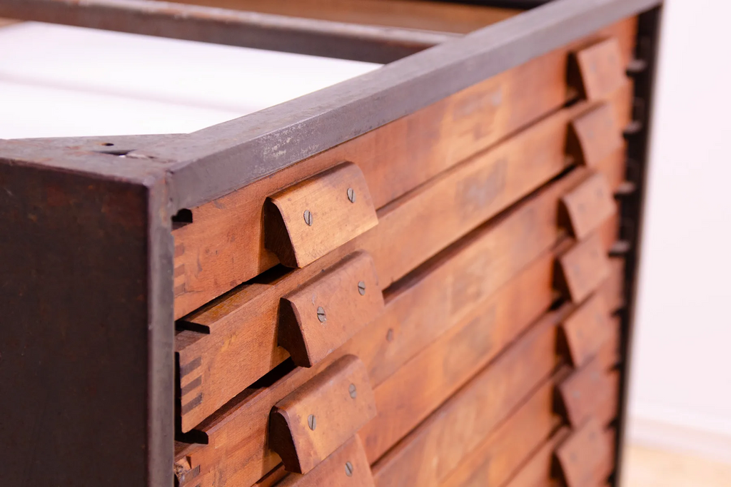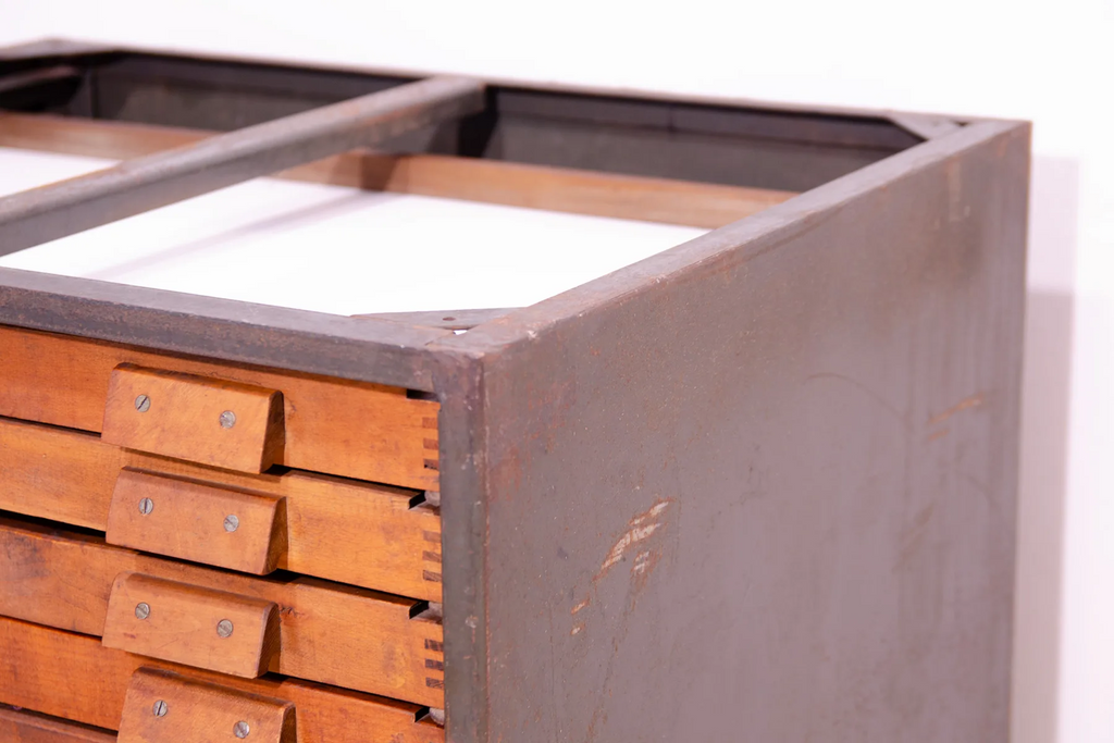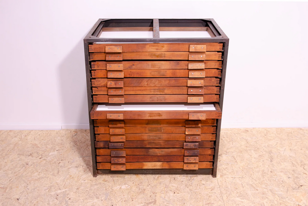 This chest can be used perfectly as a work cabinet for example for an architect, for a the drawings, or even for craftsmen.