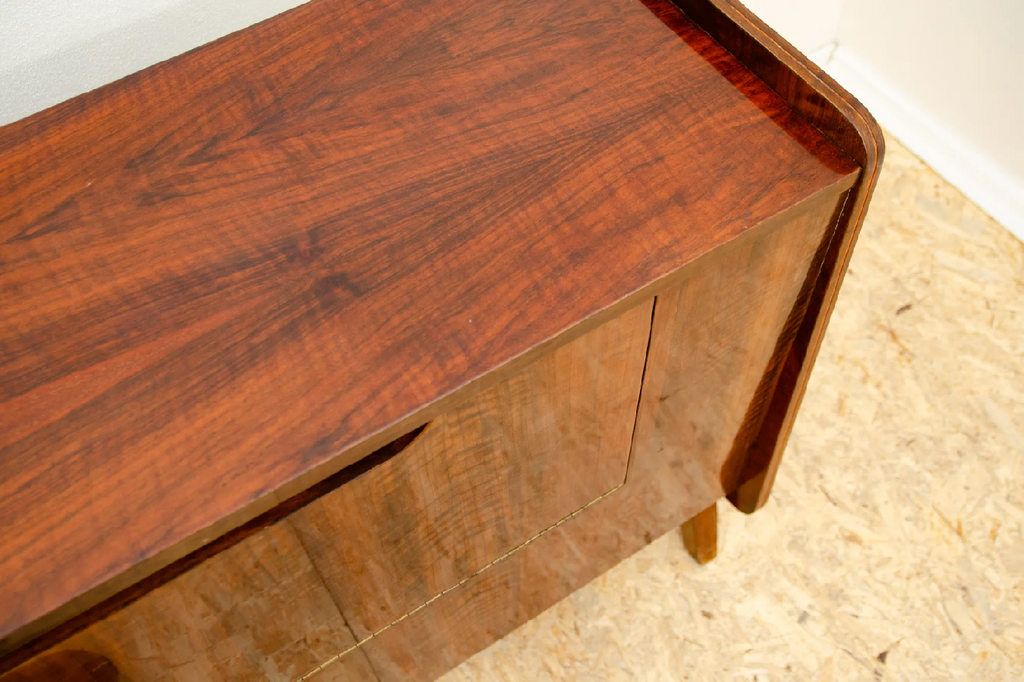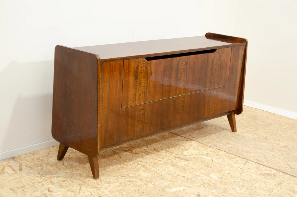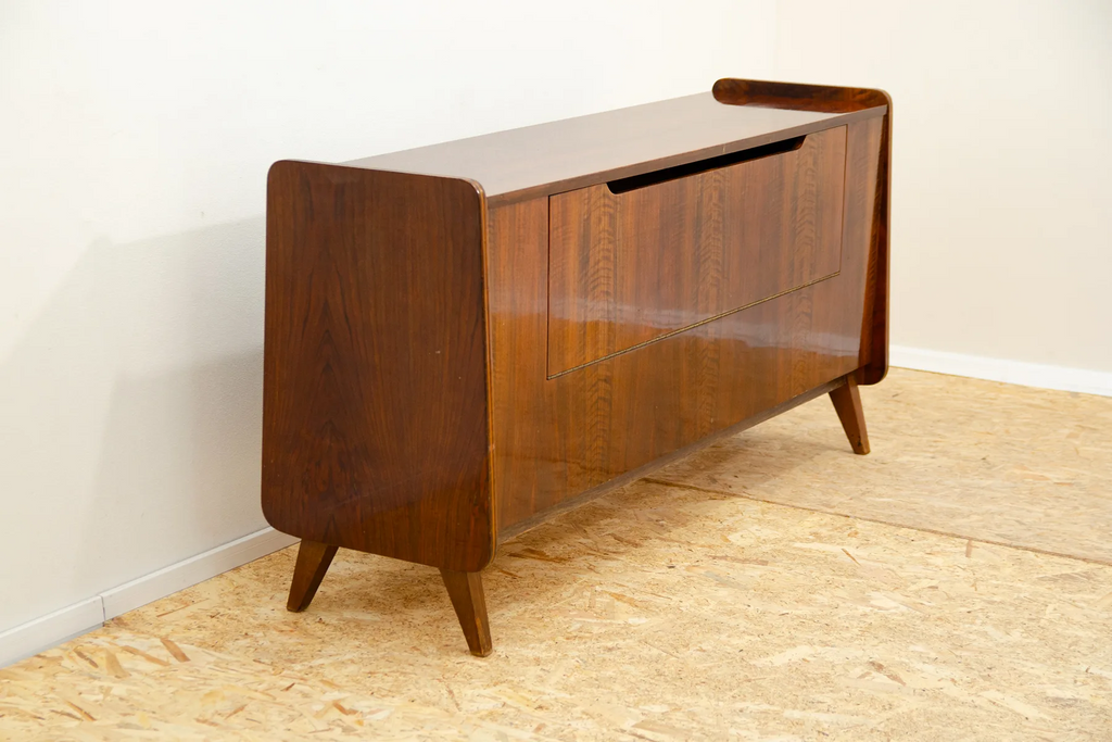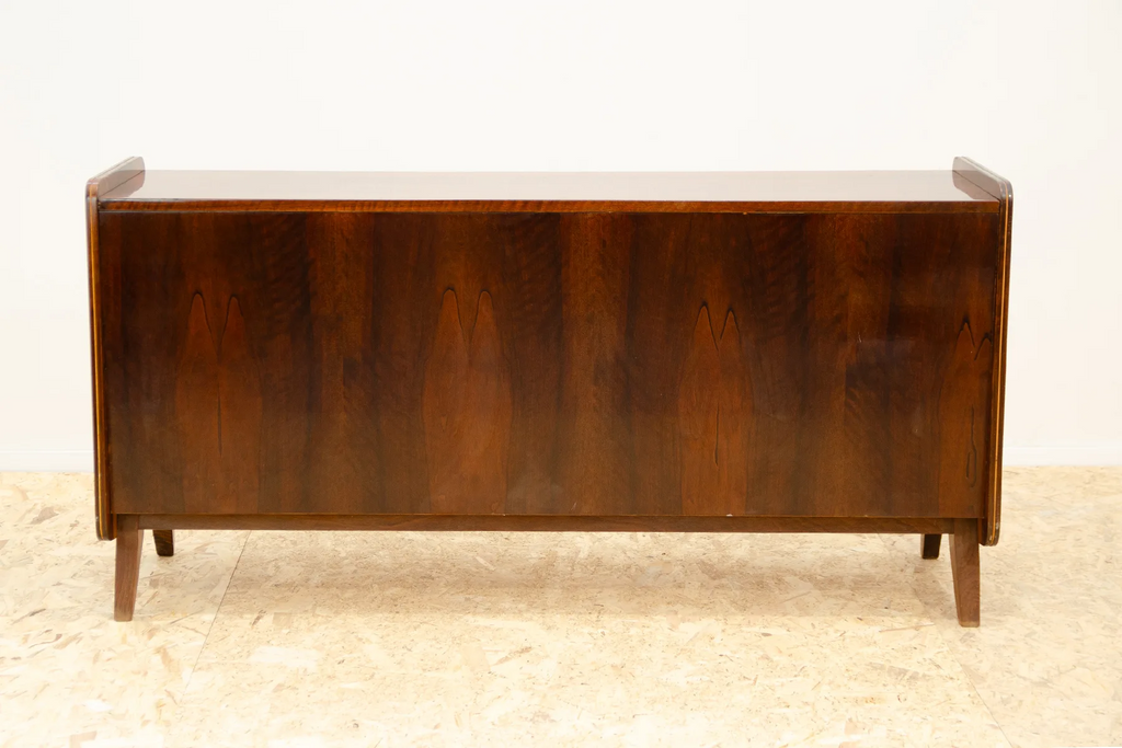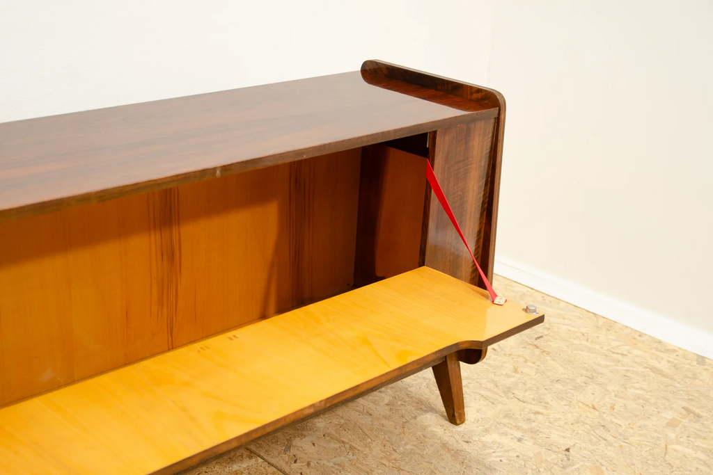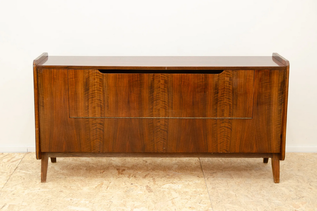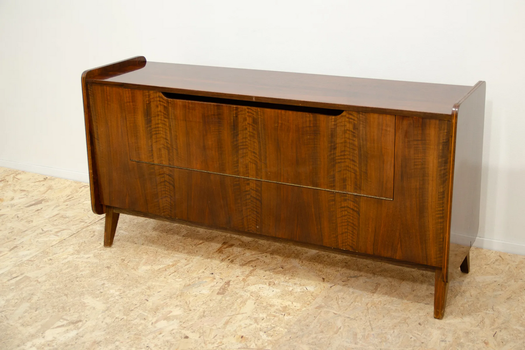 This mid century dresser was made in the former Czechoslovakia in the 1970´s. It was designed by Frantisek Jirák fo Tatra nábytok company. It has beautiful walnut veneer. It can also be used as a TV table or bar.