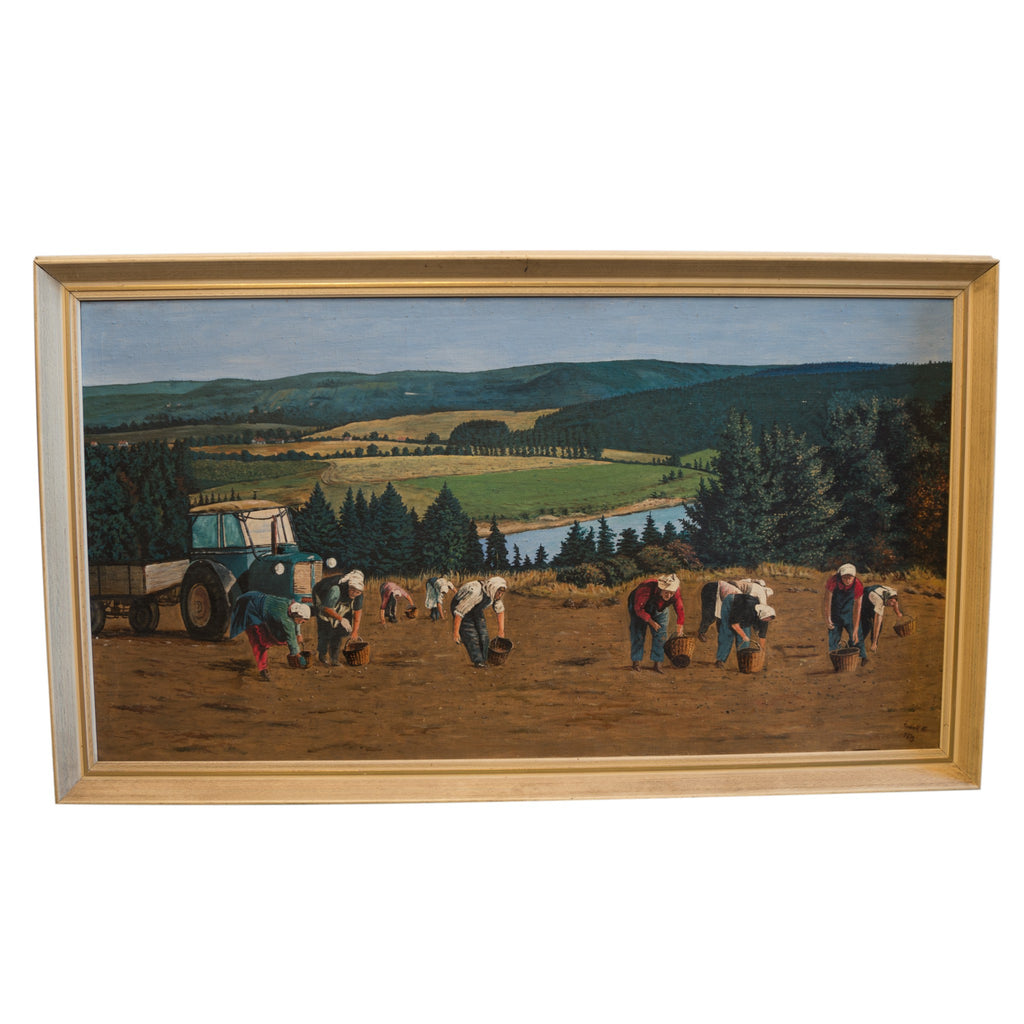 Large oil on canvas, harvest in the field 1973, Czechoslovakia