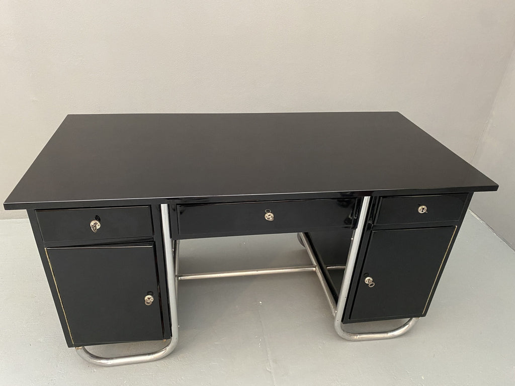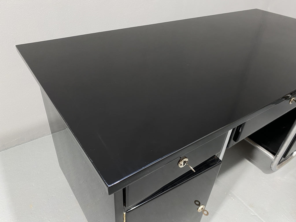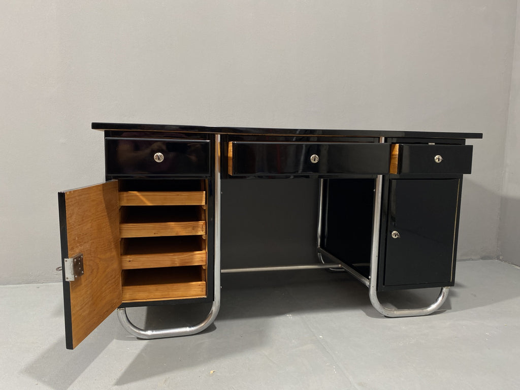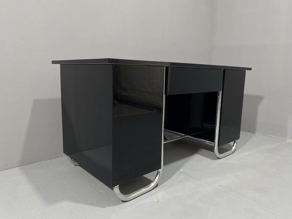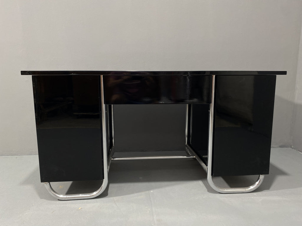Large Bauhaus Partners Desk, piano lacquer, chrome, Czechoslovakia, 1930´s