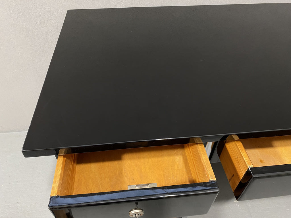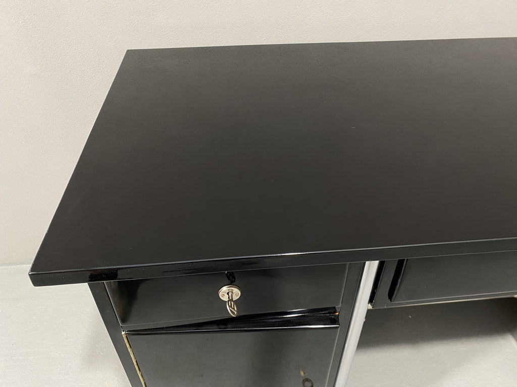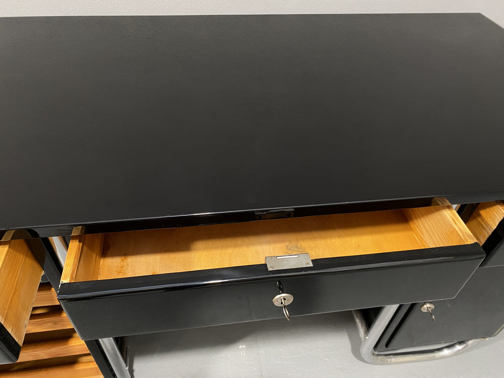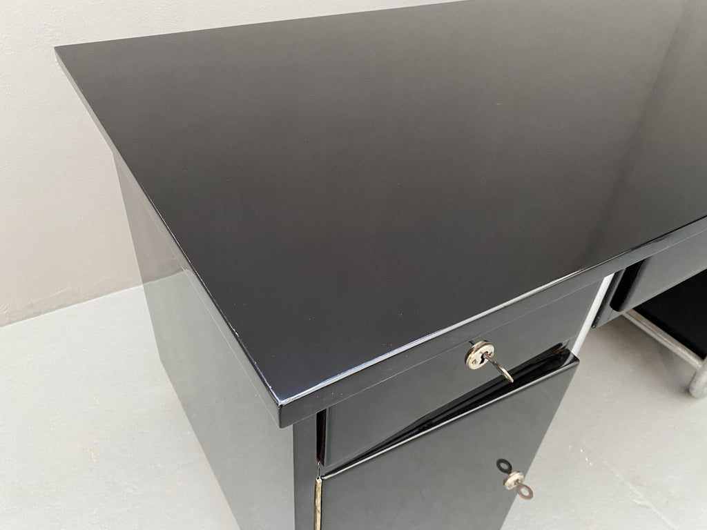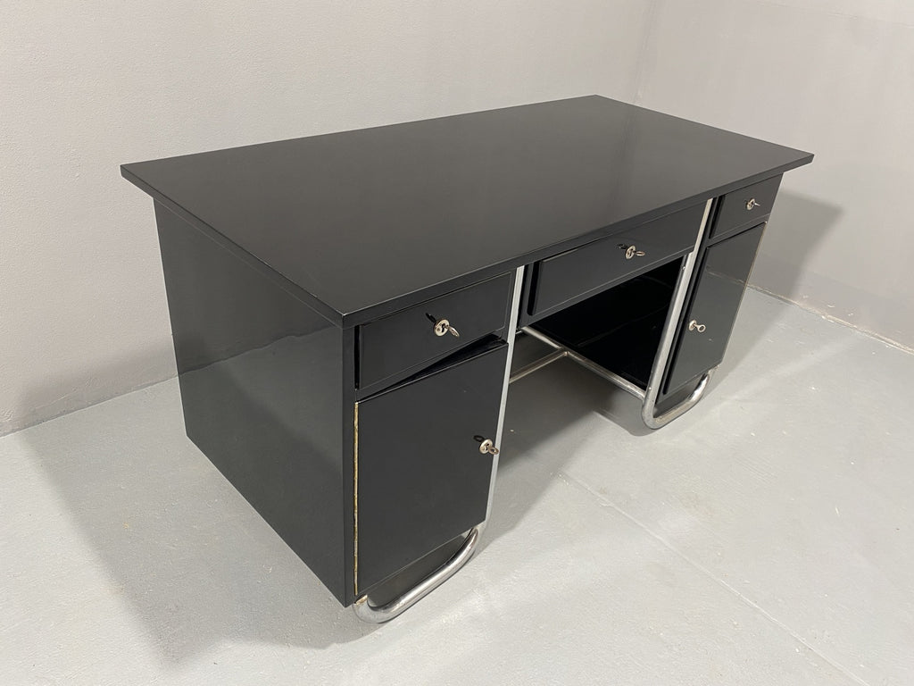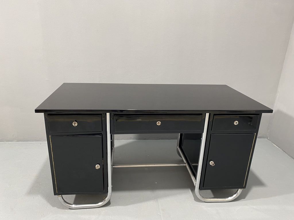 Large Bauhaus Partners Desk, piano lacquer, chrome, Czechoslovakia, 1930´s