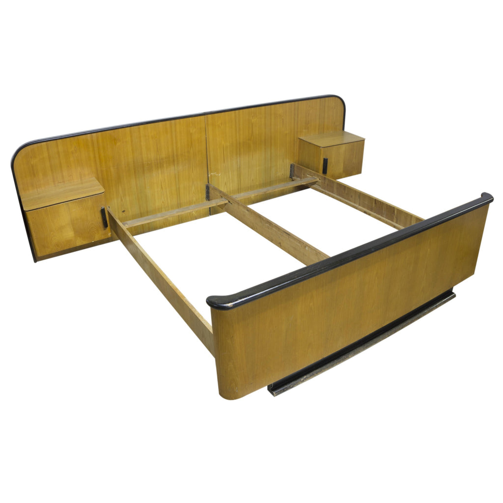 Jindrich Halabala, Art Deco Bed with two night stands, Mid-Century