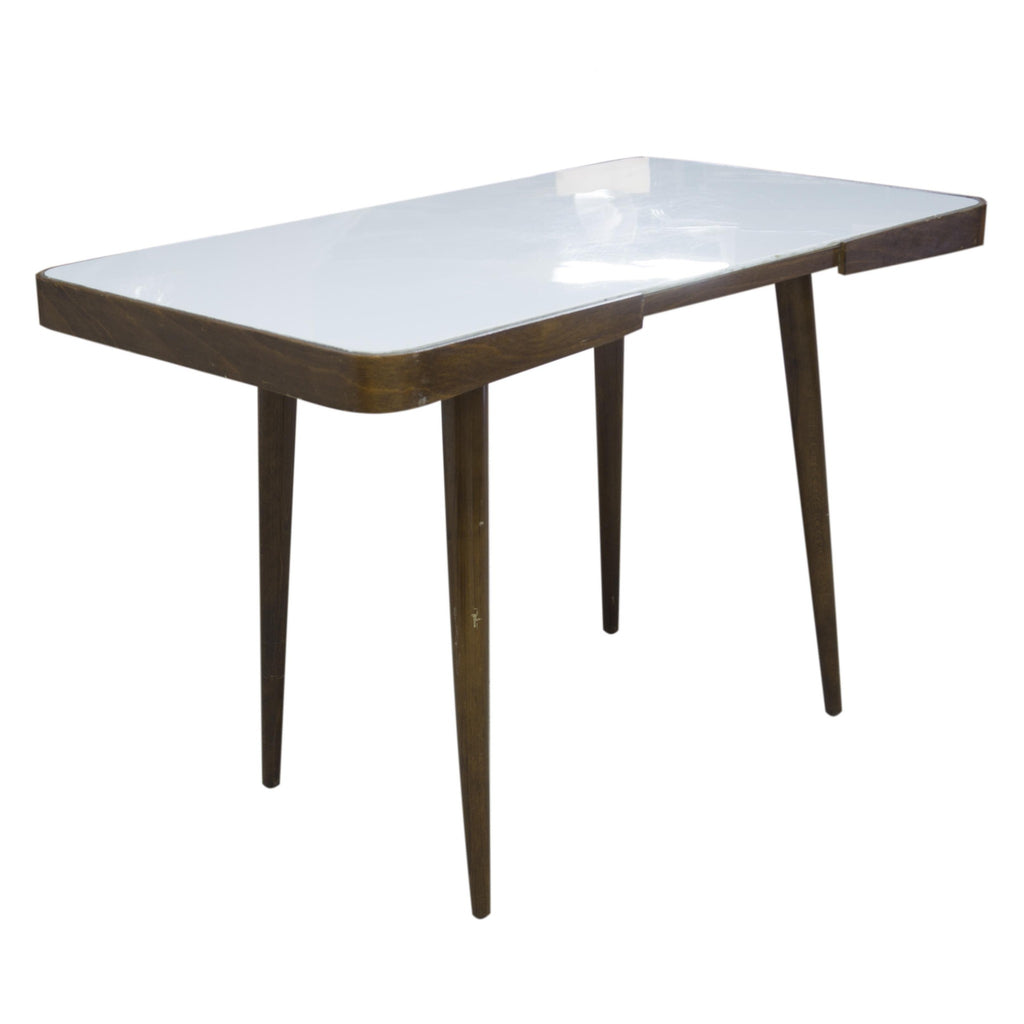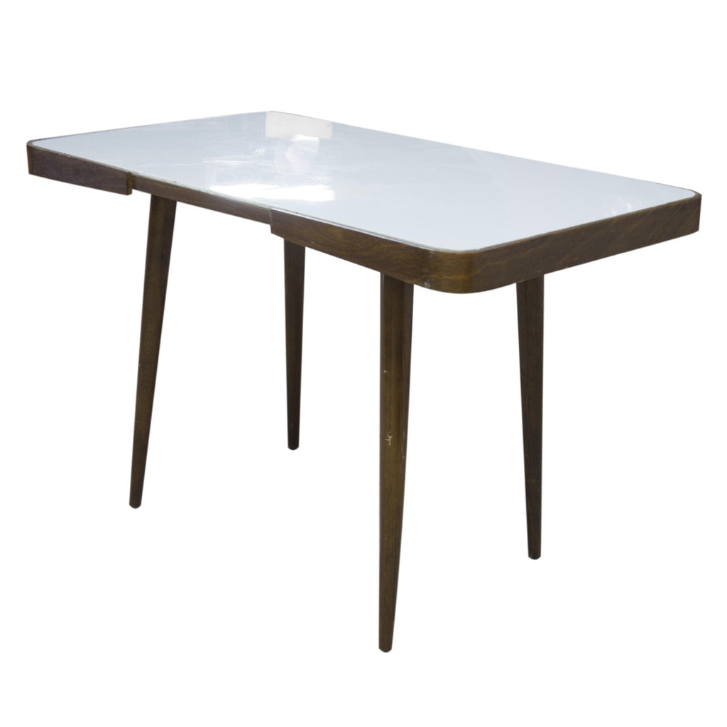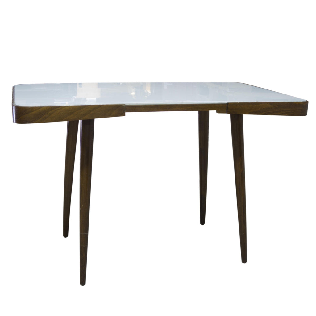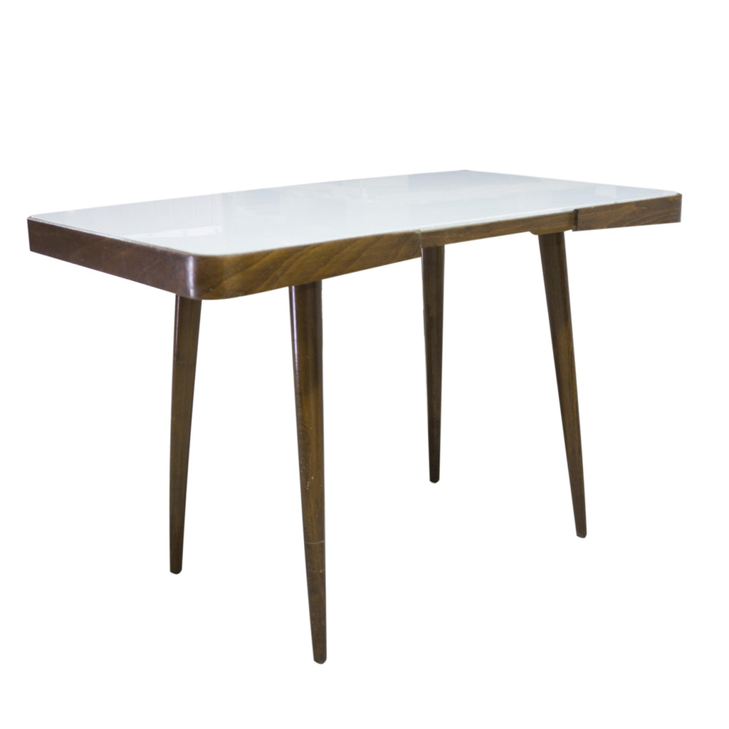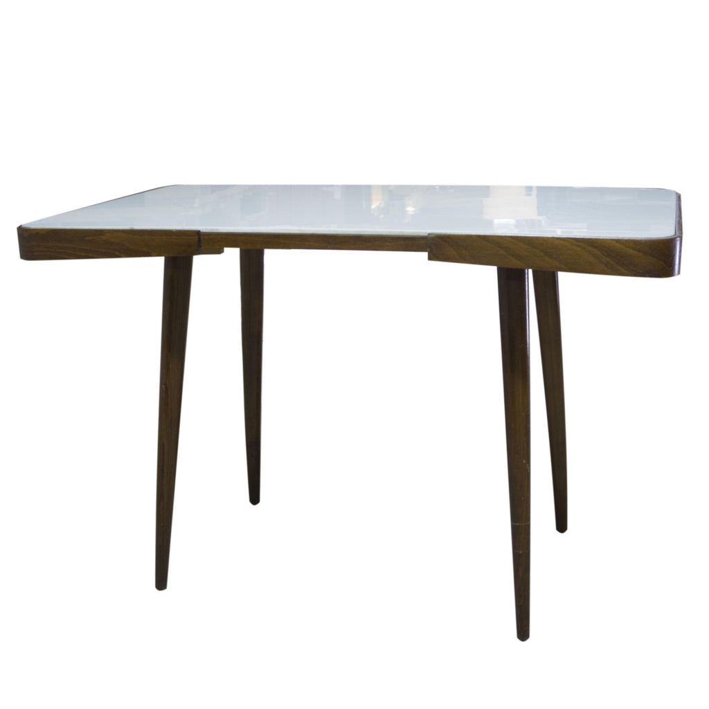 Luxury coffee table, 1960´s. Associated with world-renowned EXPO 58 exhibition in Brussels. A design by uknown author. Beechwood. White glass tabletop. In Very good condition. Height: 61 cm lenght: 120 cm depth: 54 cm
