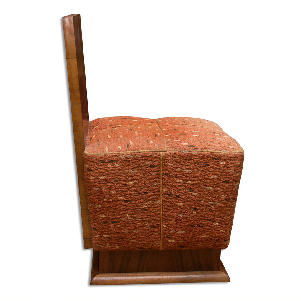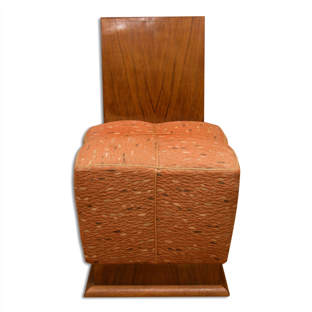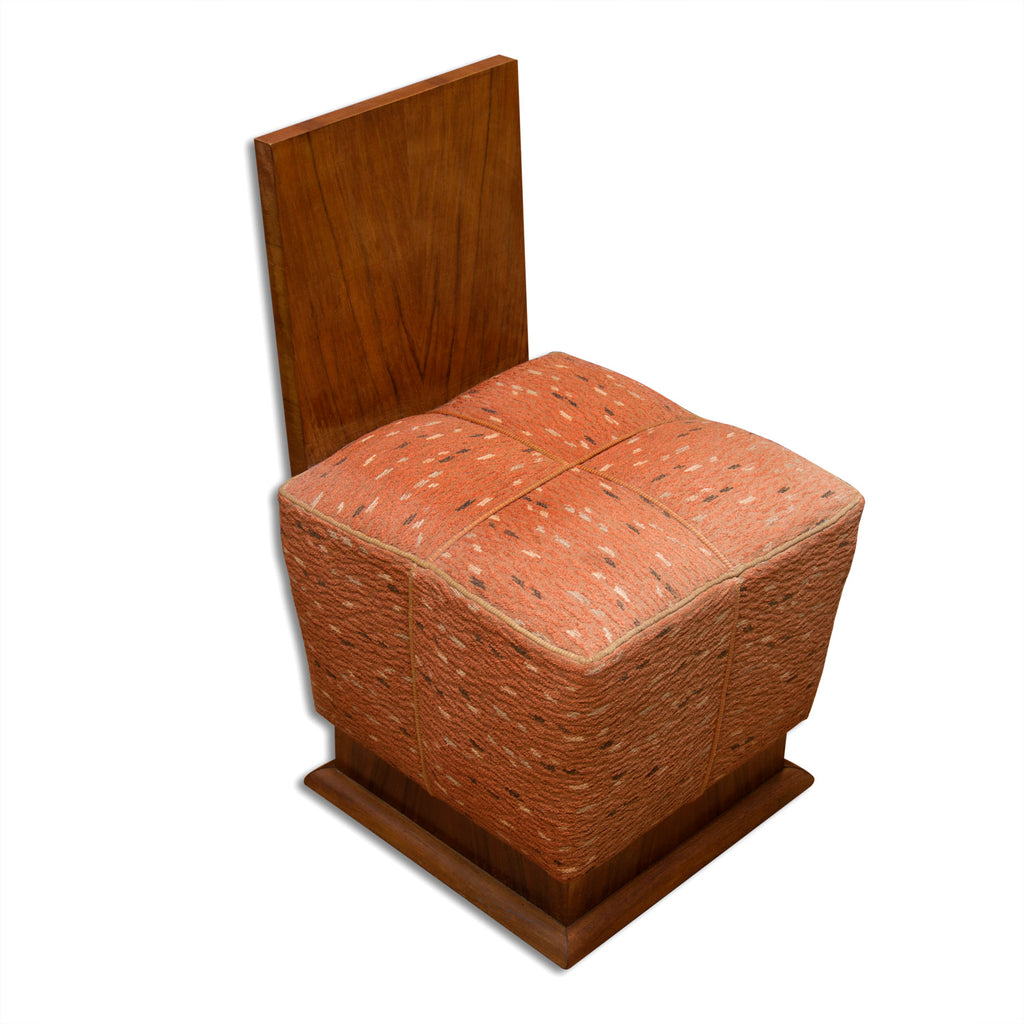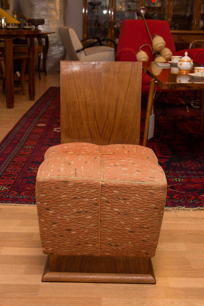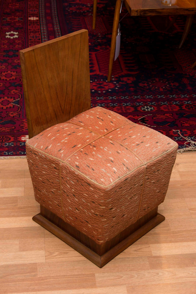 An outstanding ART DECO pouffe- footstool from the 1930´s. A very comfortable retro chic with a wooden (walnut) base and backrest. Also can be used as a chair. In very good original condition with slight signs of age and use.