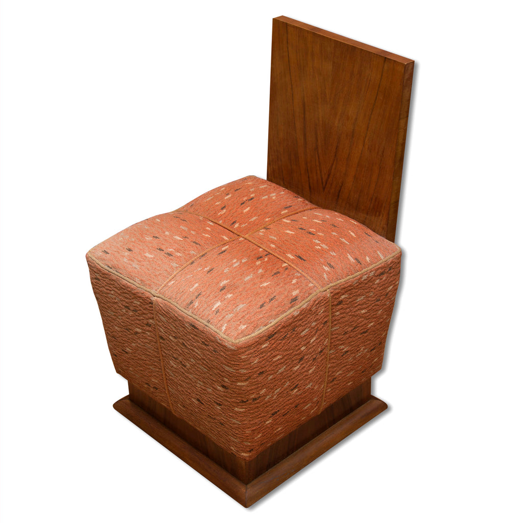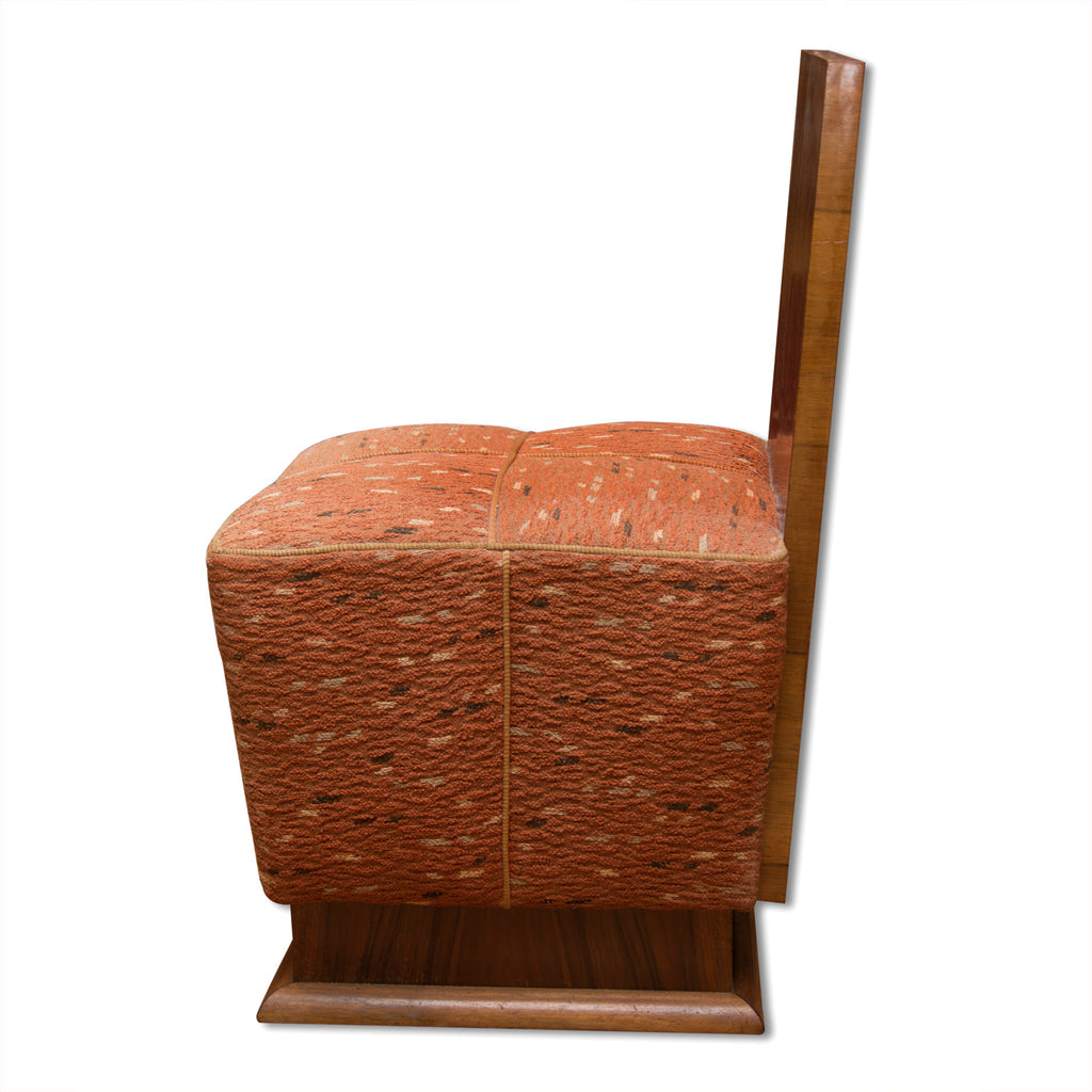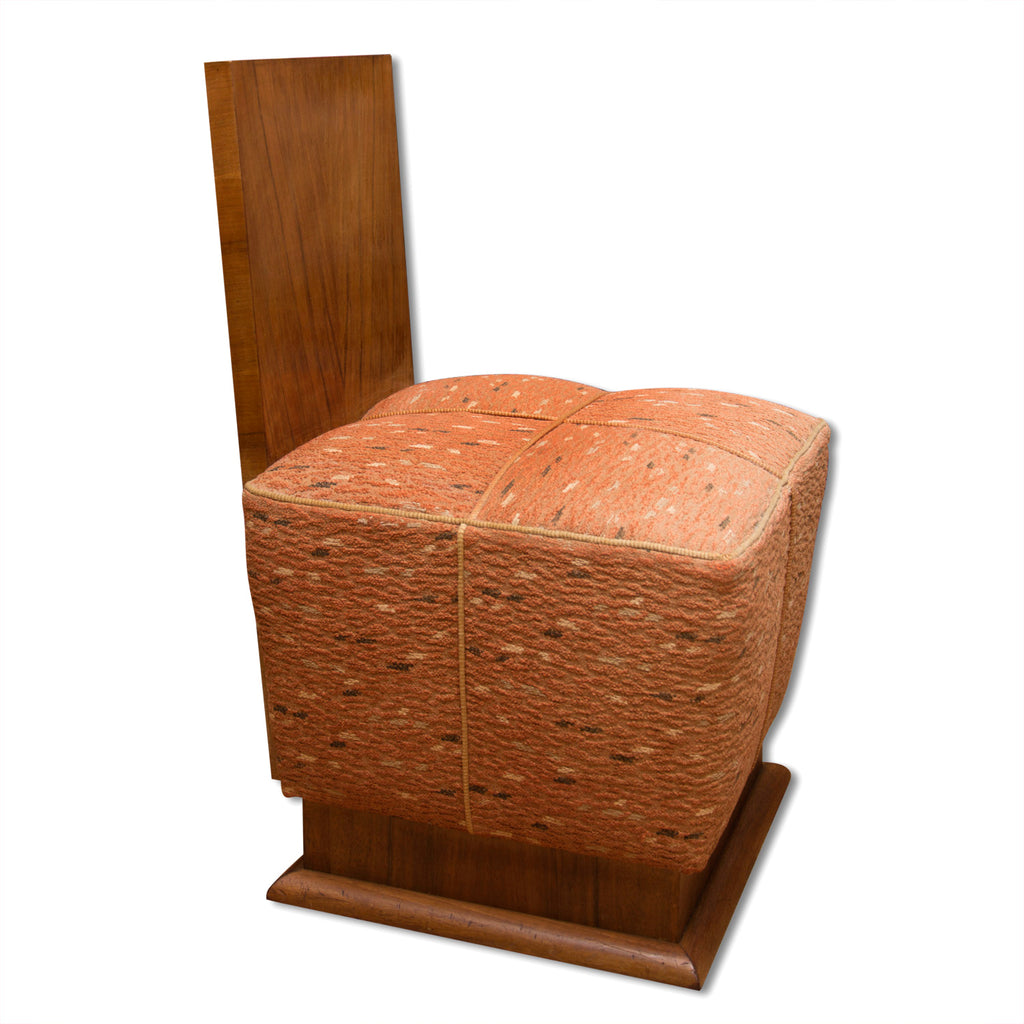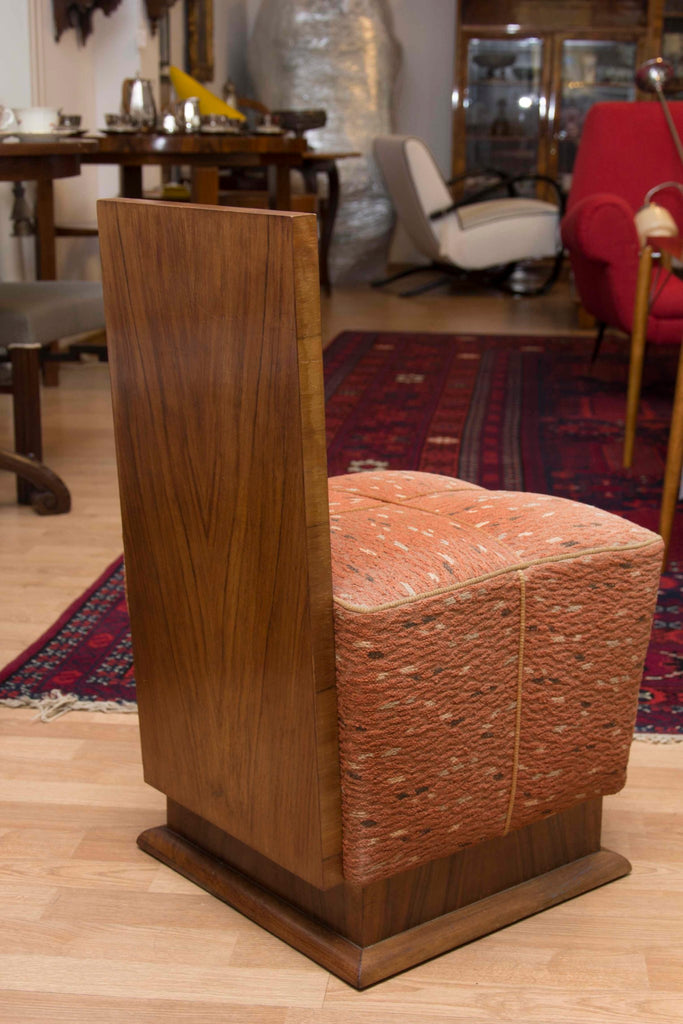 An outstanding ART DECO pouffe- footstool from the 1930´s. A very comfortable retro chic with a wooden (walnut) base and backrest. Also can be used as a chair. In very good original condition with slight signs of age and use.