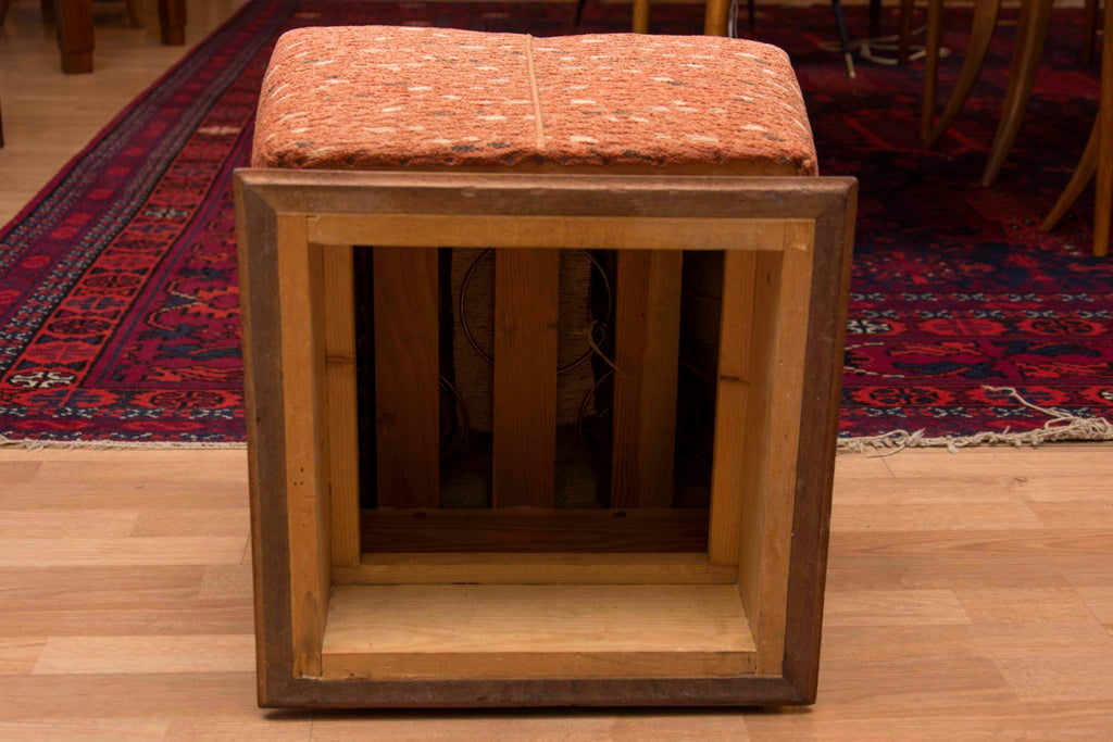 ART DECO pouffe - footstool with wooden base, 1930s, Bohemia
