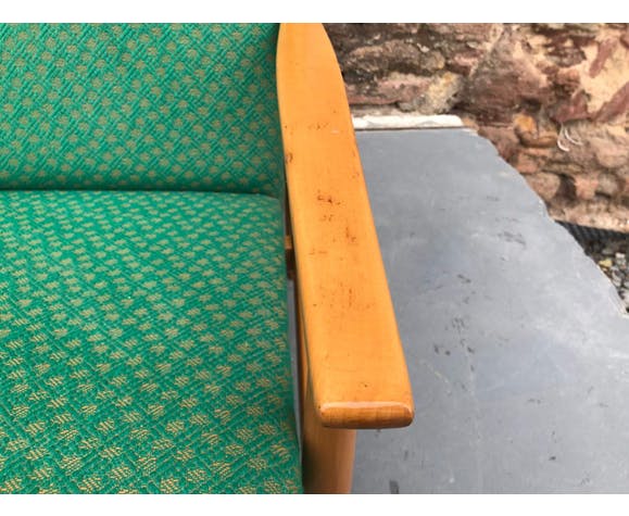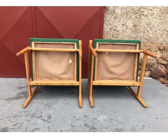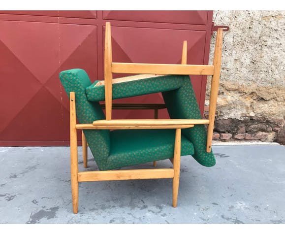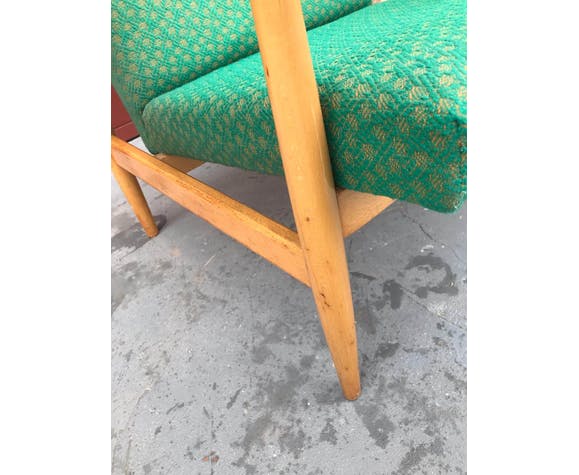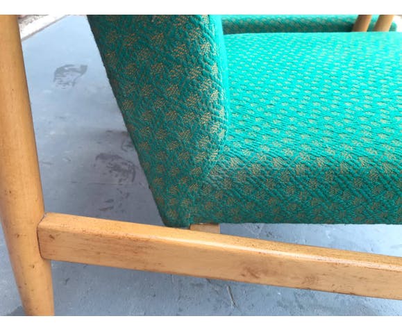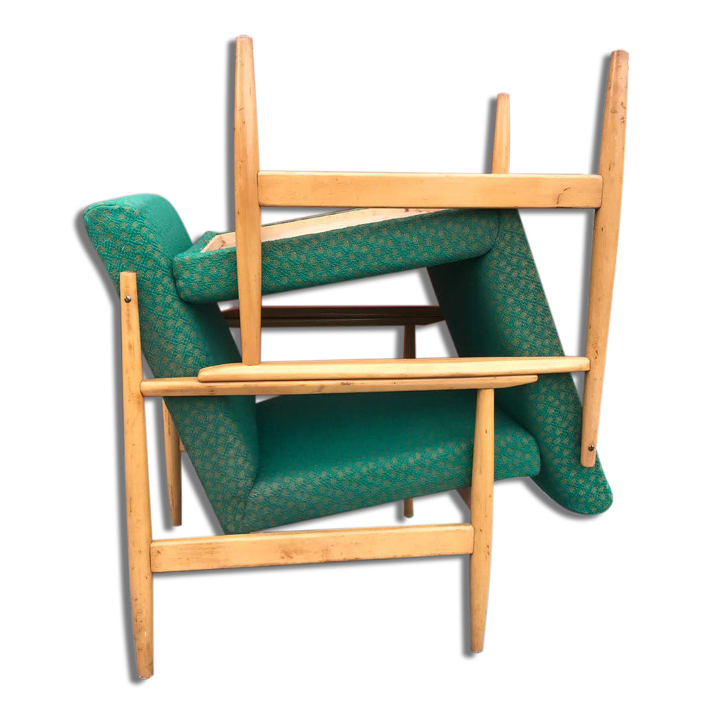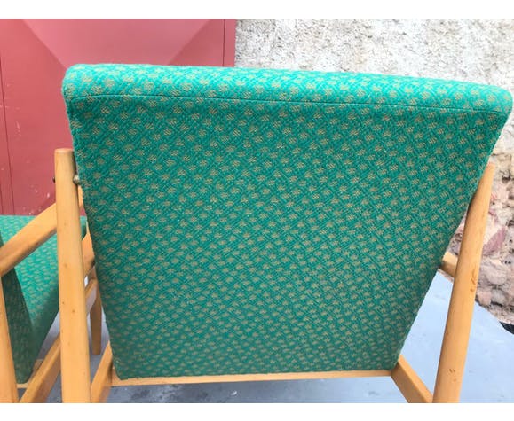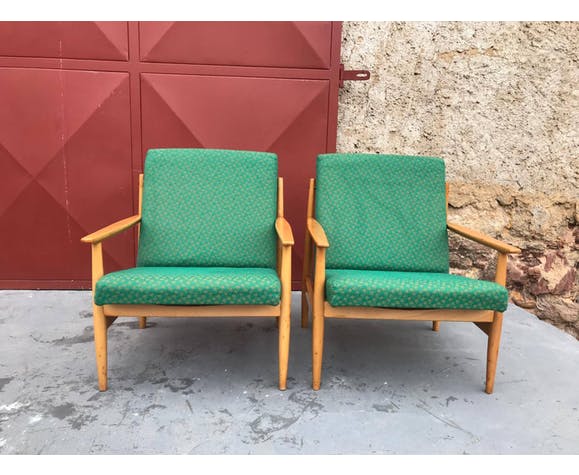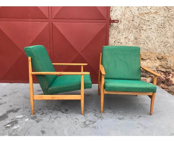 Pair of Danish style armchairs, made in the 1970s in the former Czechoslovakia by TON Bystrice pod Hostýnem. The structure is in beech wood, the chairs has an original upholstery. The chairs are generally in very good vintage condition without any damage, bear signs of age and use. Price is for the pair