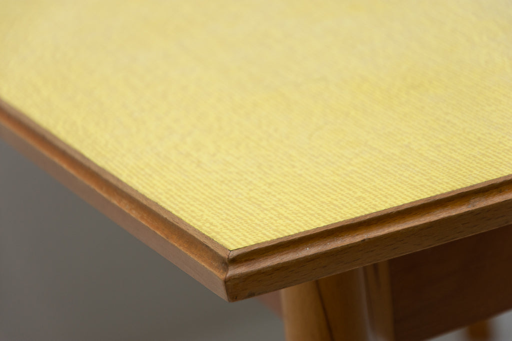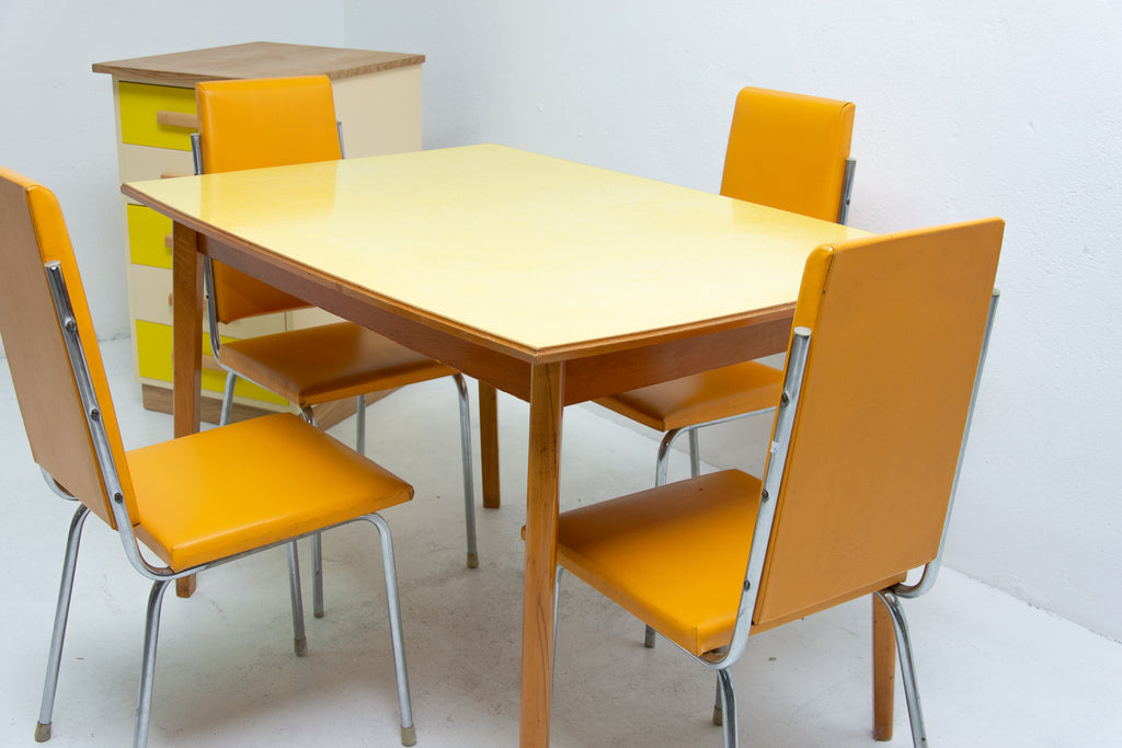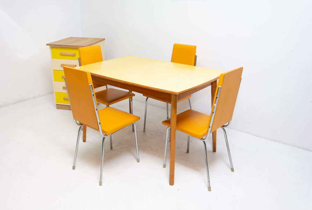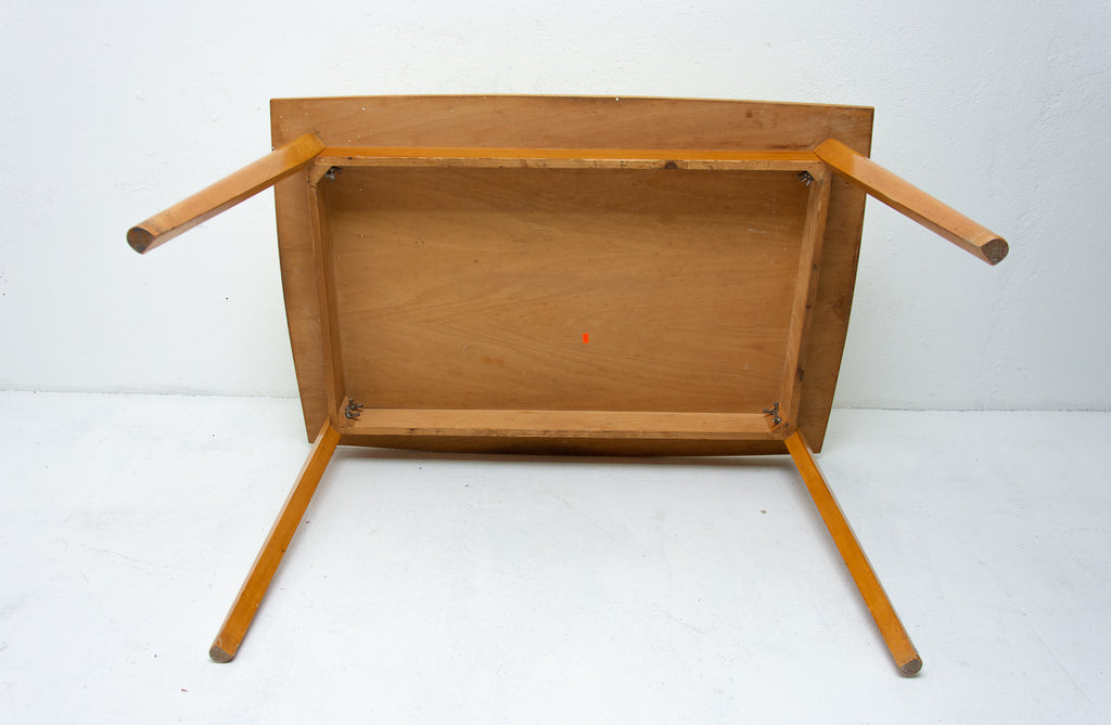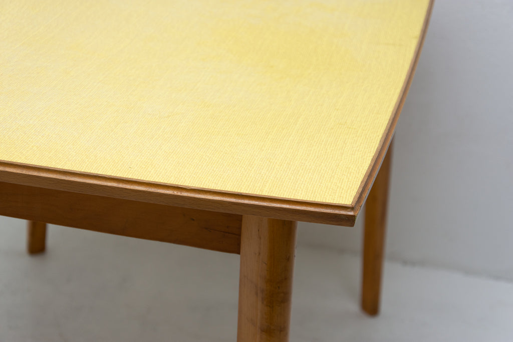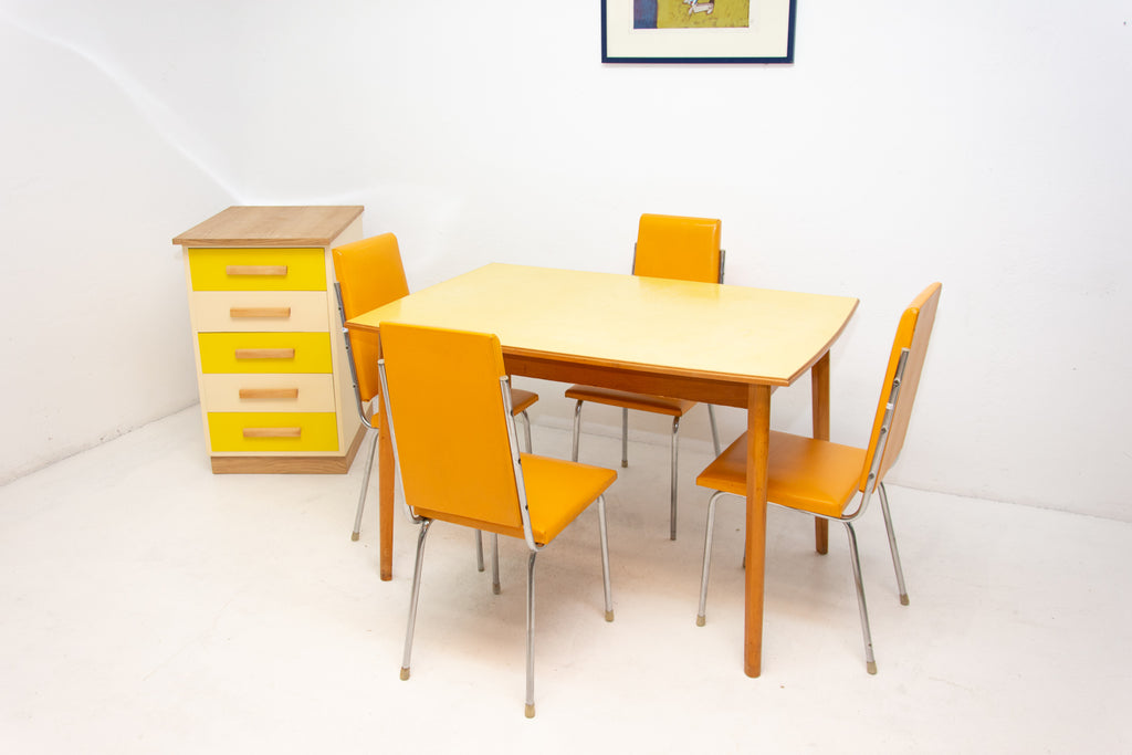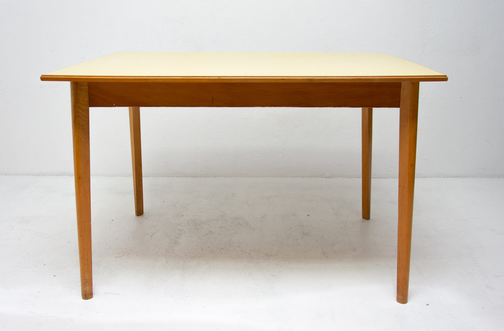 Mid Century dining table with a formica plate, it was made in the former Czechoslovakia in the 1960´s. Very interesting shaping. In very good Vintage condition, just bears minor signs of age and use.