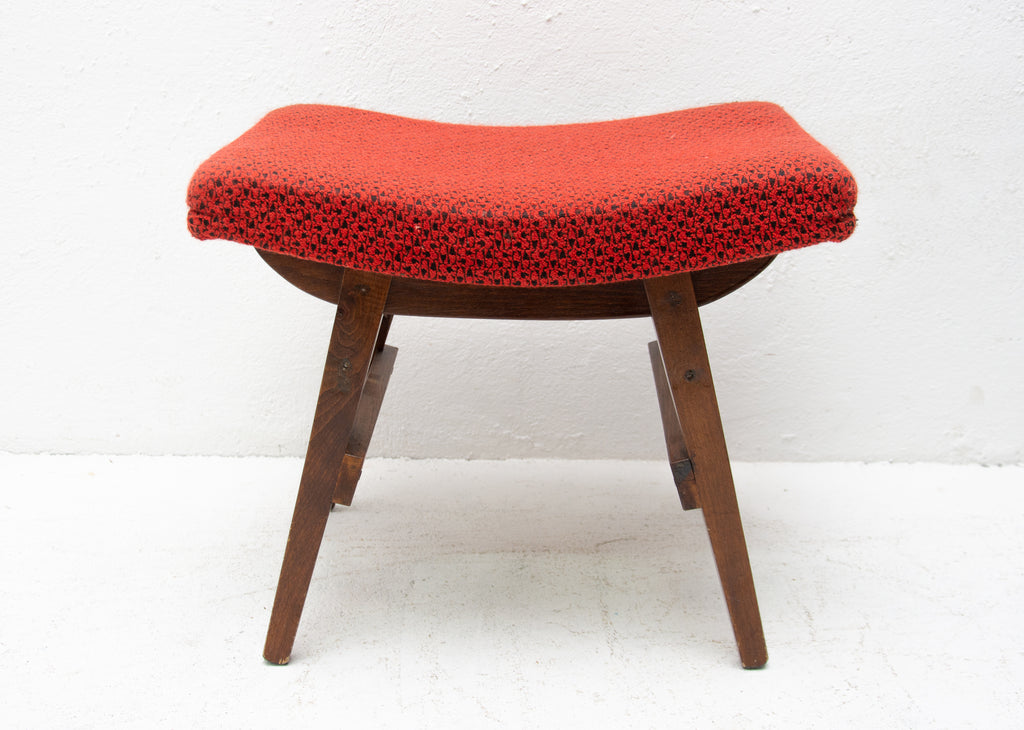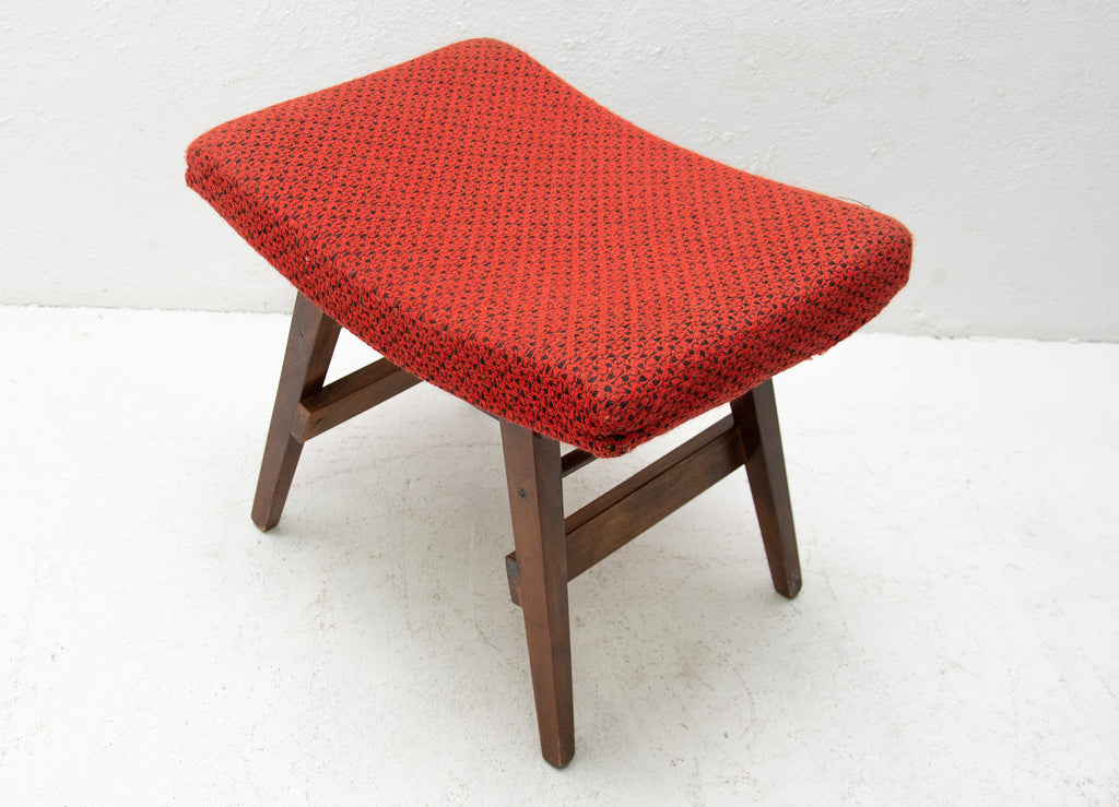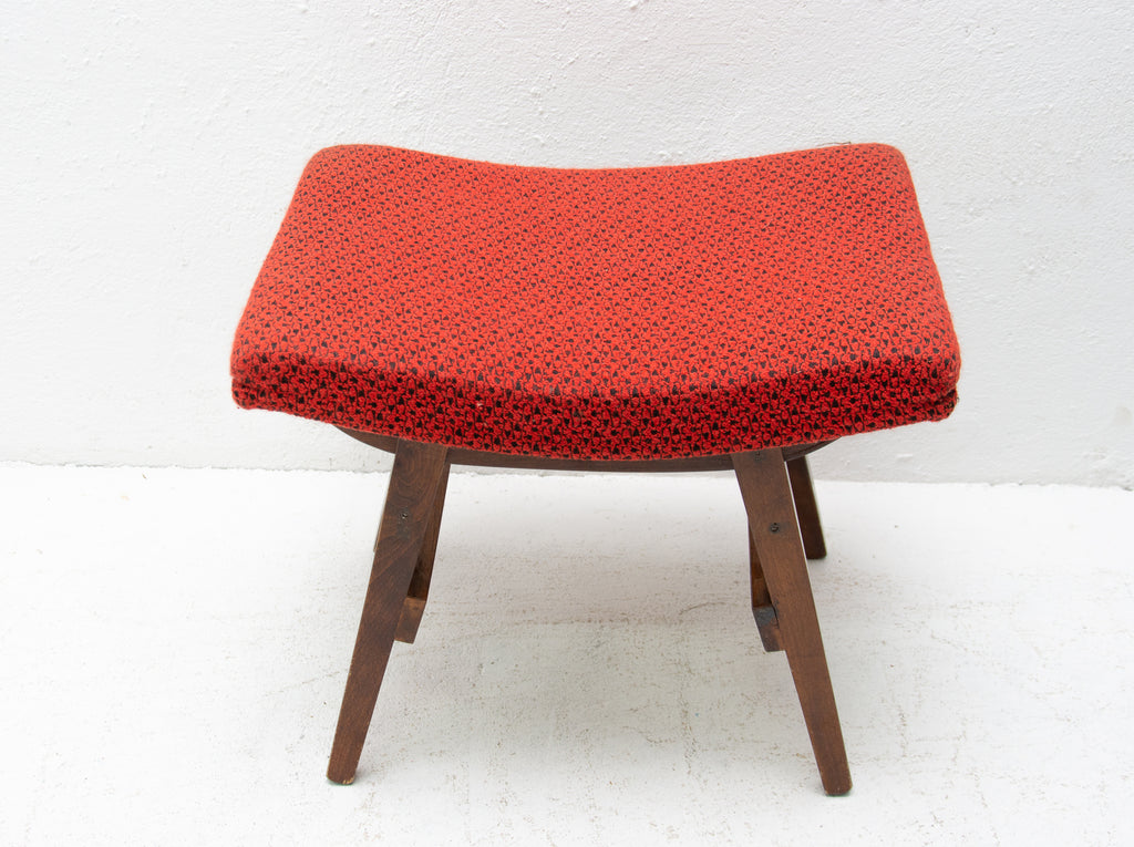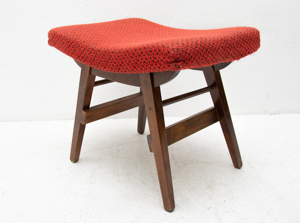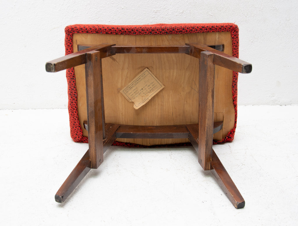 This stool/footrest was made by Západoslovenské nábytkárské Závody in the former Czechoslovakia in 1970. Features an upholstered seats and structure is made of beech wood. In very good original condition, bears some signs of age and using.