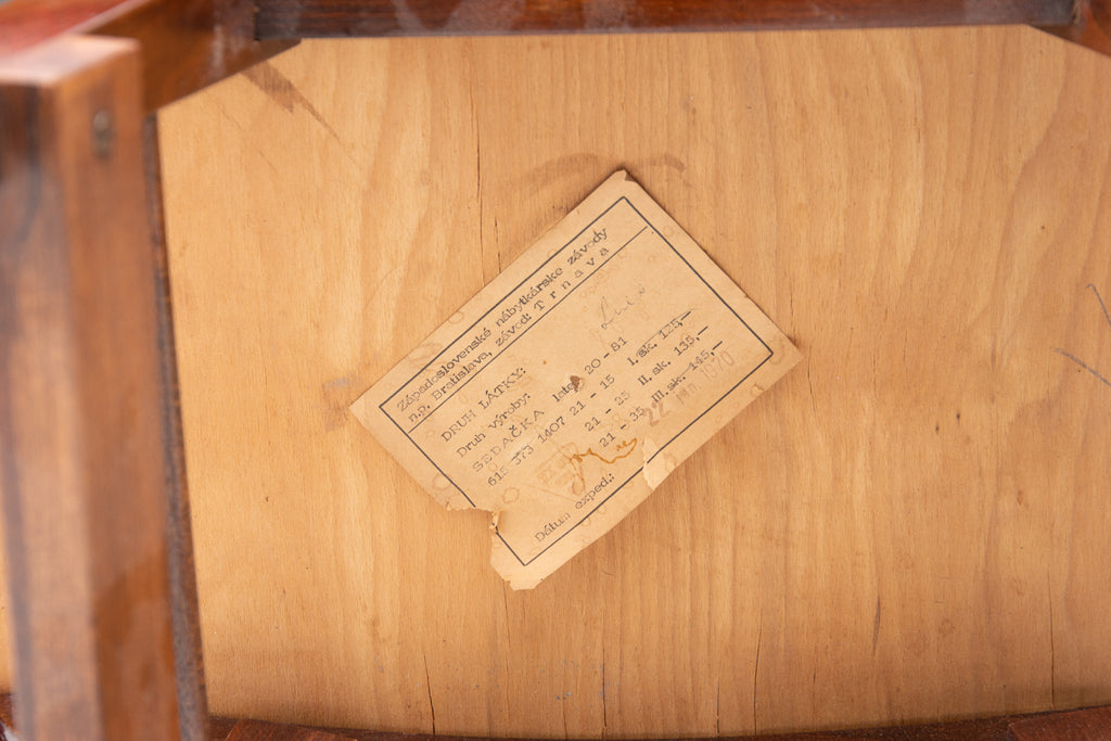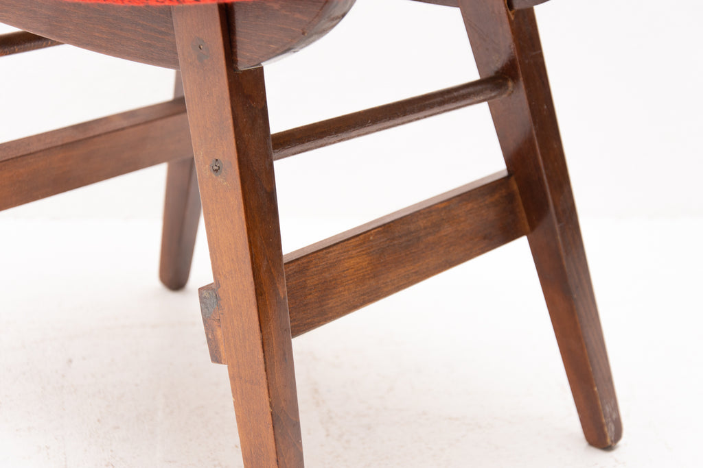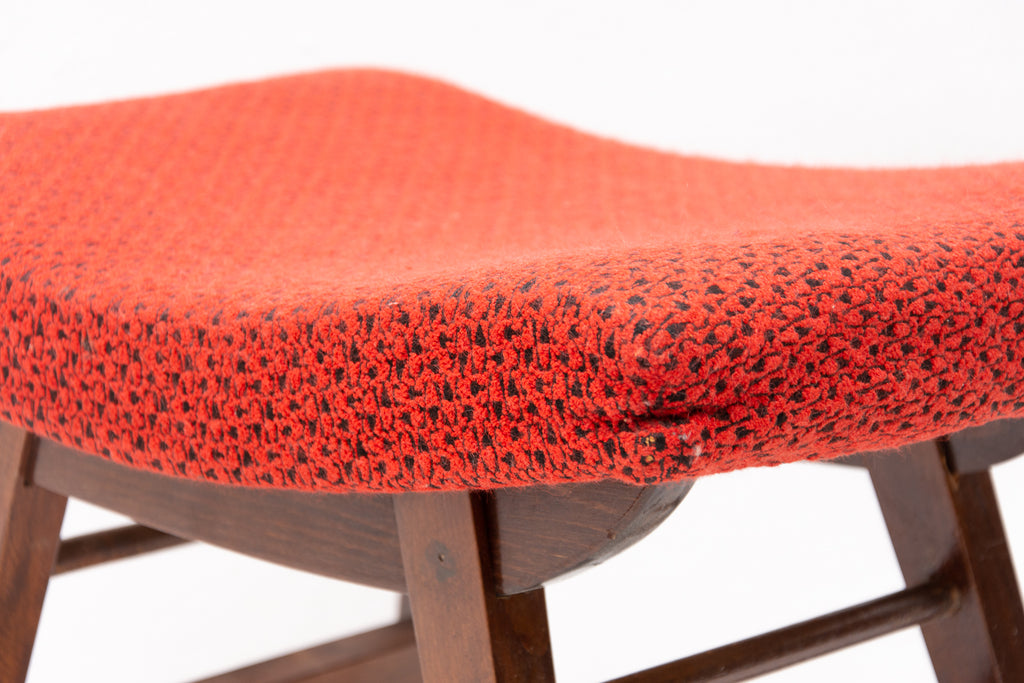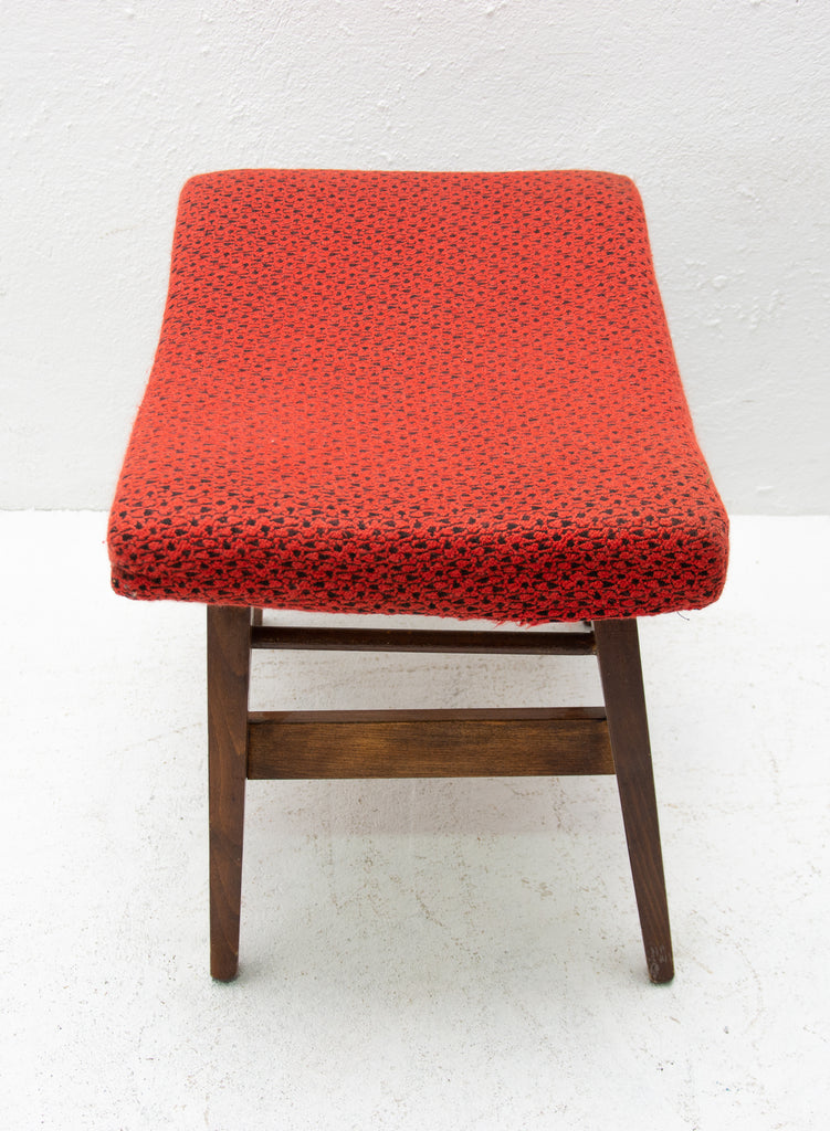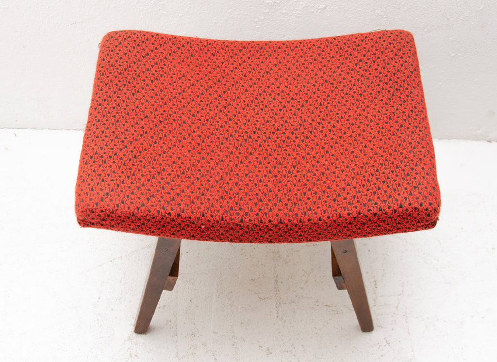 This stool/footrest was made by Západoslovenské nábytkárské Závody in the former Czechoslovakia in 1970. Features an upholstered seats and structure is made of beech wood. In very good original condition, bears some signs of age and using.
