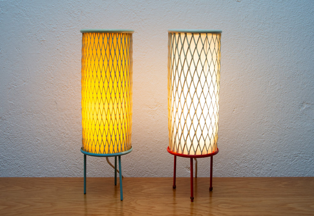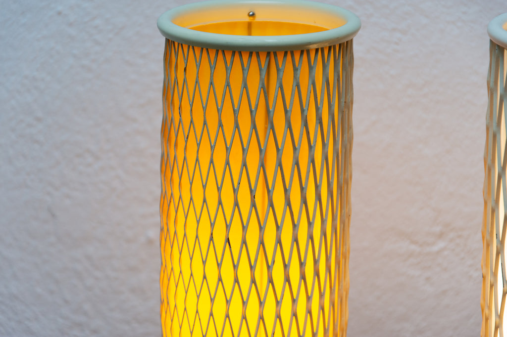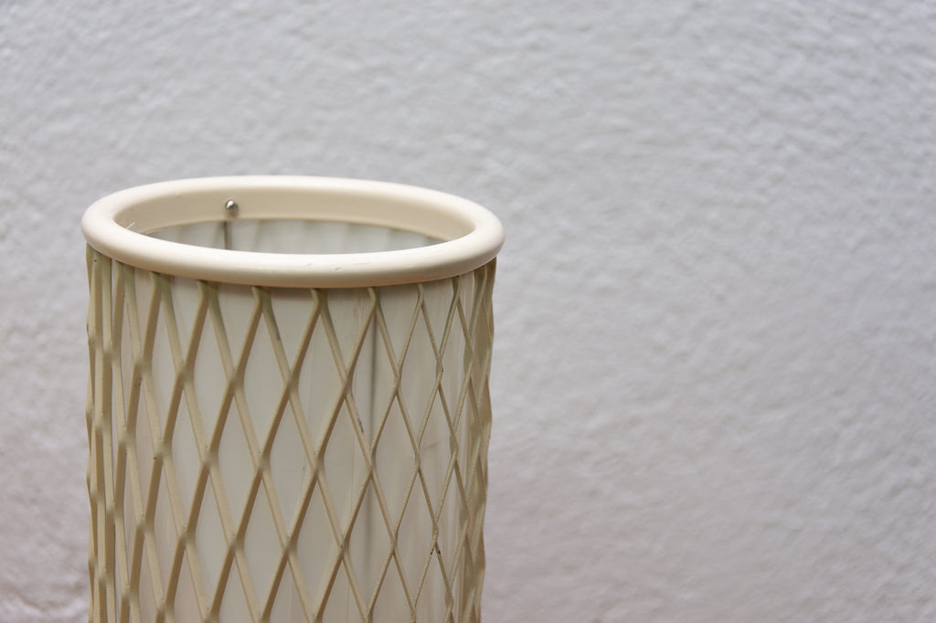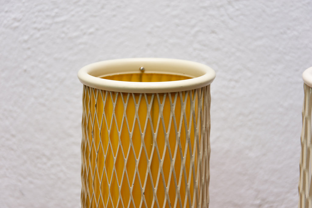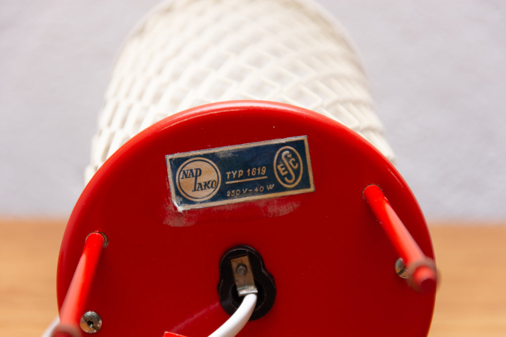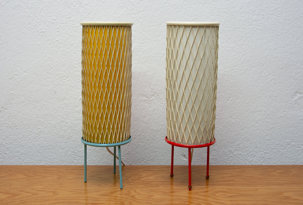 These rocket table lamps were made in the former Czechoslovakia in the 1960's. The design of these lamps is connected with the so-called Brussels period, associated with the world-famous EXPO 58 exhibition in Brussels, where the Czechoslovak Pavilion has been a huge success. Have a metal structure, an oval resin lampshade shaped like rocket. They are in very good vintage condition and have a new wiring.